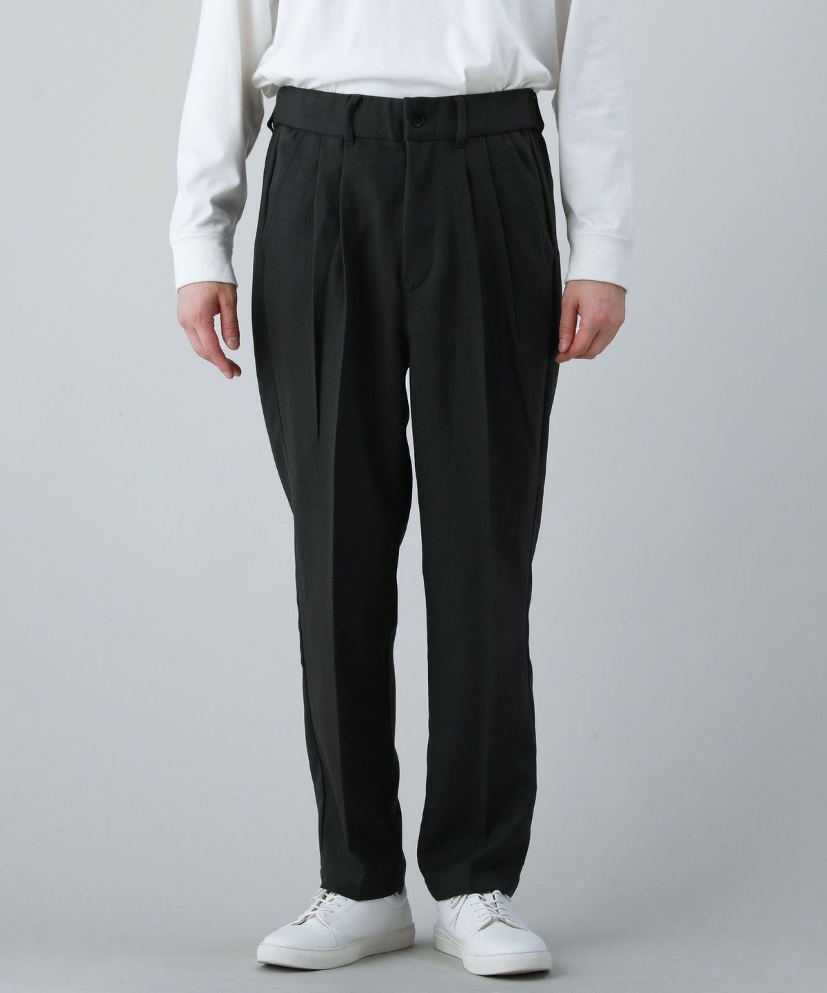 他の画像を見る Upscape Audience 日本製LANATEC(ラナテック)LEI(レイ)ポリエステルウールライクカルゼ2タック イージー テーパードパンツ 通常販売価格 ¥ 14,300 のところ ¥ 8,580 税込 カートに入れる お気に入りに登録する
