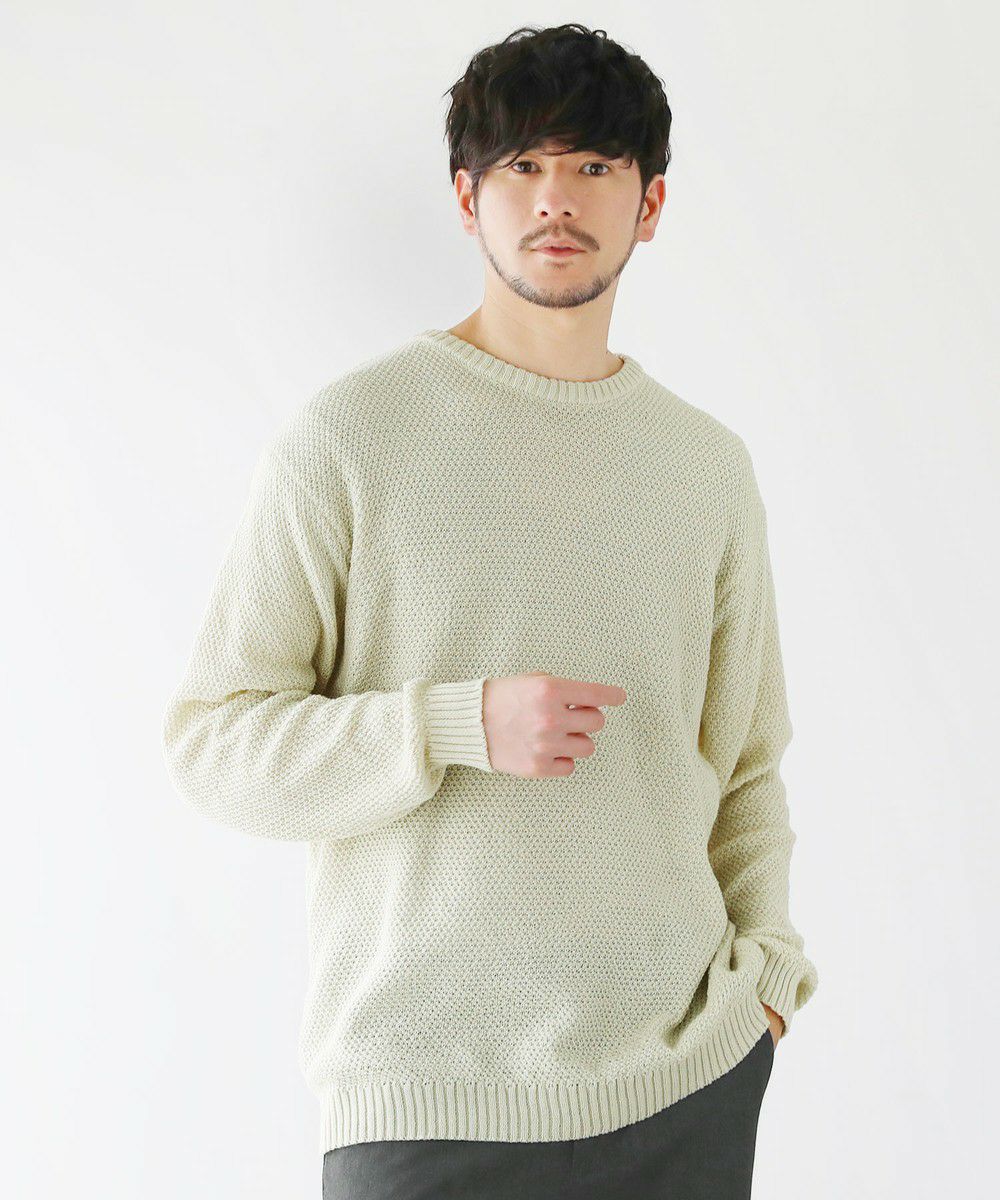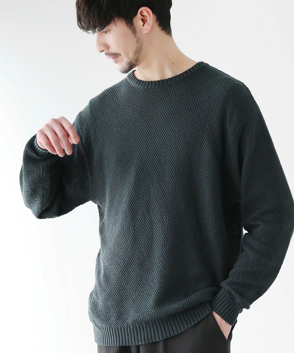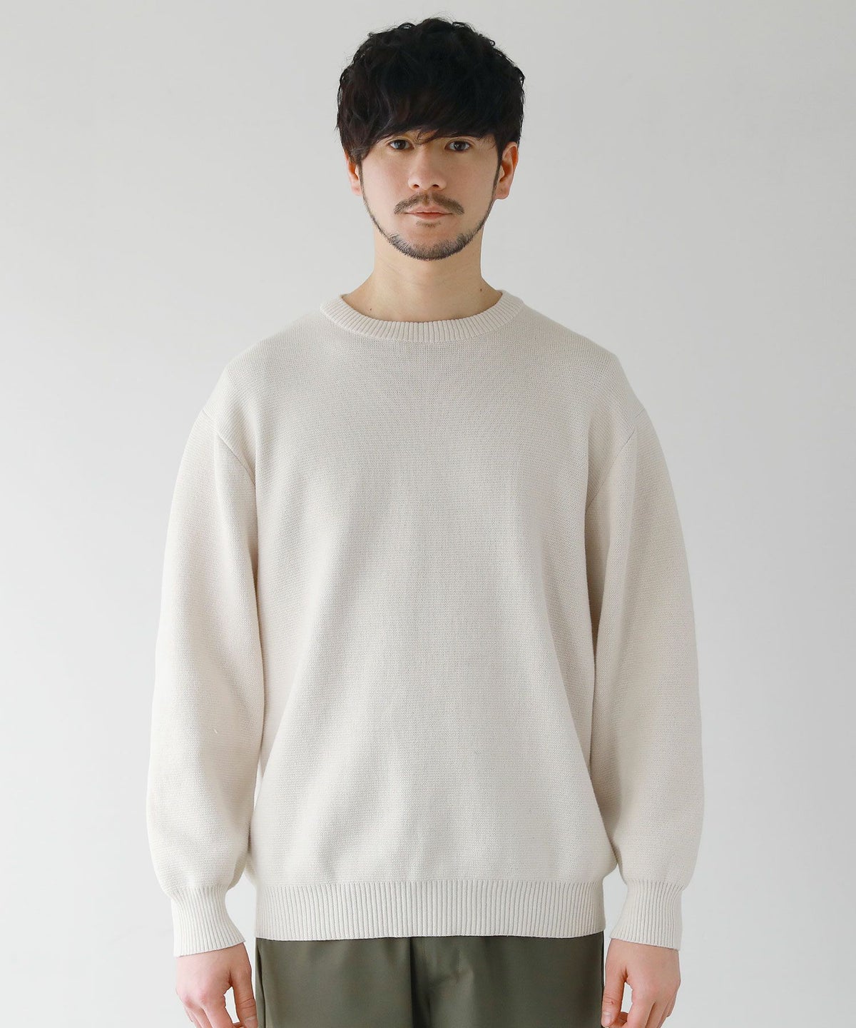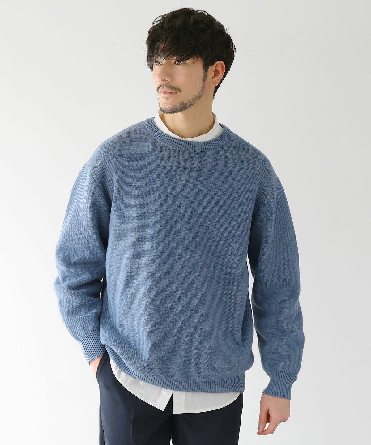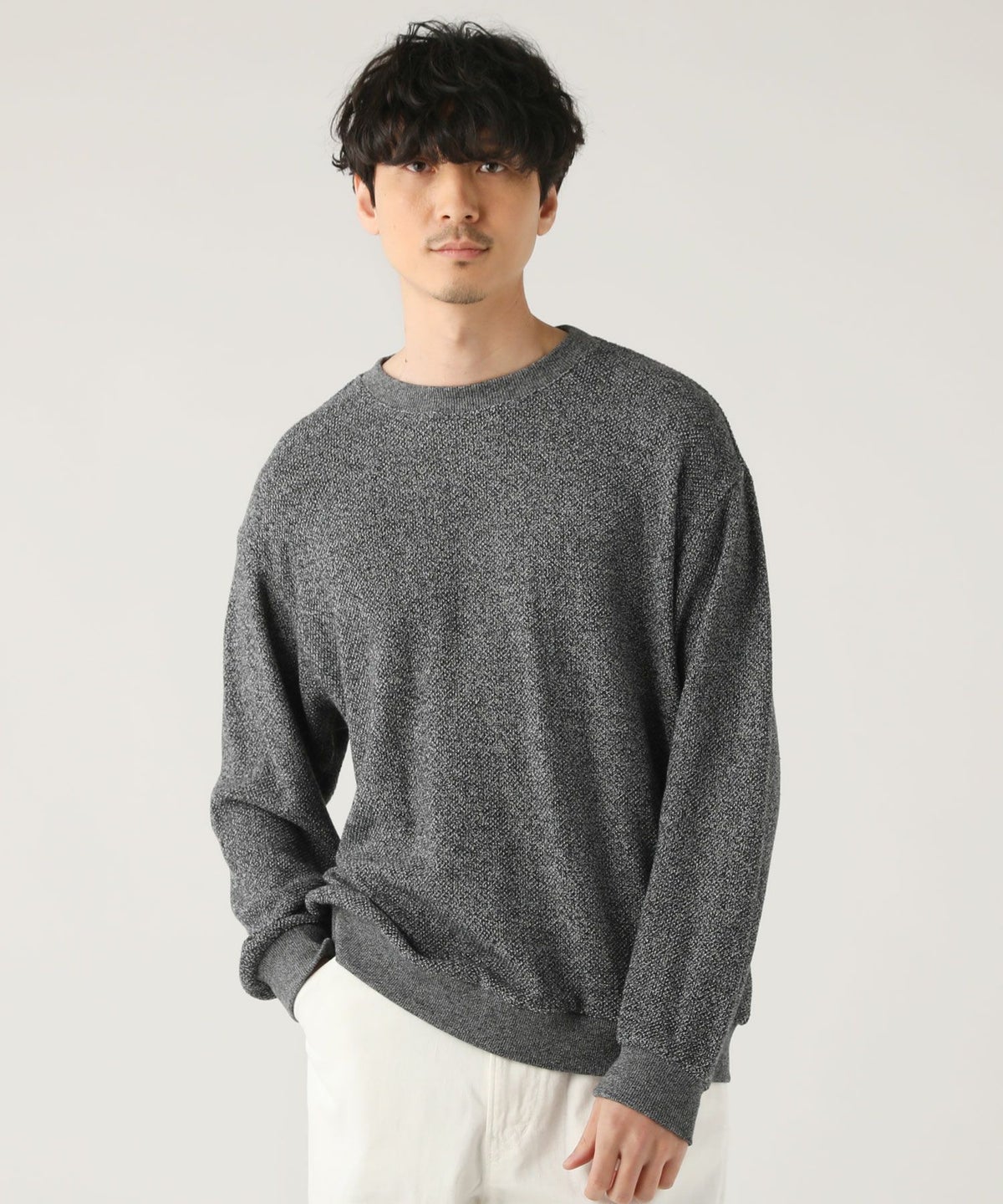 ウォッシャブル12G鹿の子編みクルーネックニット