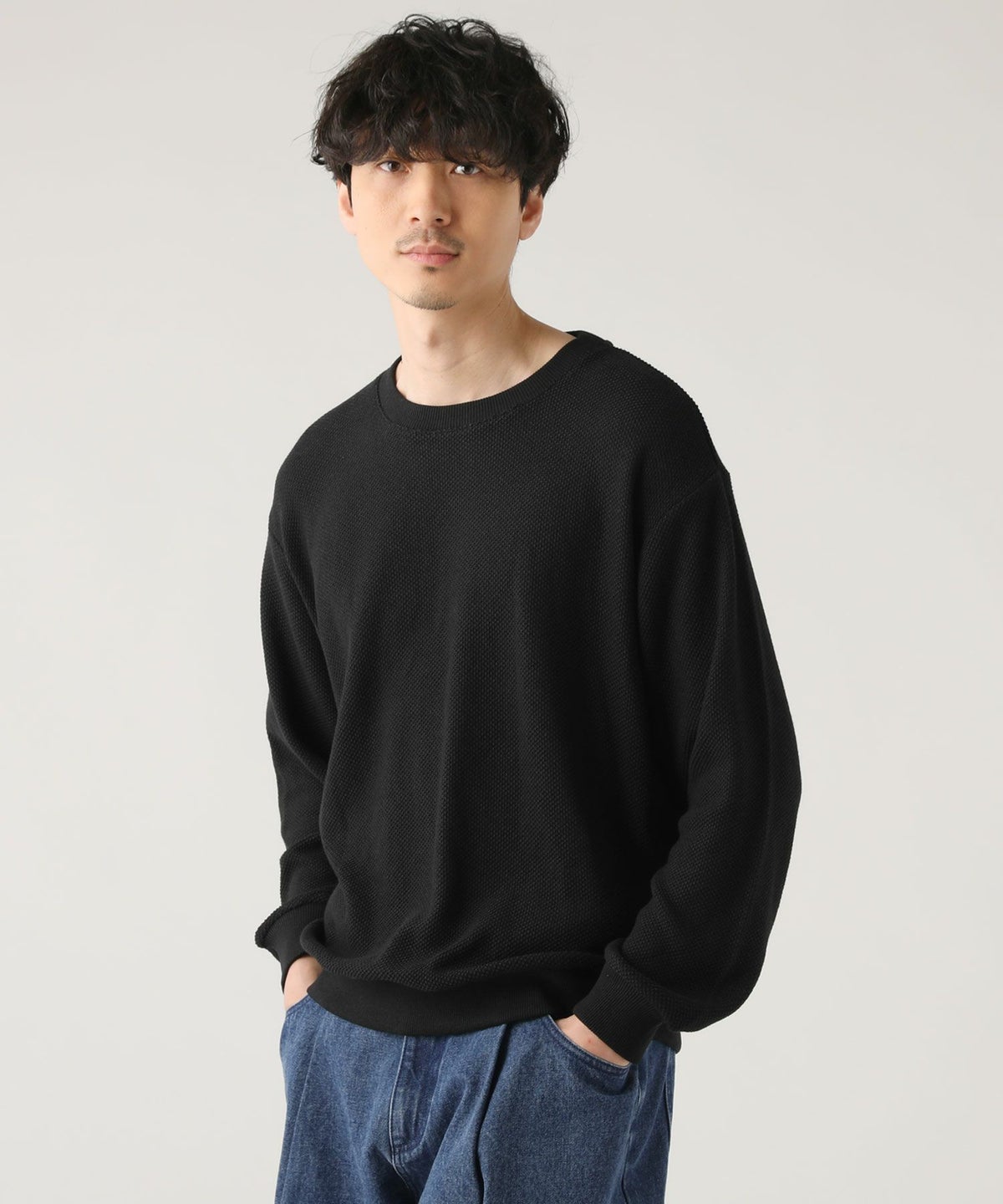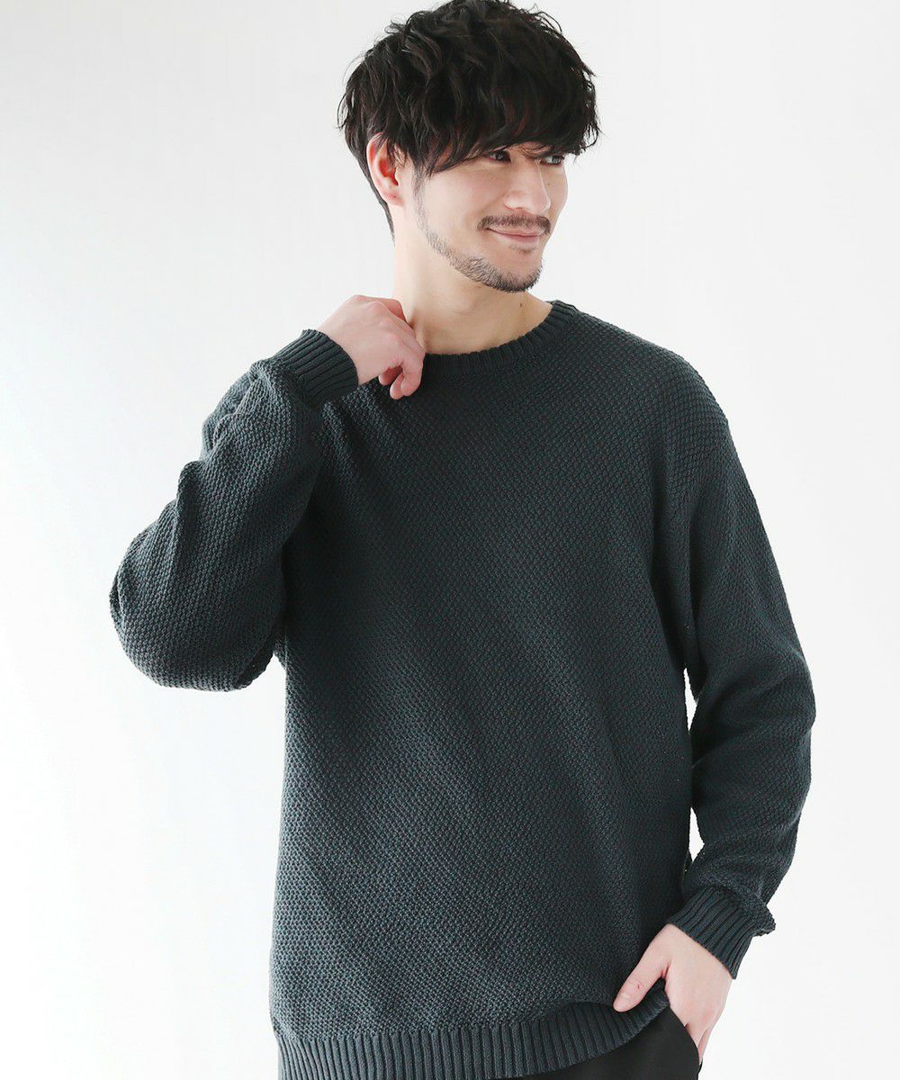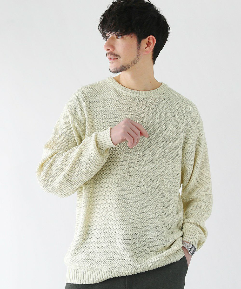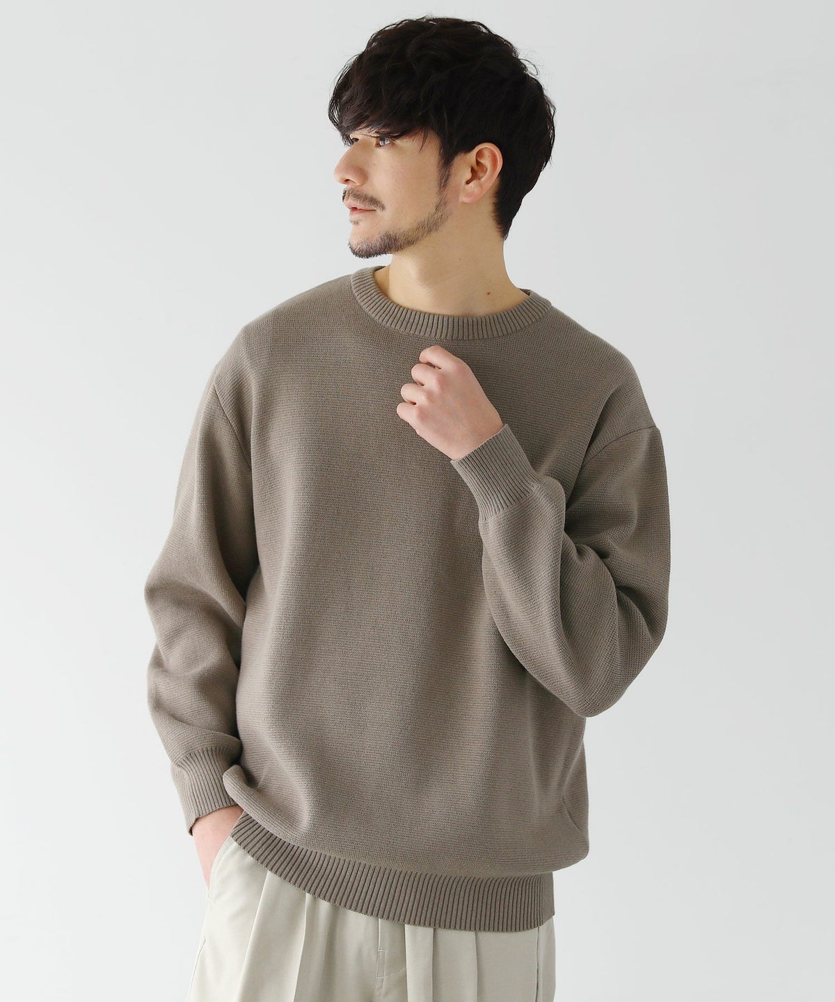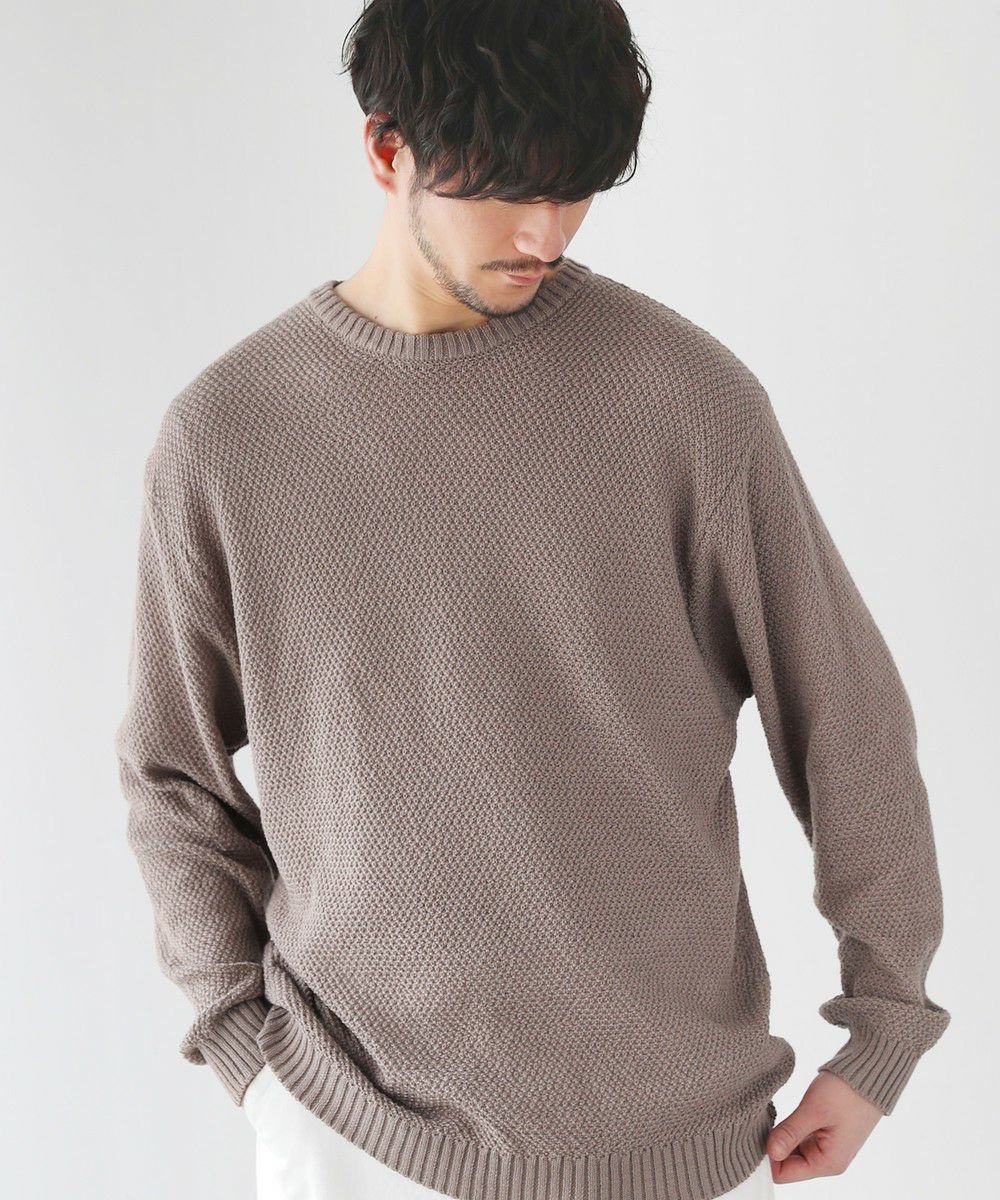 ウォッシャブル12G鹿の子編みクルーネックニット