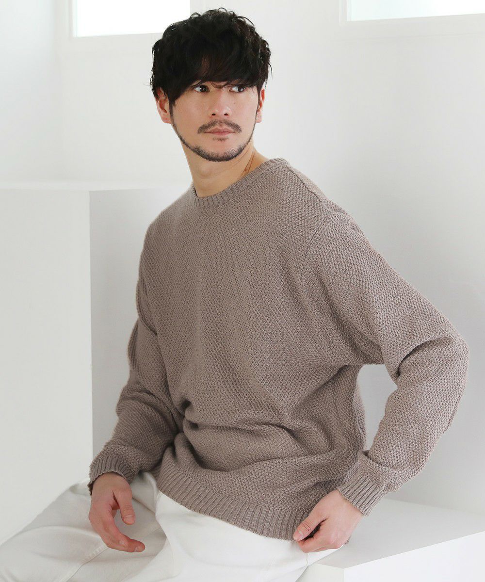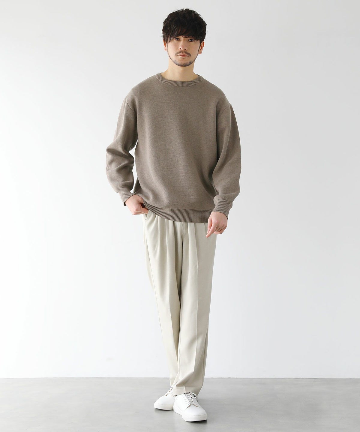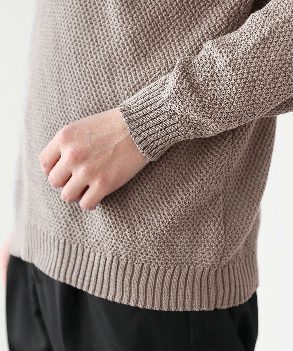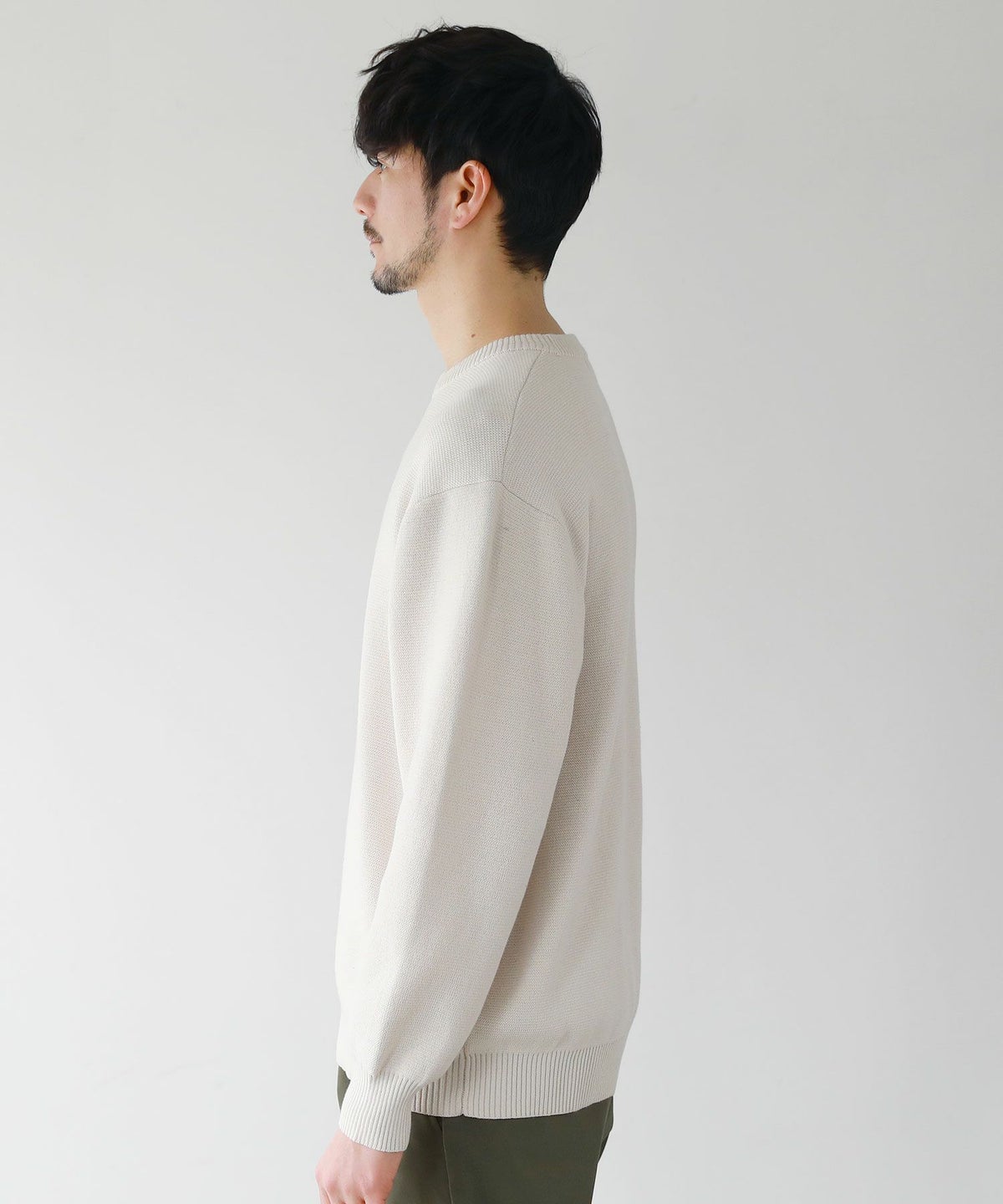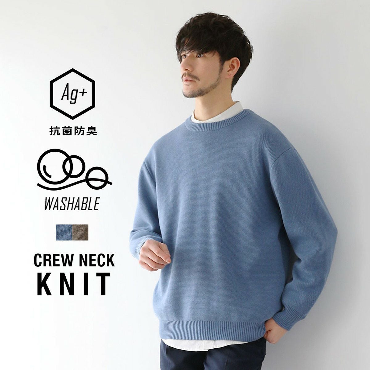 ウォッシャブル12G鹿の子編みクルーネックニット