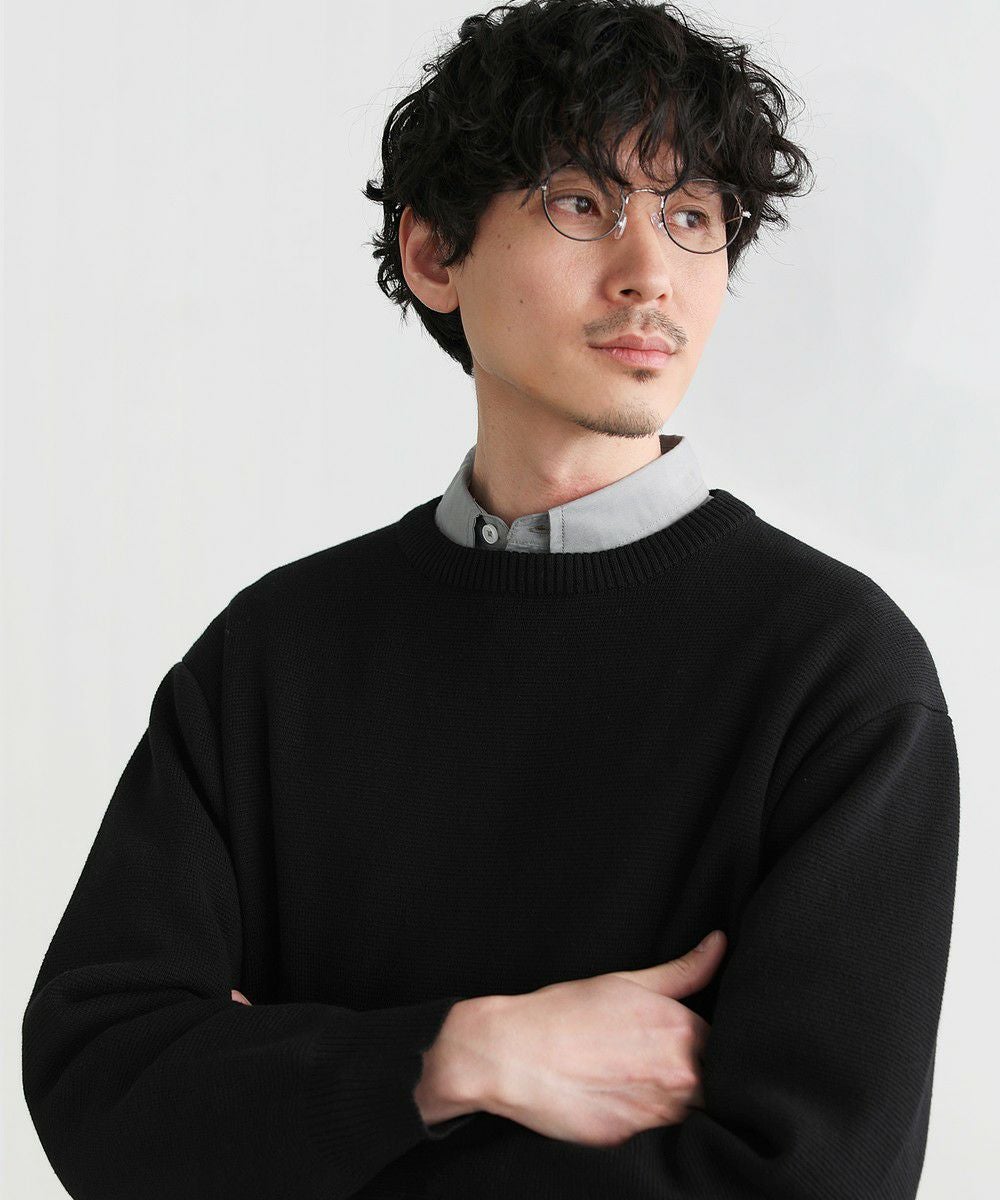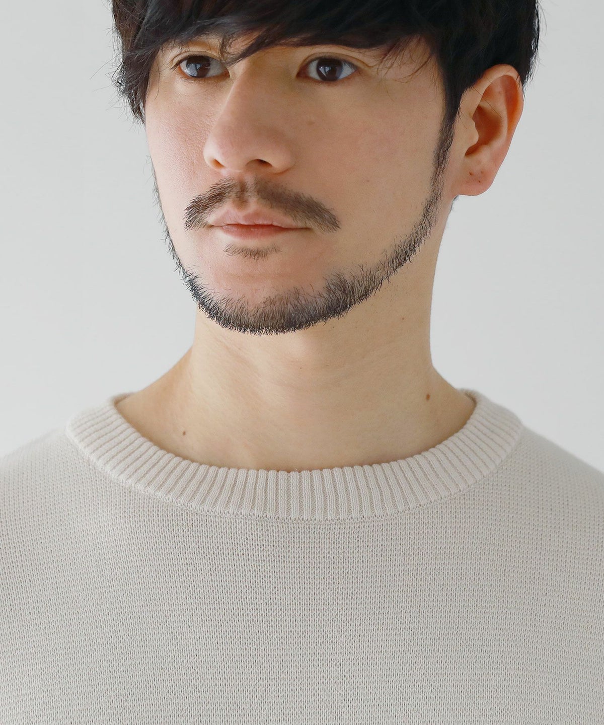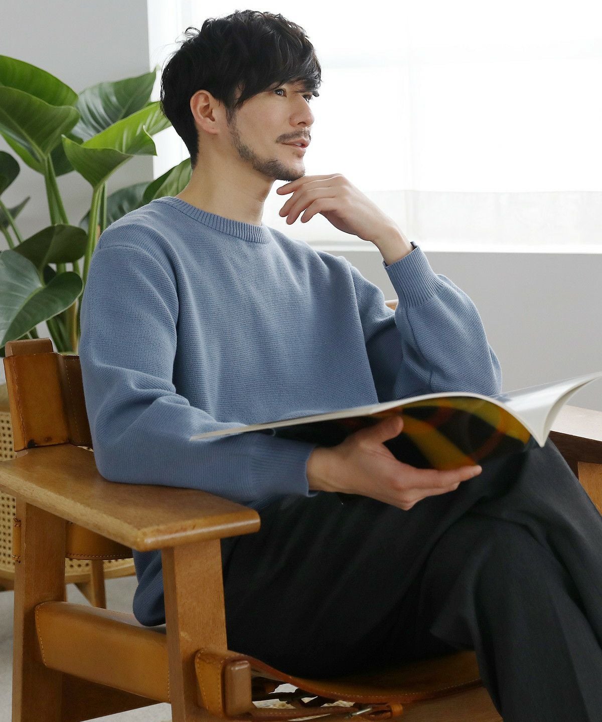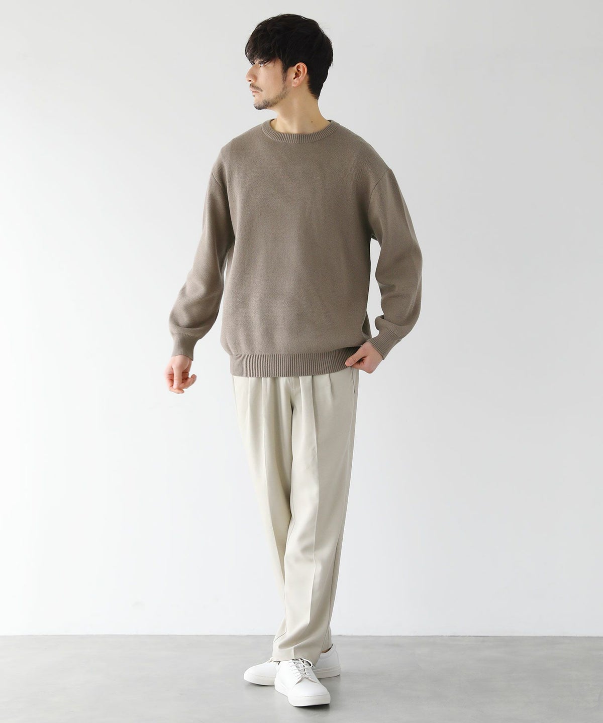 ウォッシャブル12G鹿の子編みクルーネックニット
