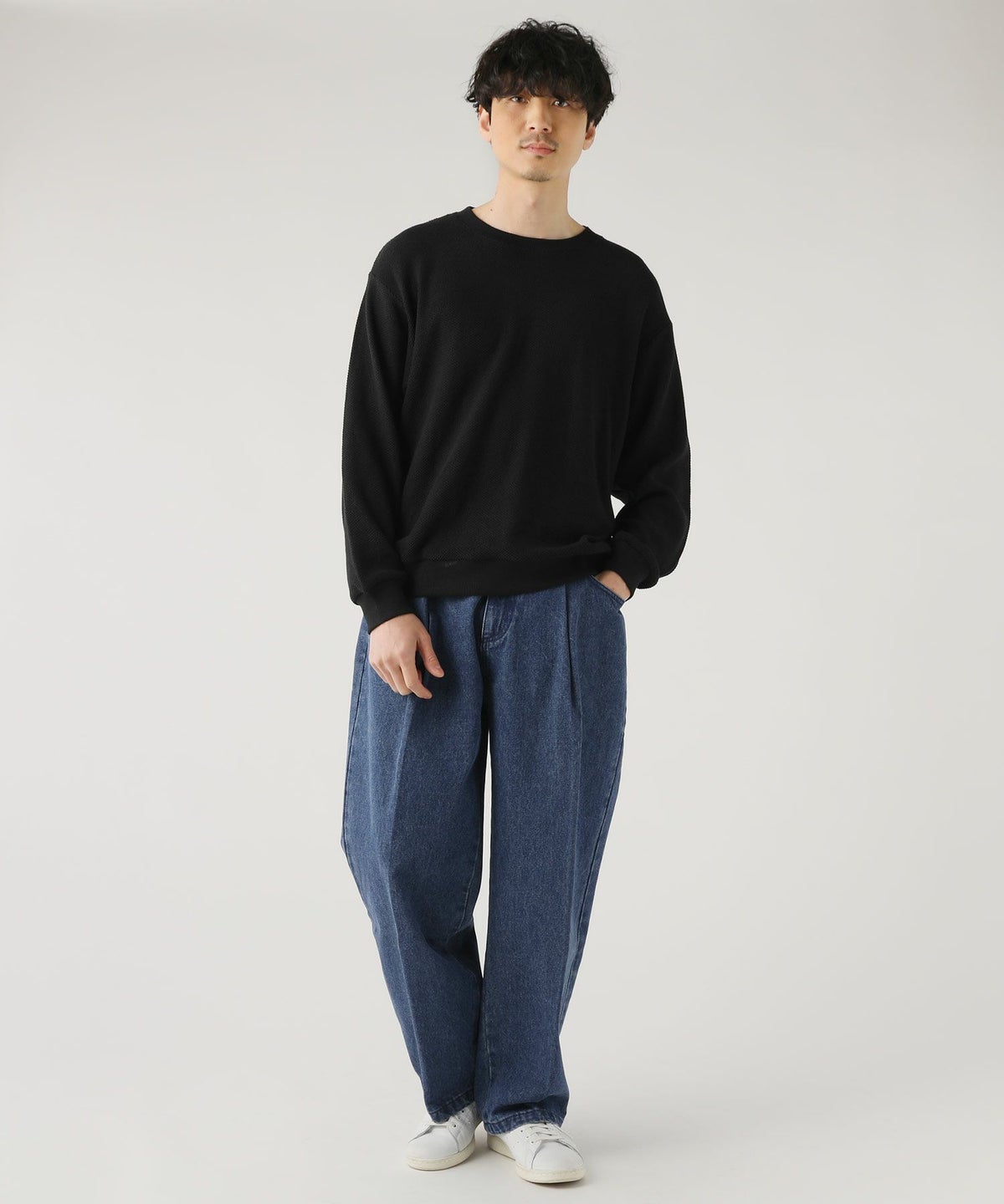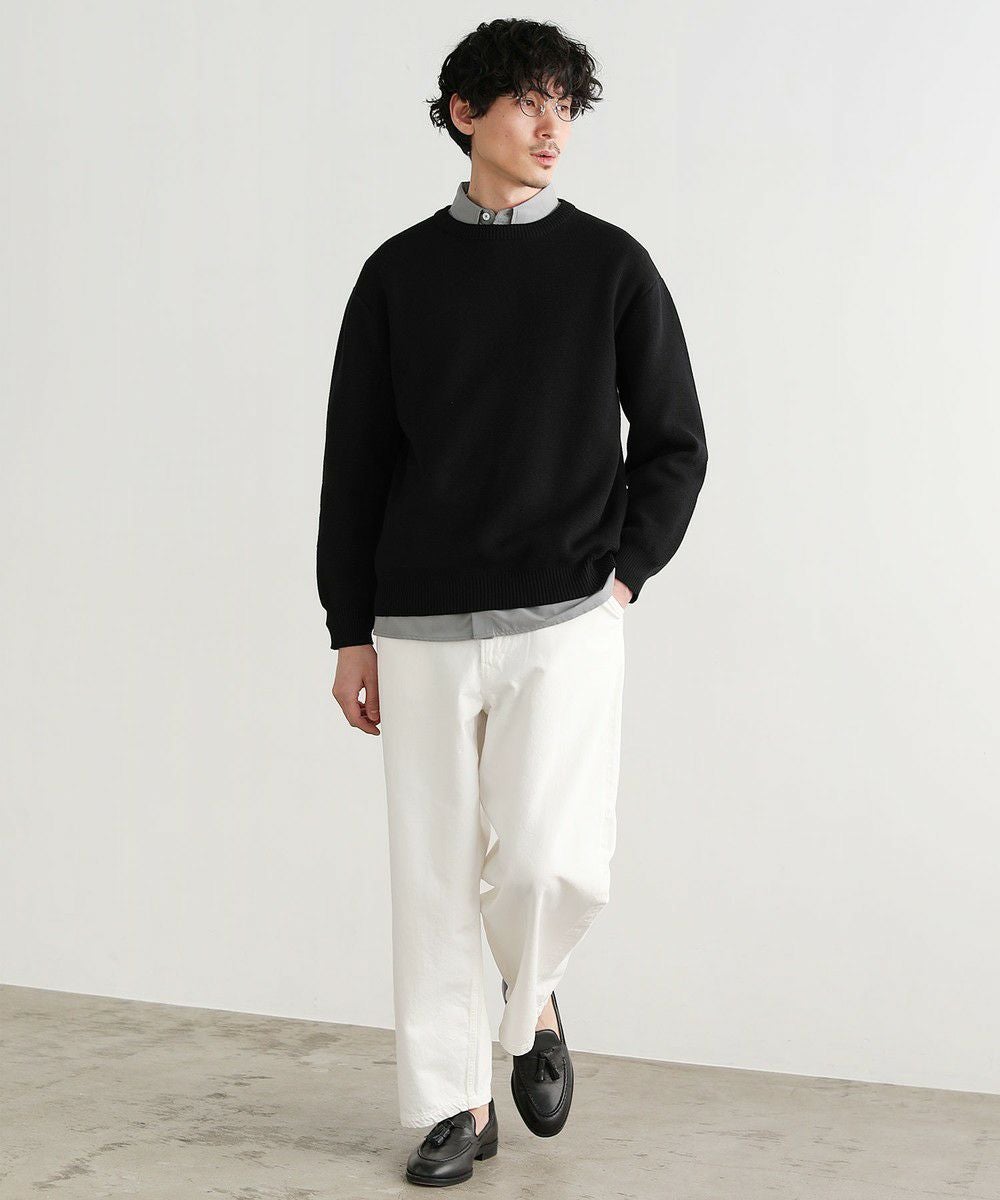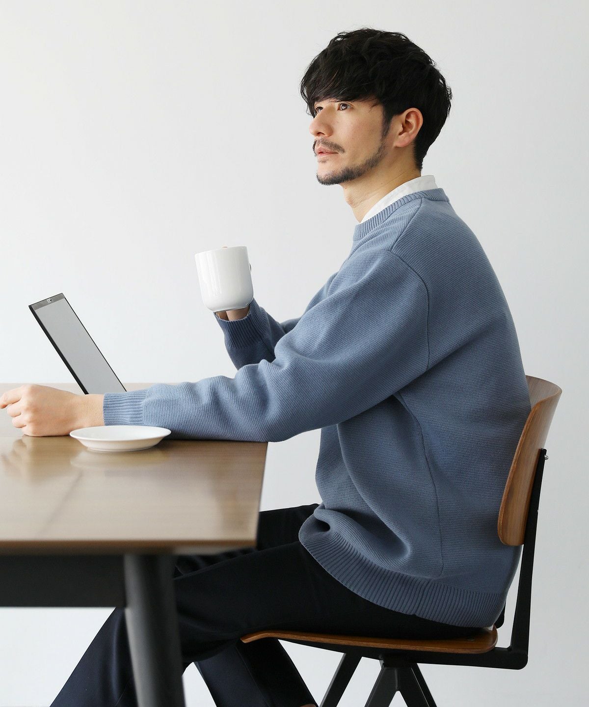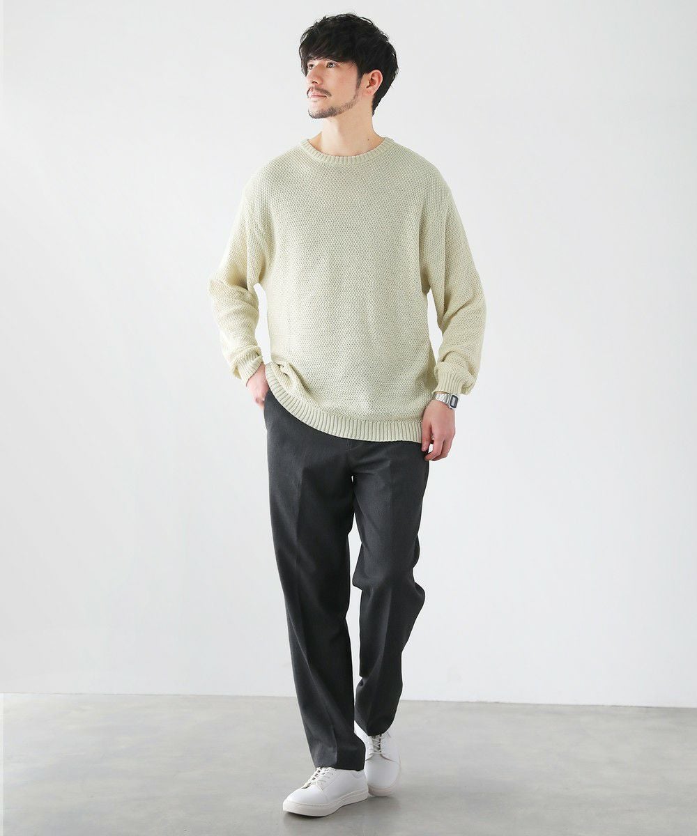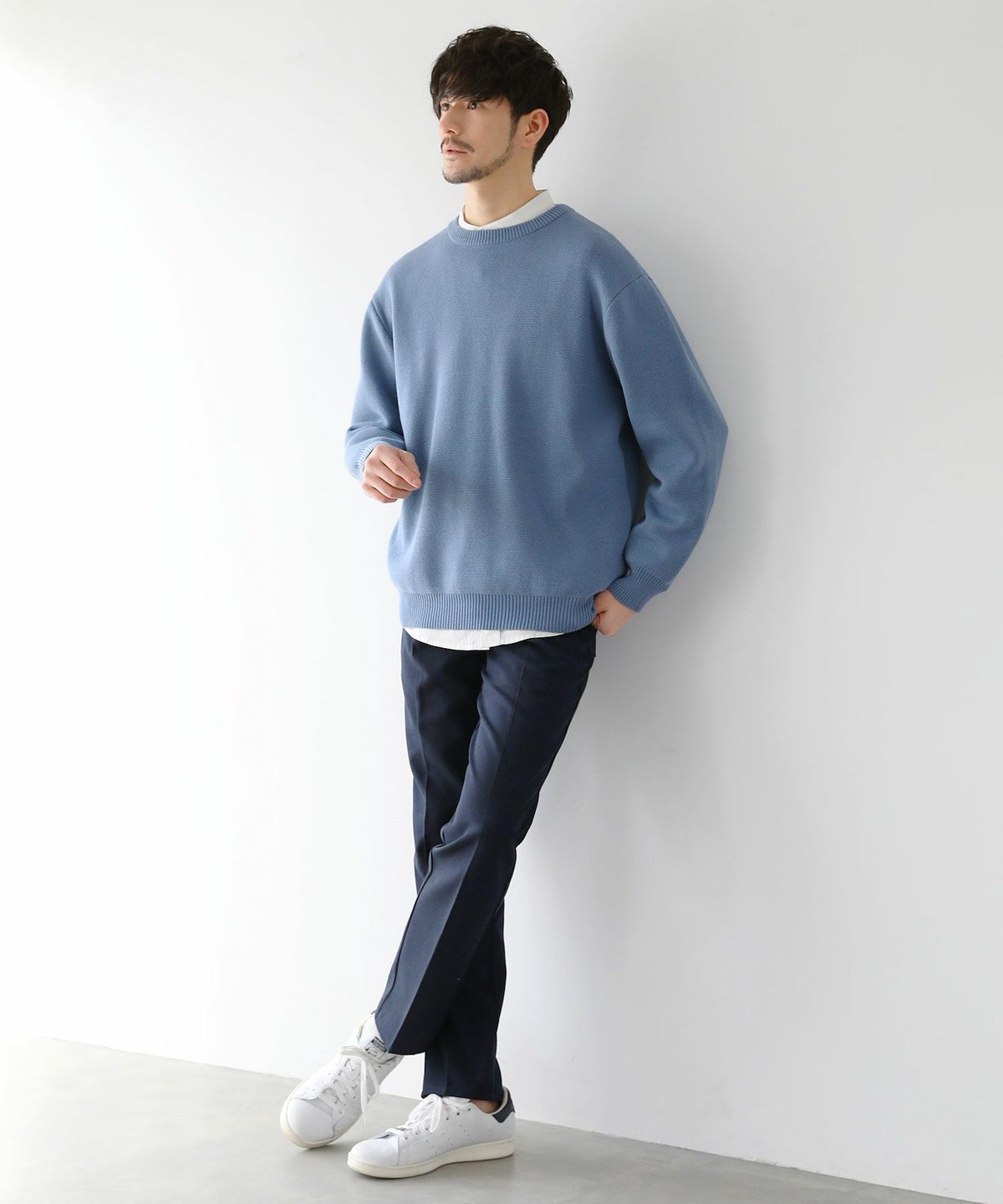 ウォッシャブル12G鹿の子編みクルーネックニット