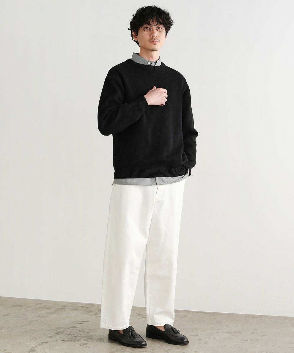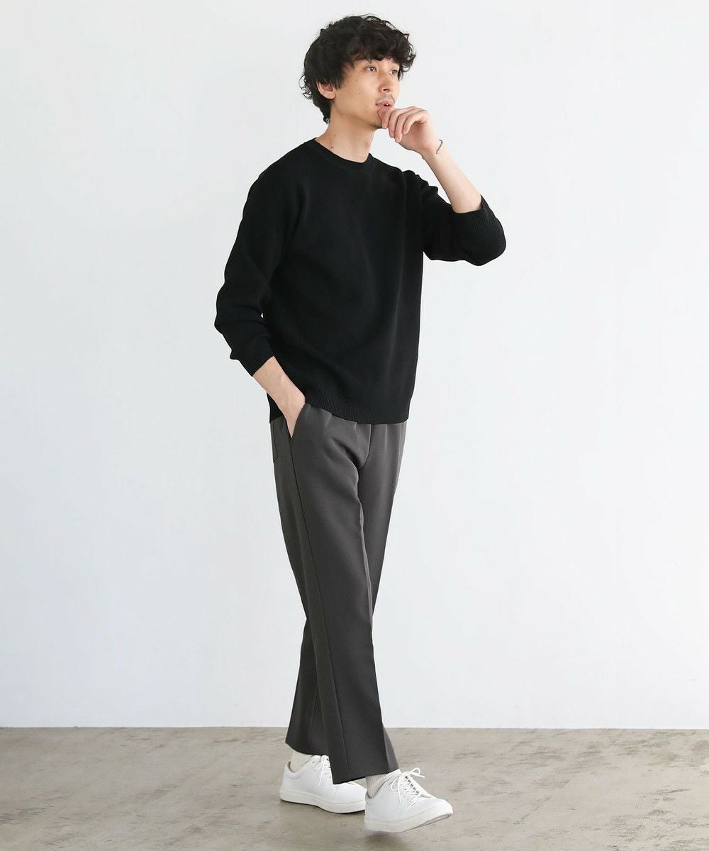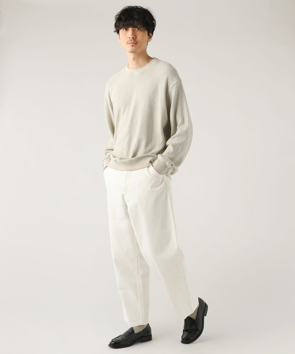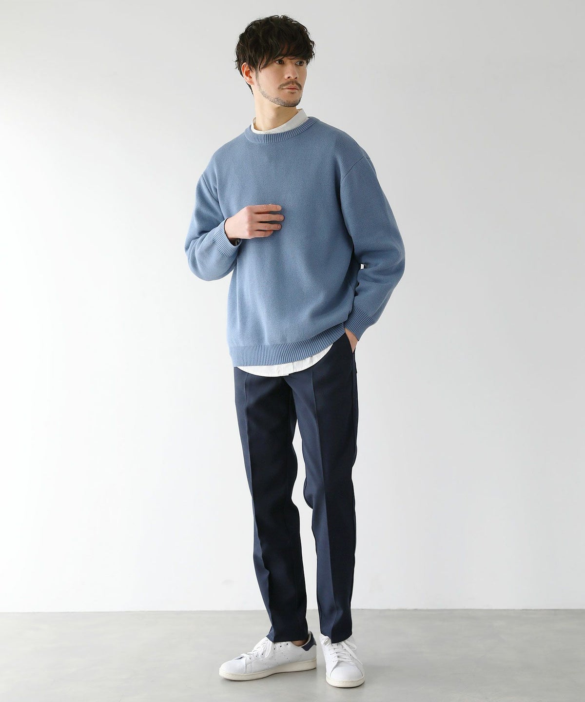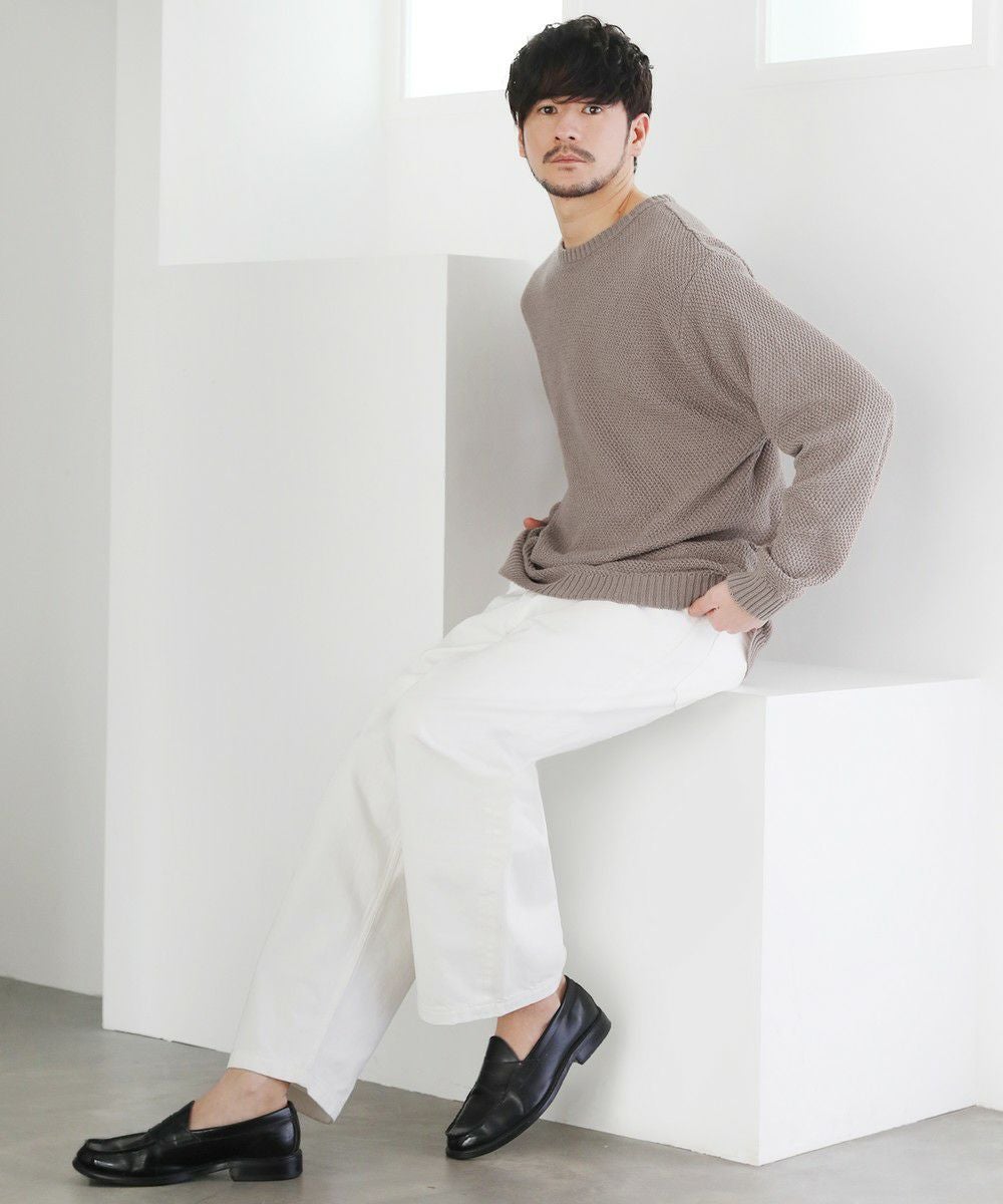 ウォッシャブル12G鹿の子編みクルーネックニット