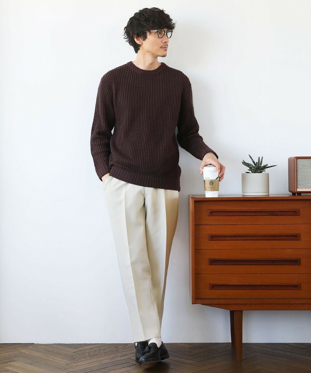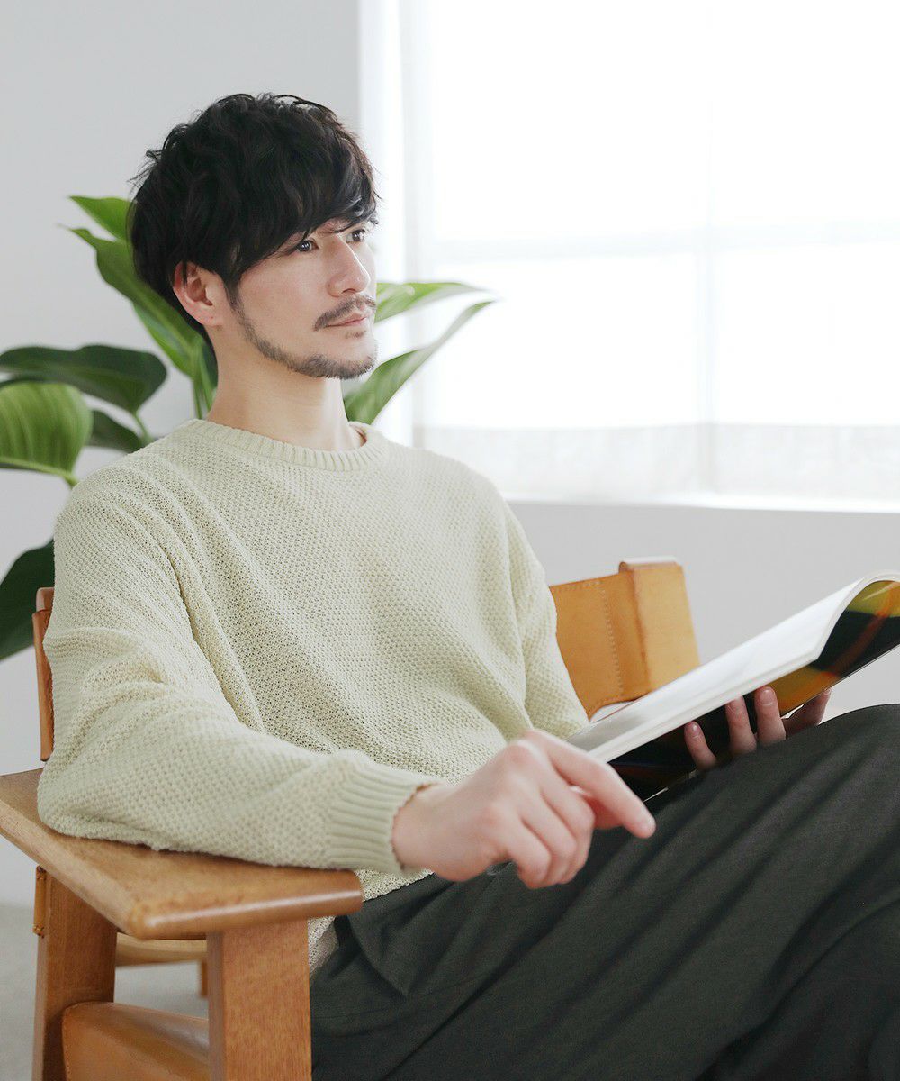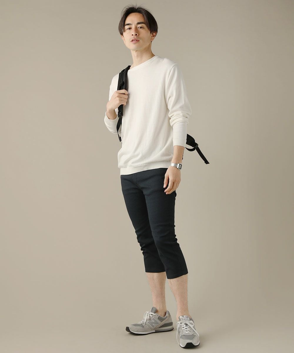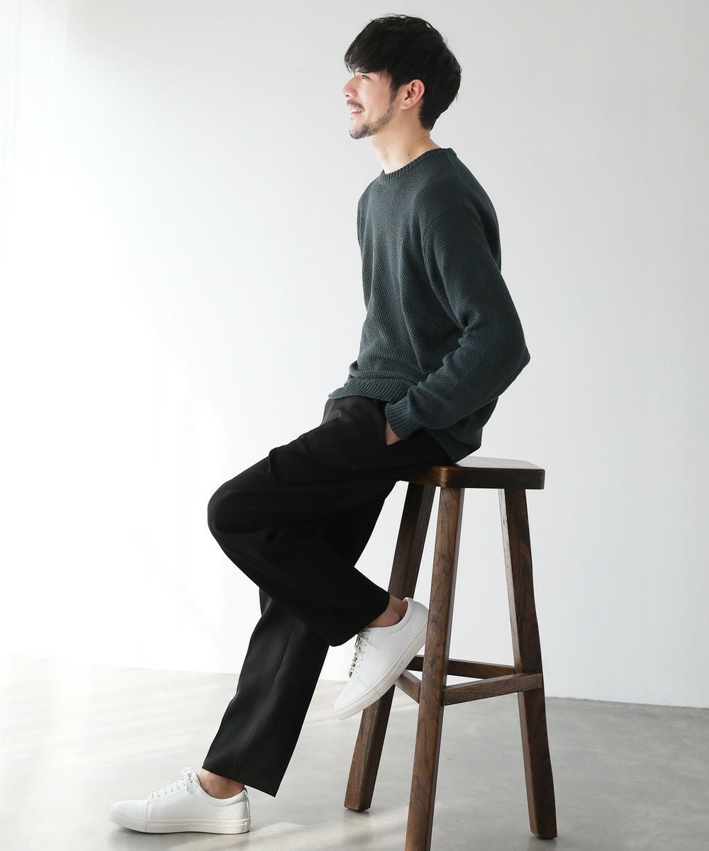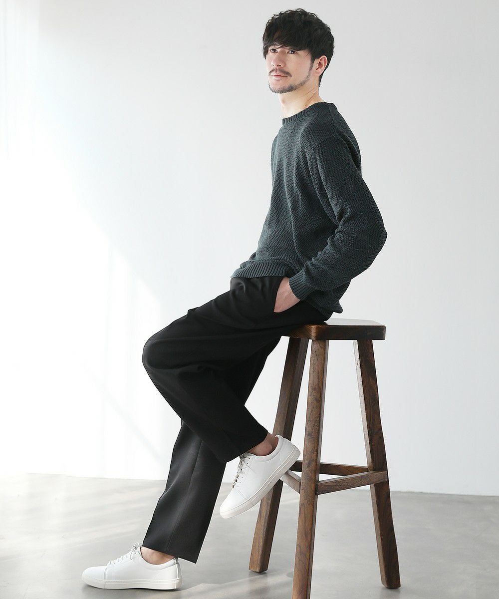 ウォッシャブル12G鹿の子編みクルーネックニット