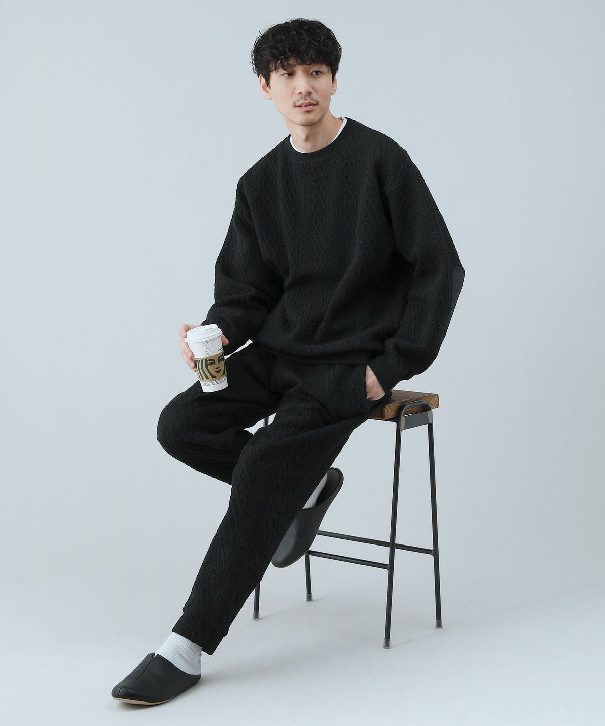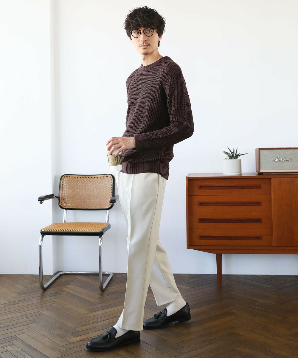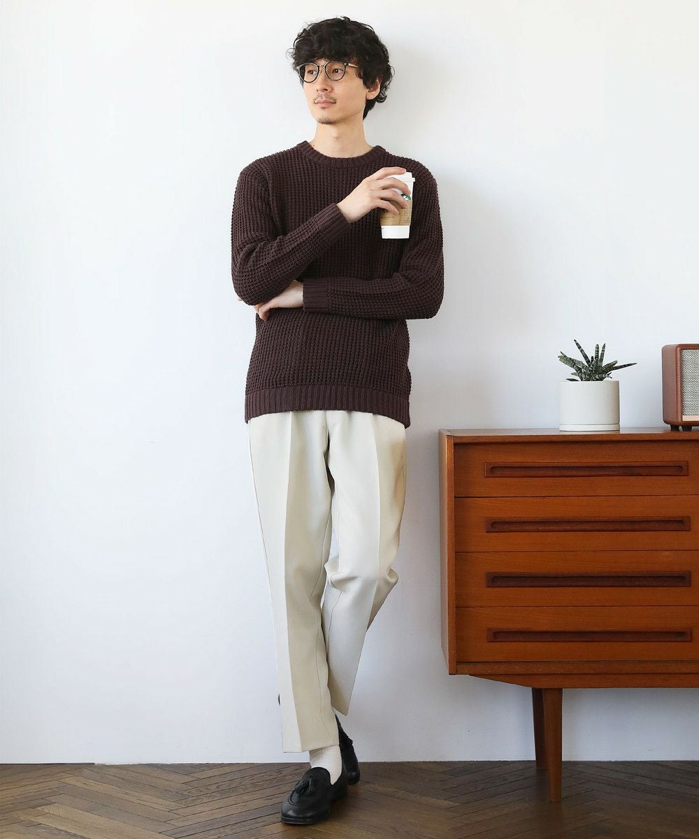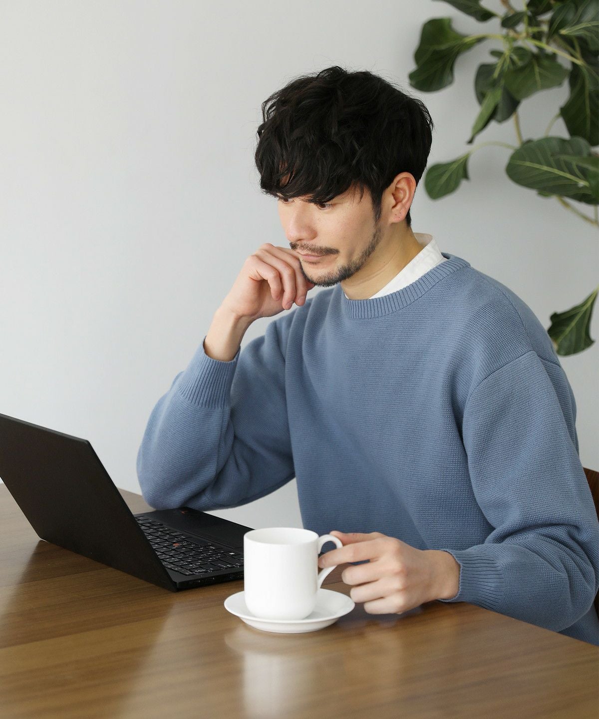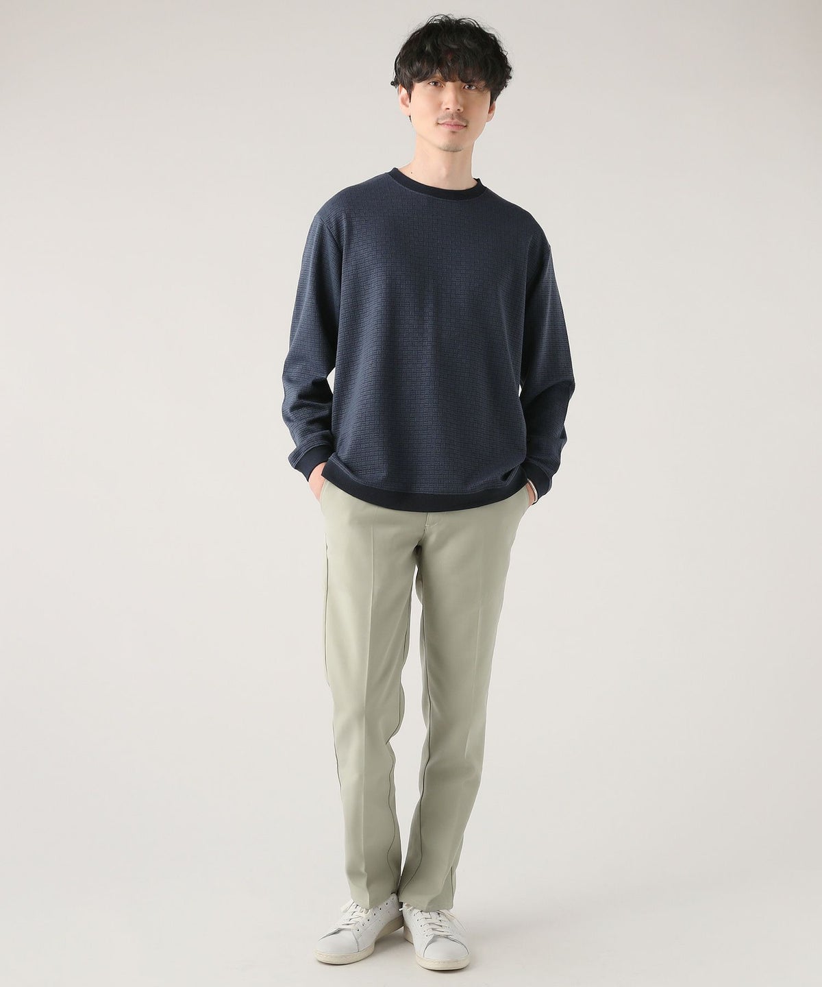ウォッシャブル12G鹿の子編みクルーネックニット