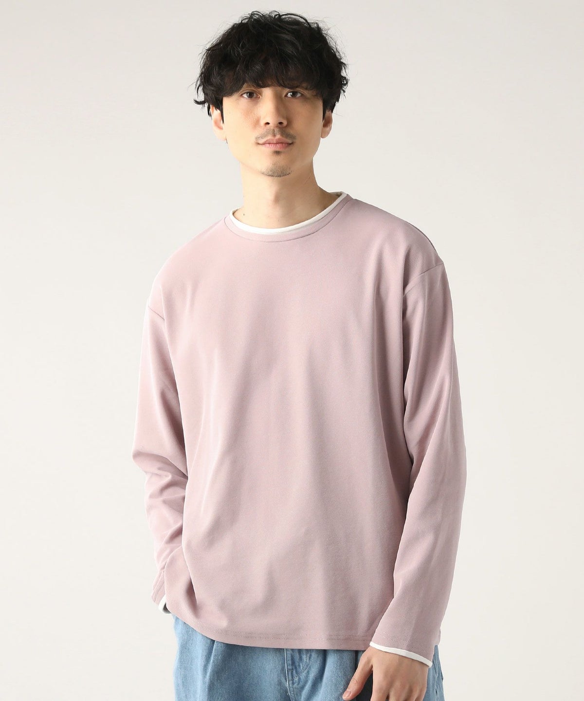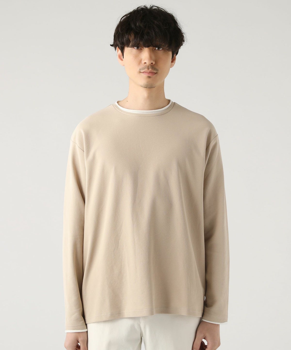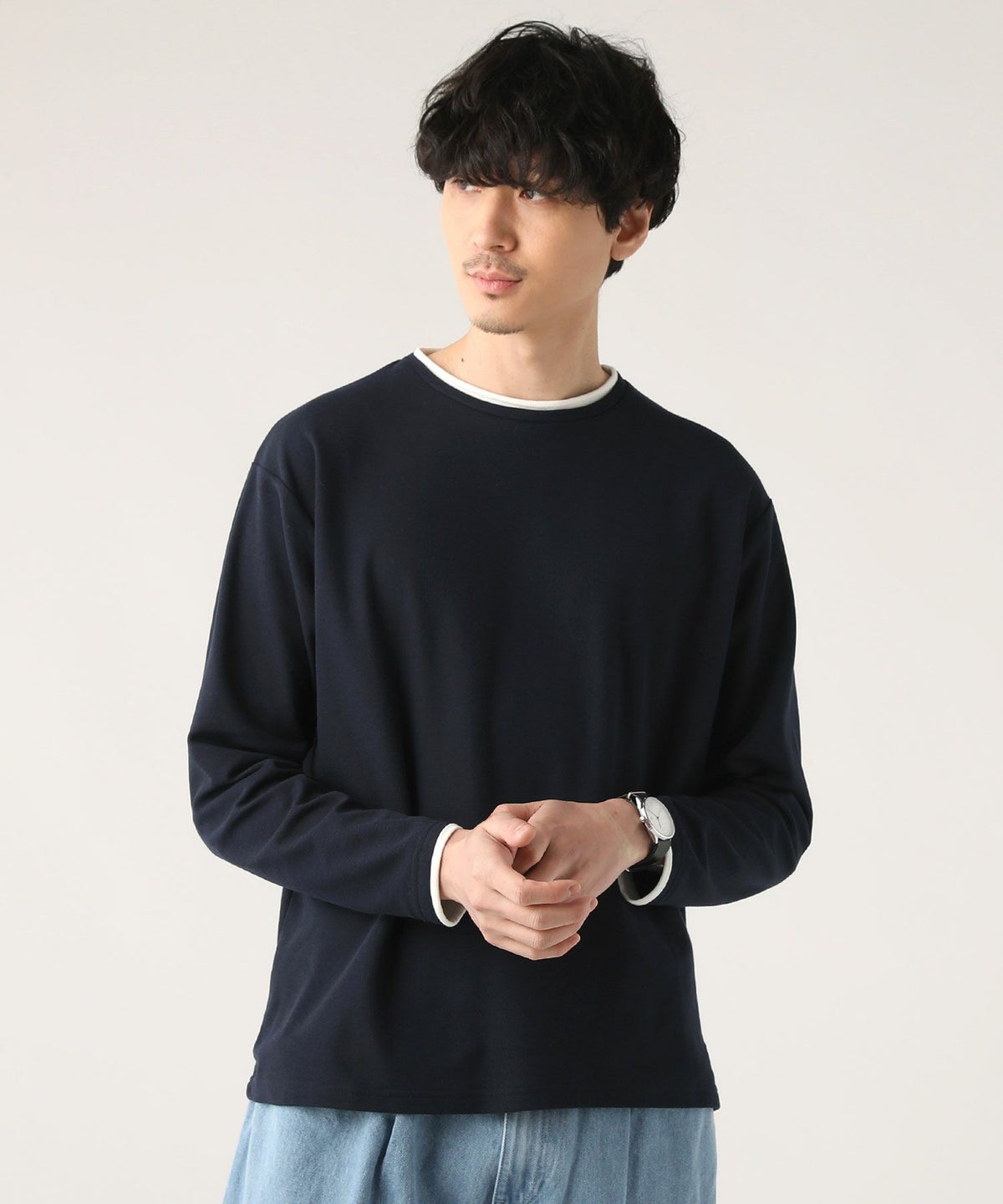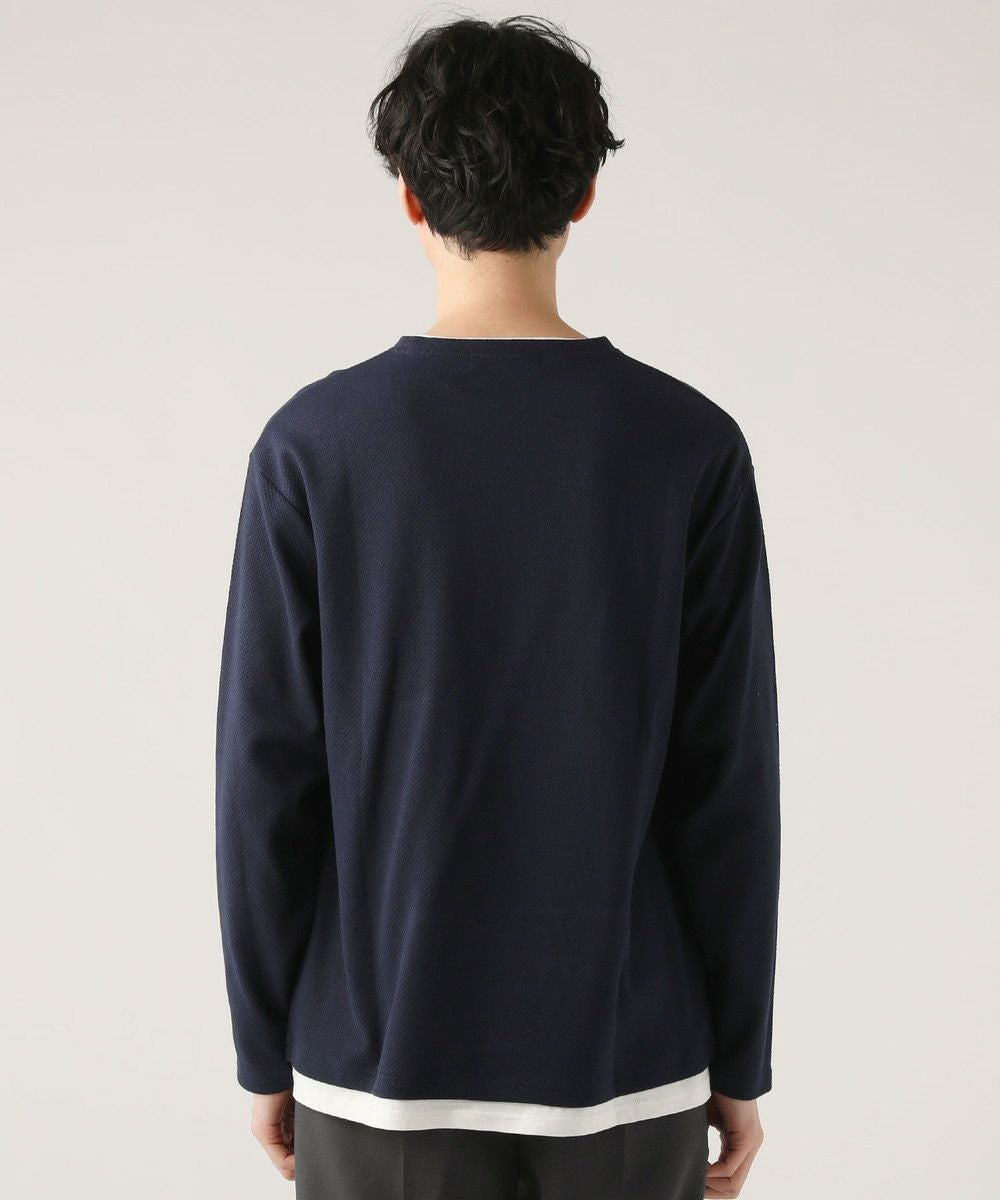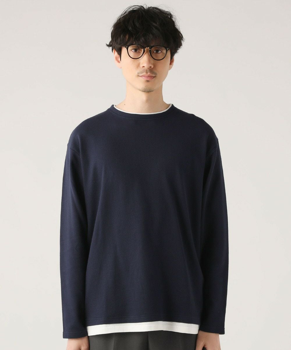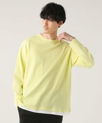 バスケットニットフェイクレイヤードクルーネック長袖カットソー