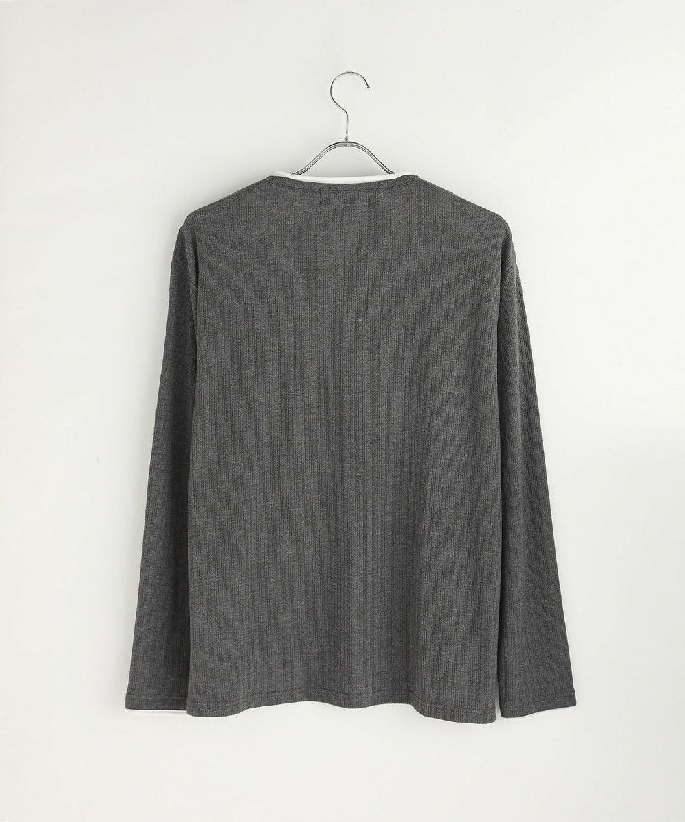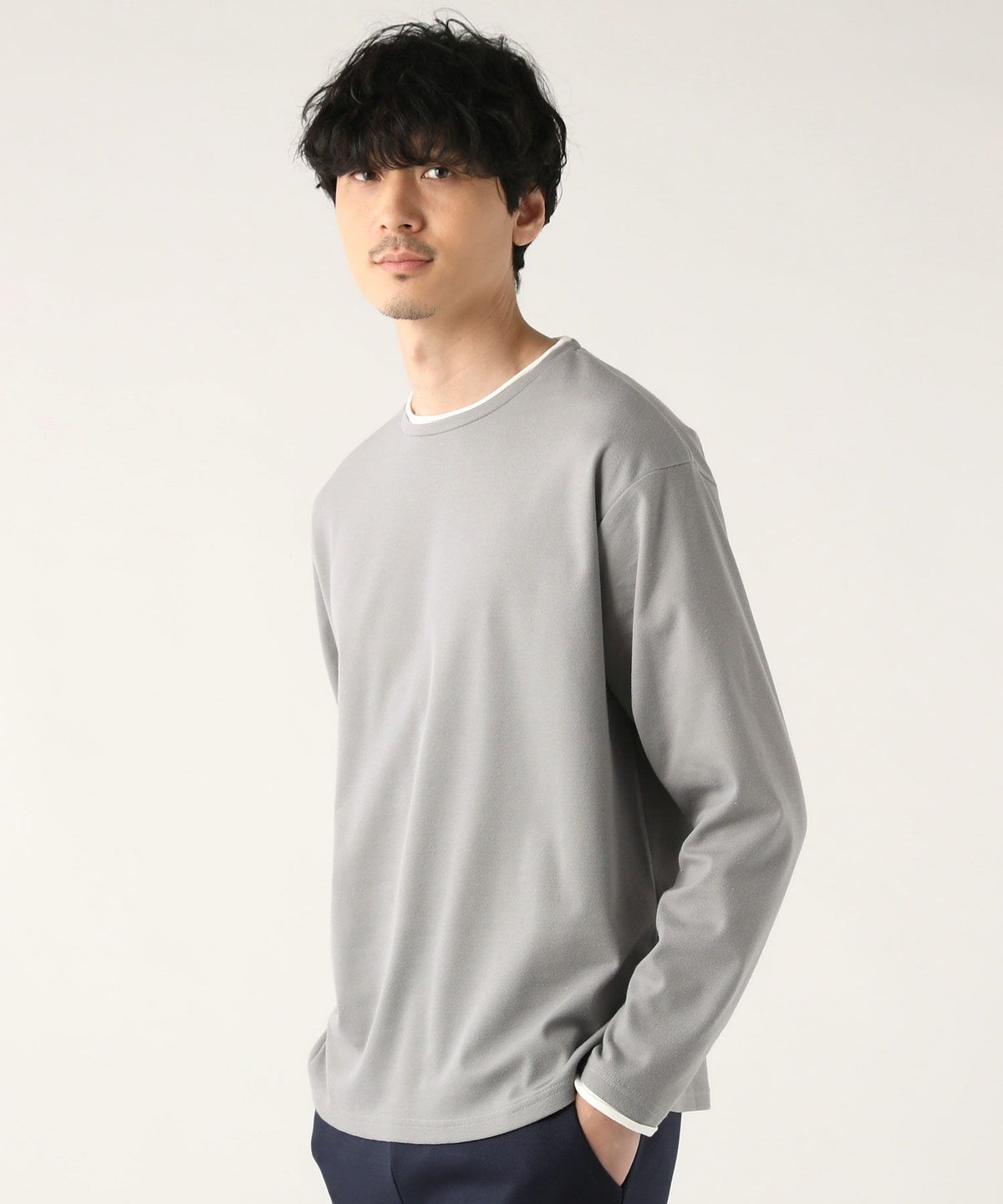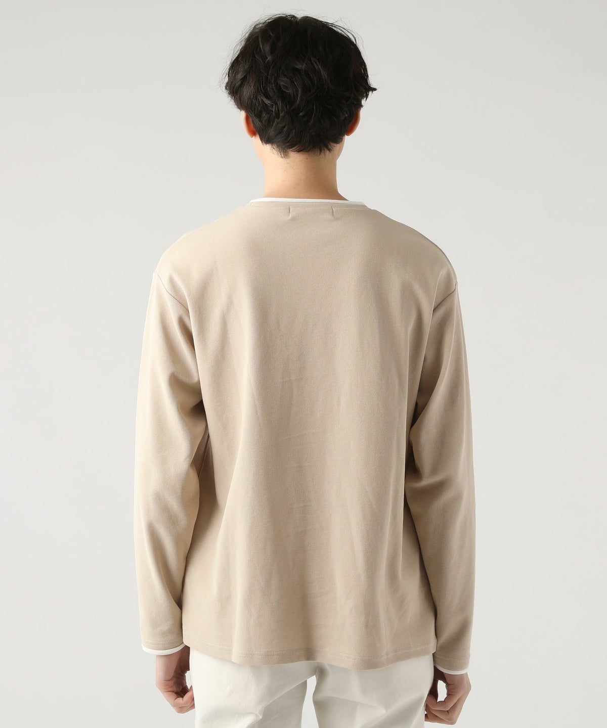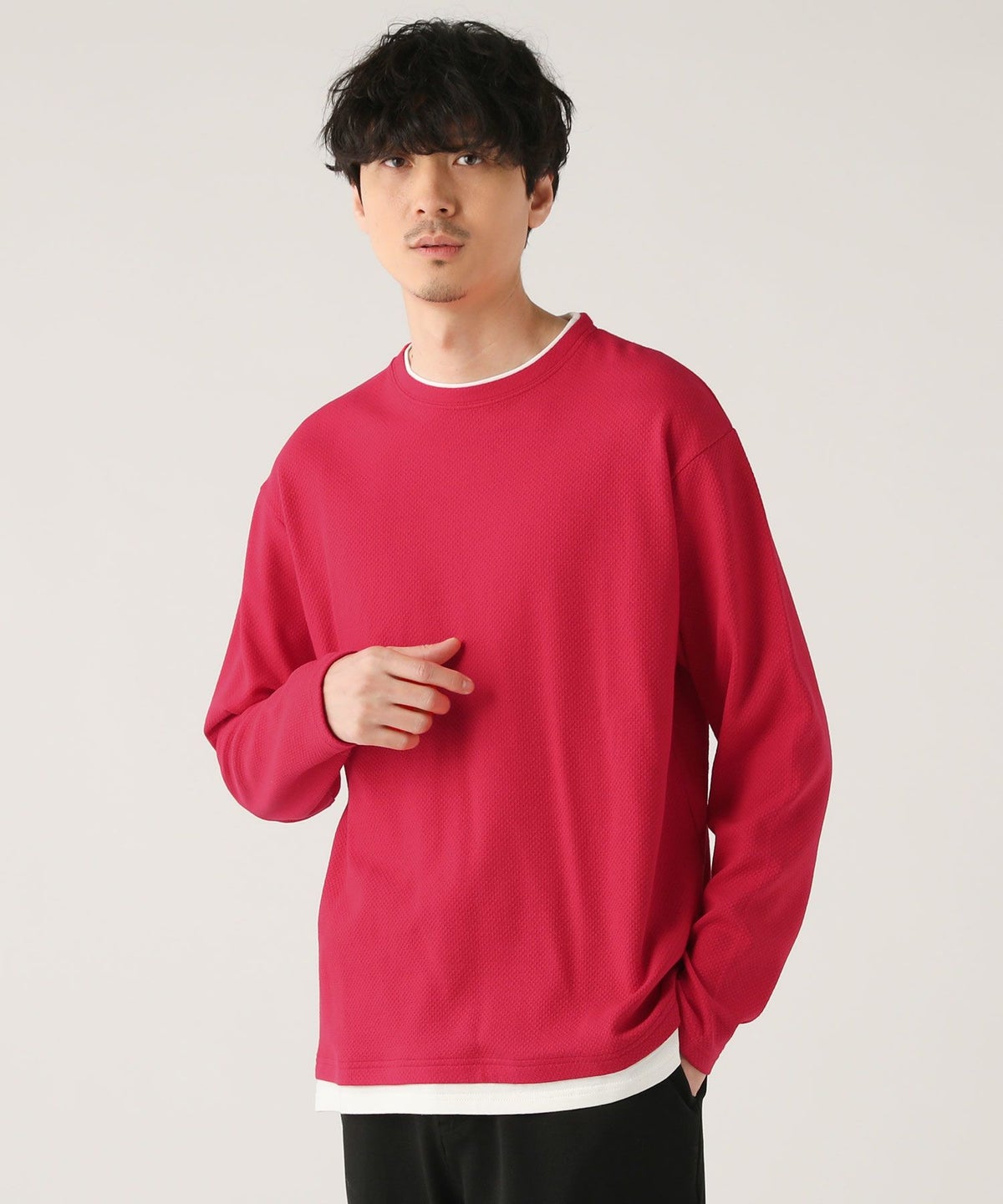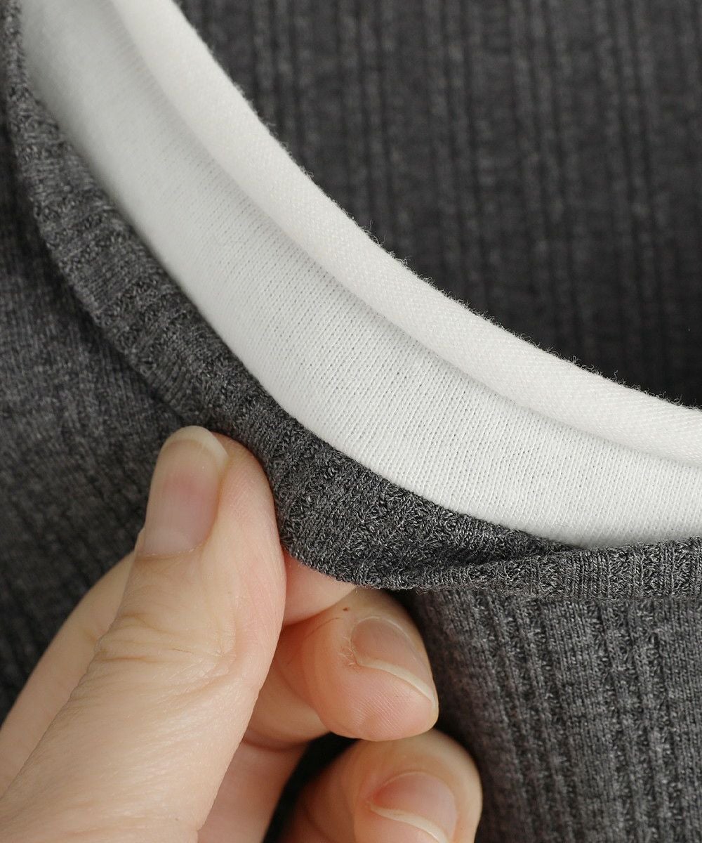 バスケットニットフェイクレイヤードクルーネック長袖カットソー