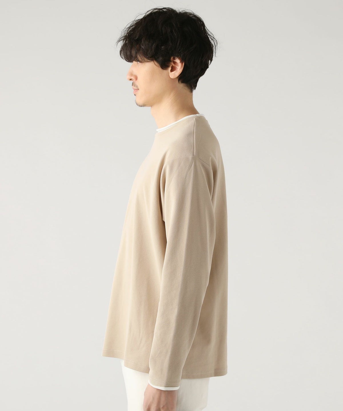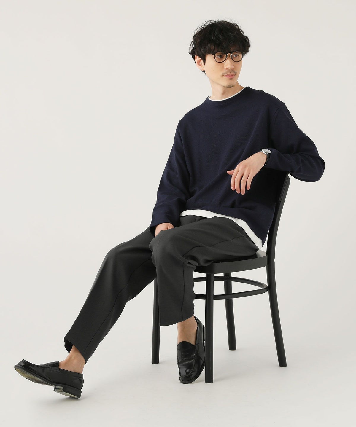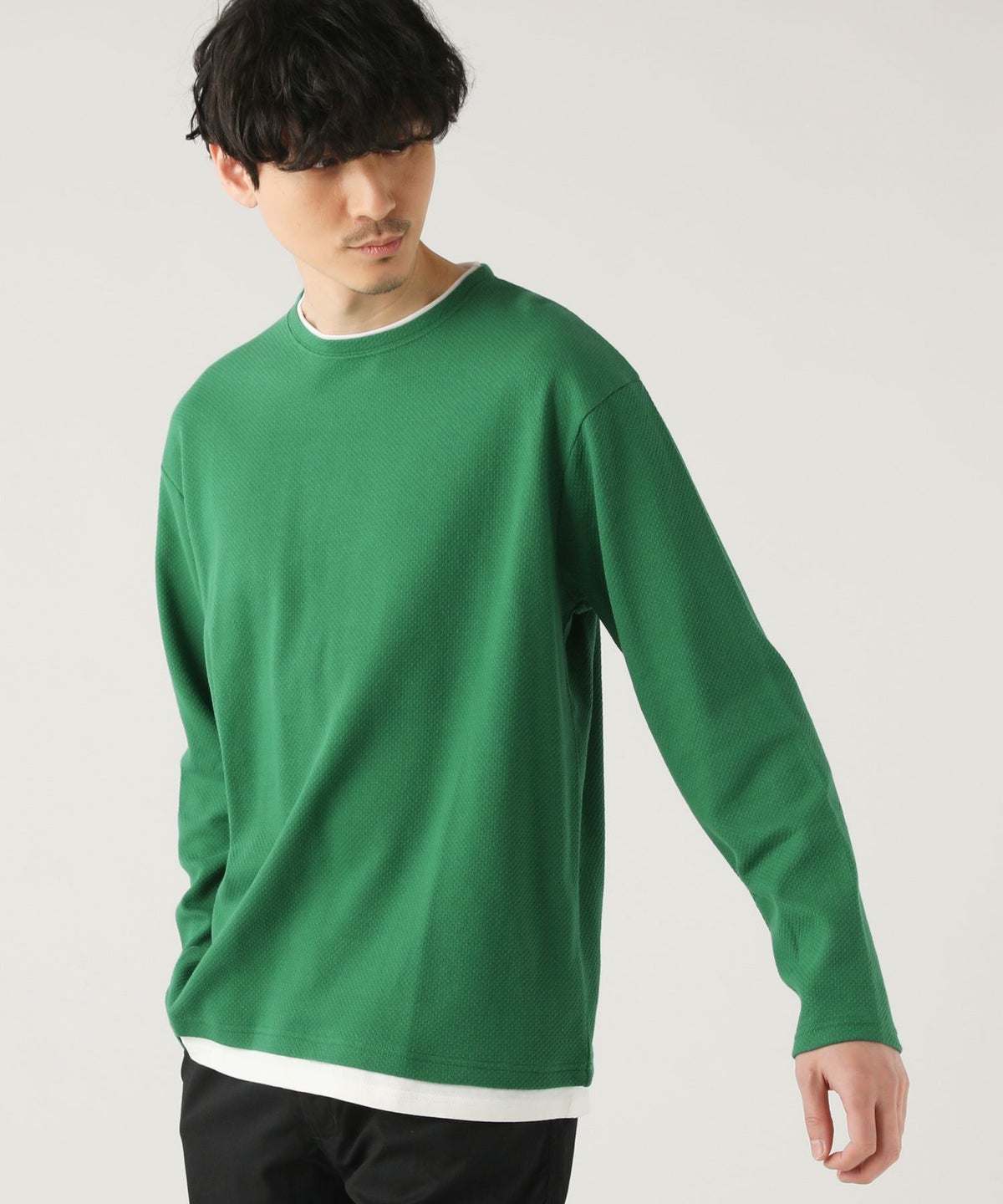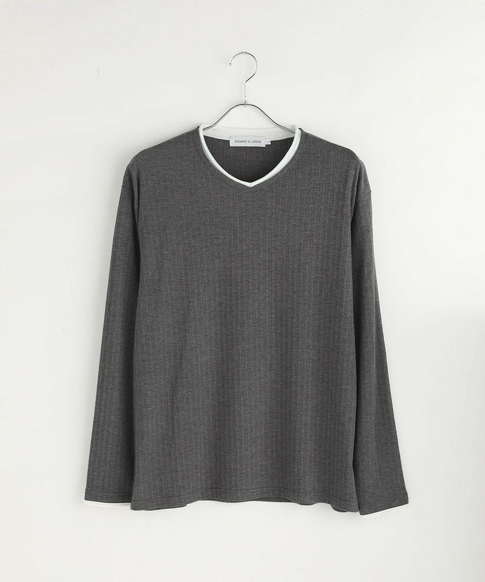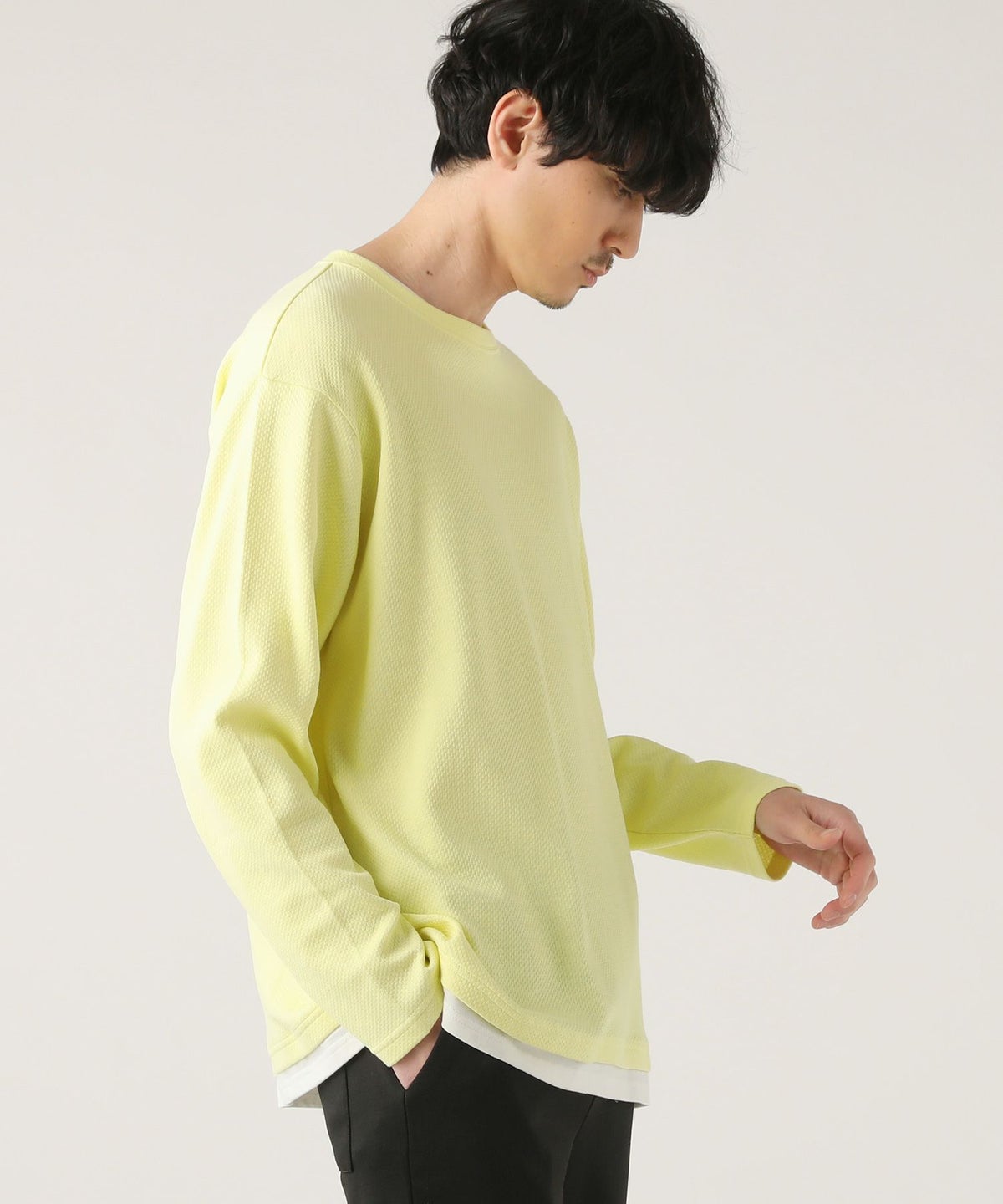 バスケットニットフェイクレイヤードクルーネック長袖カットソー