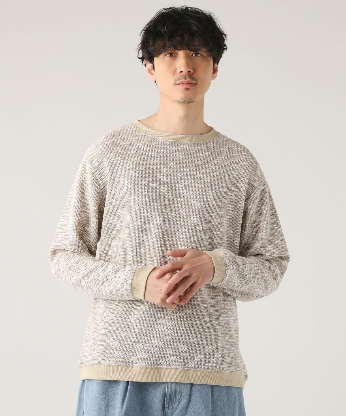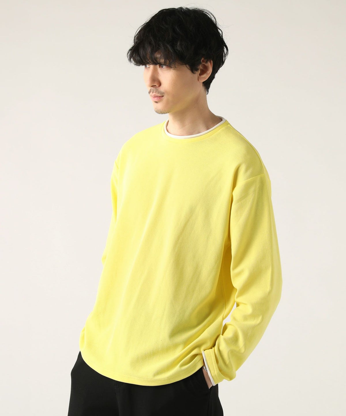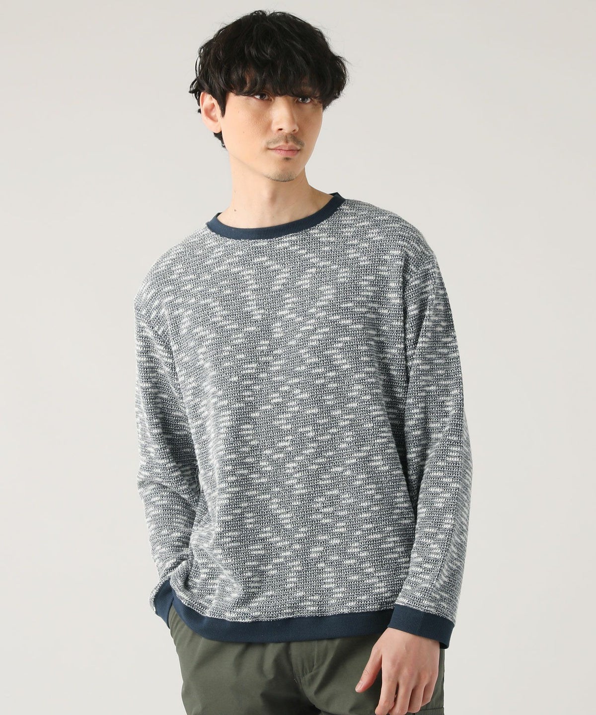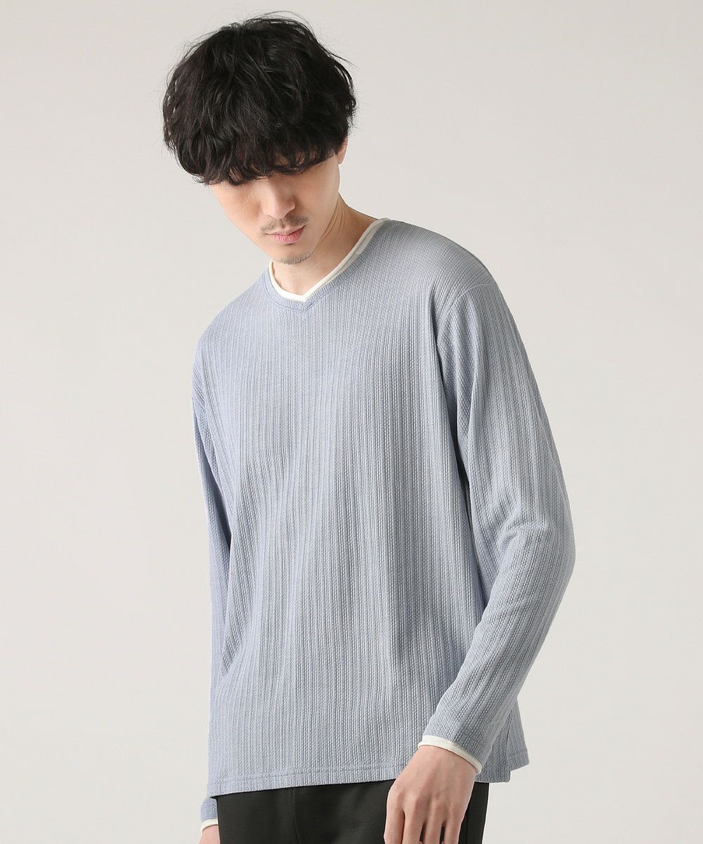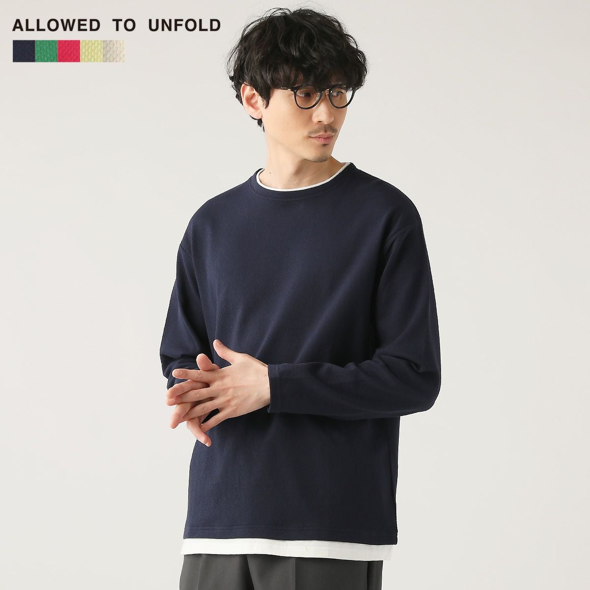 バスケットニットフェイクレイヤードクルーネック長袖カットソー