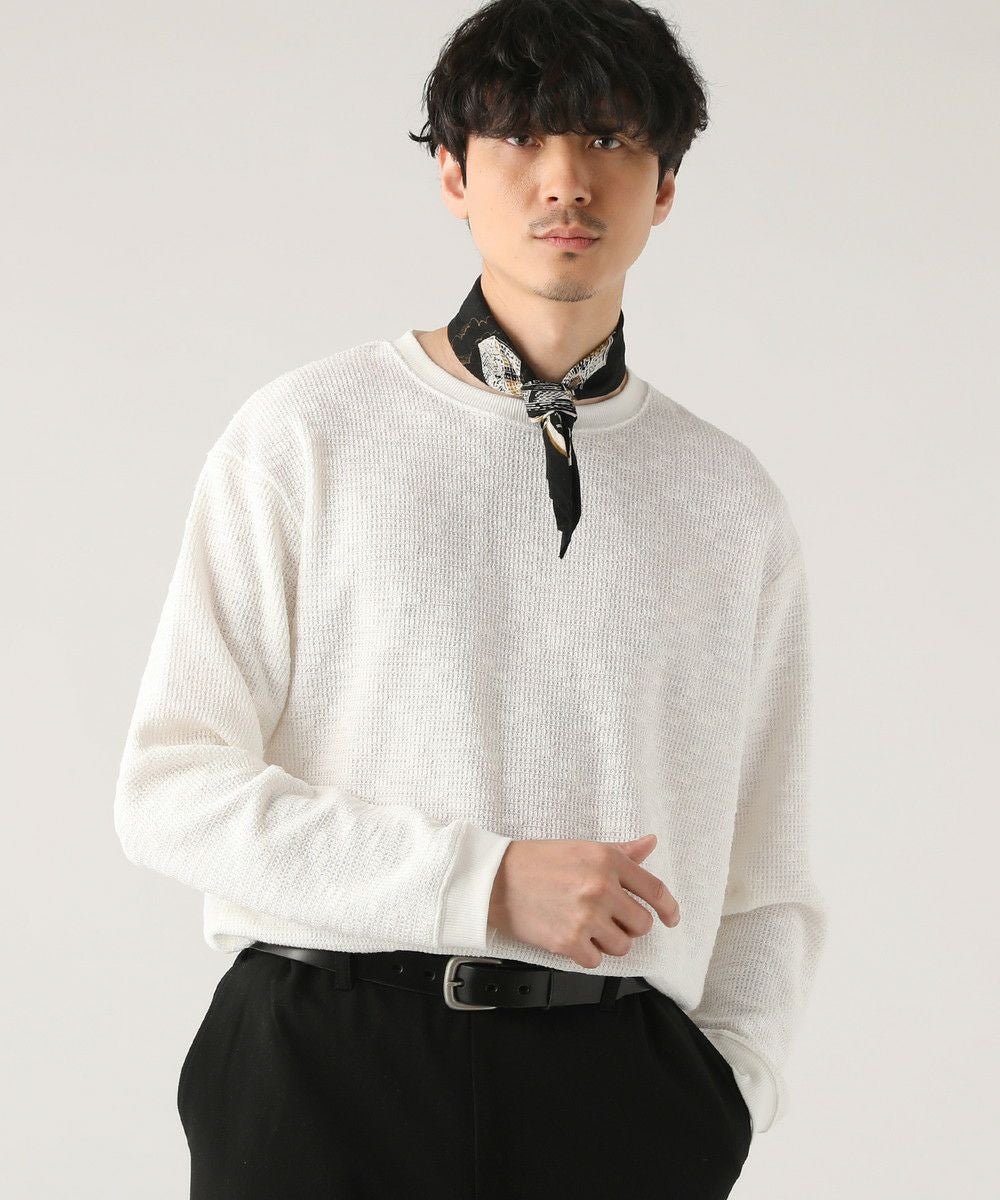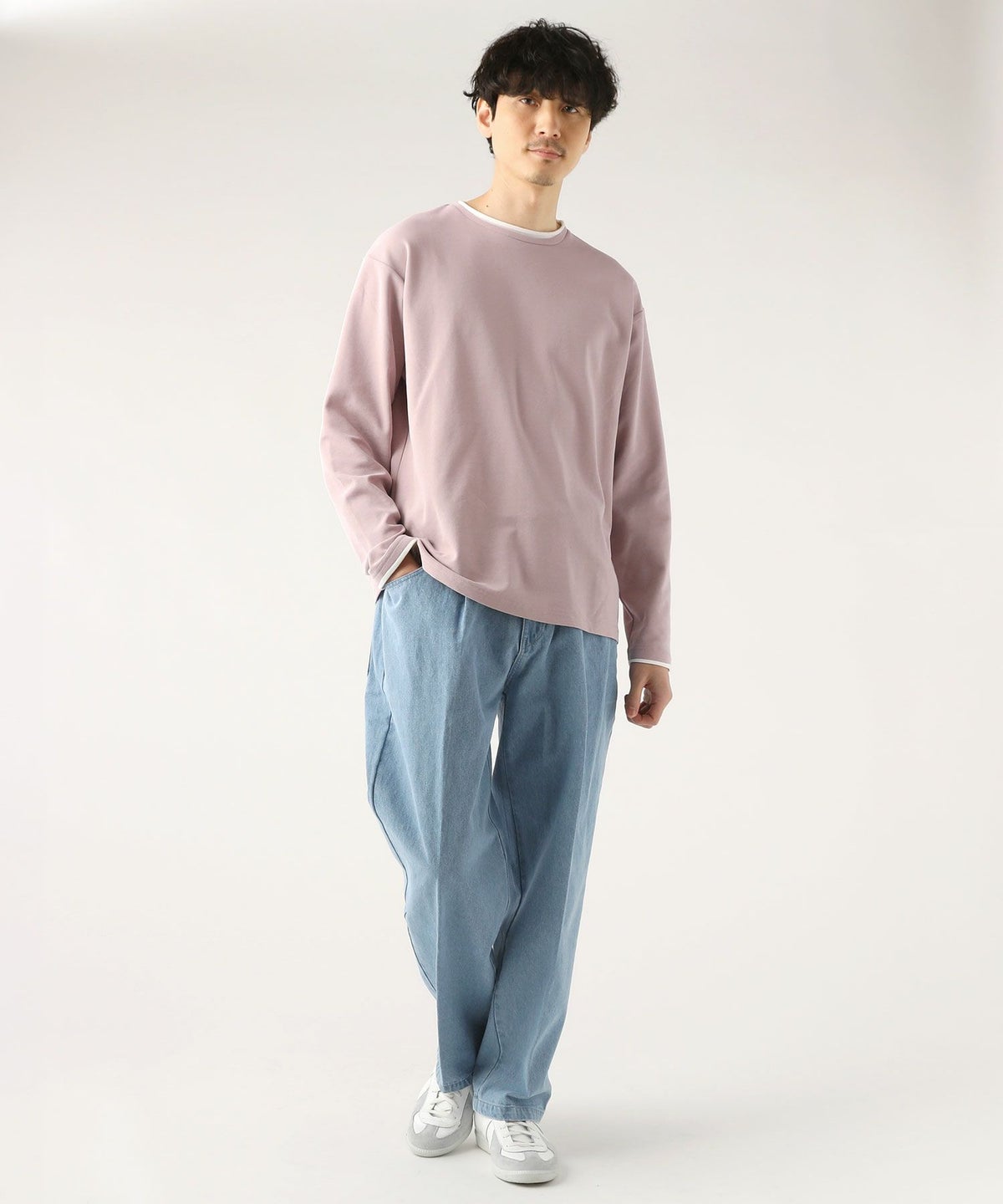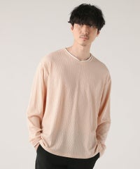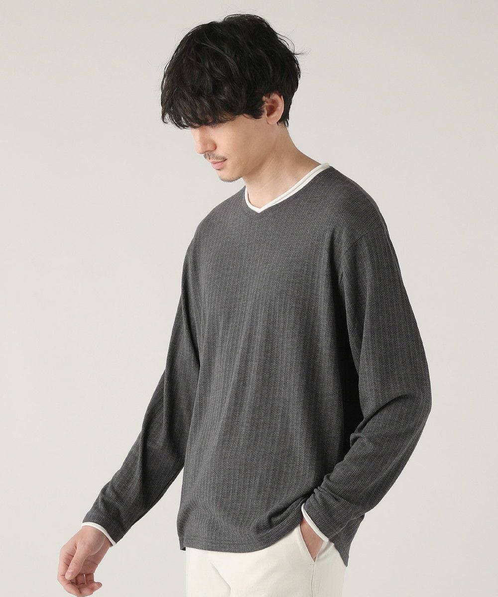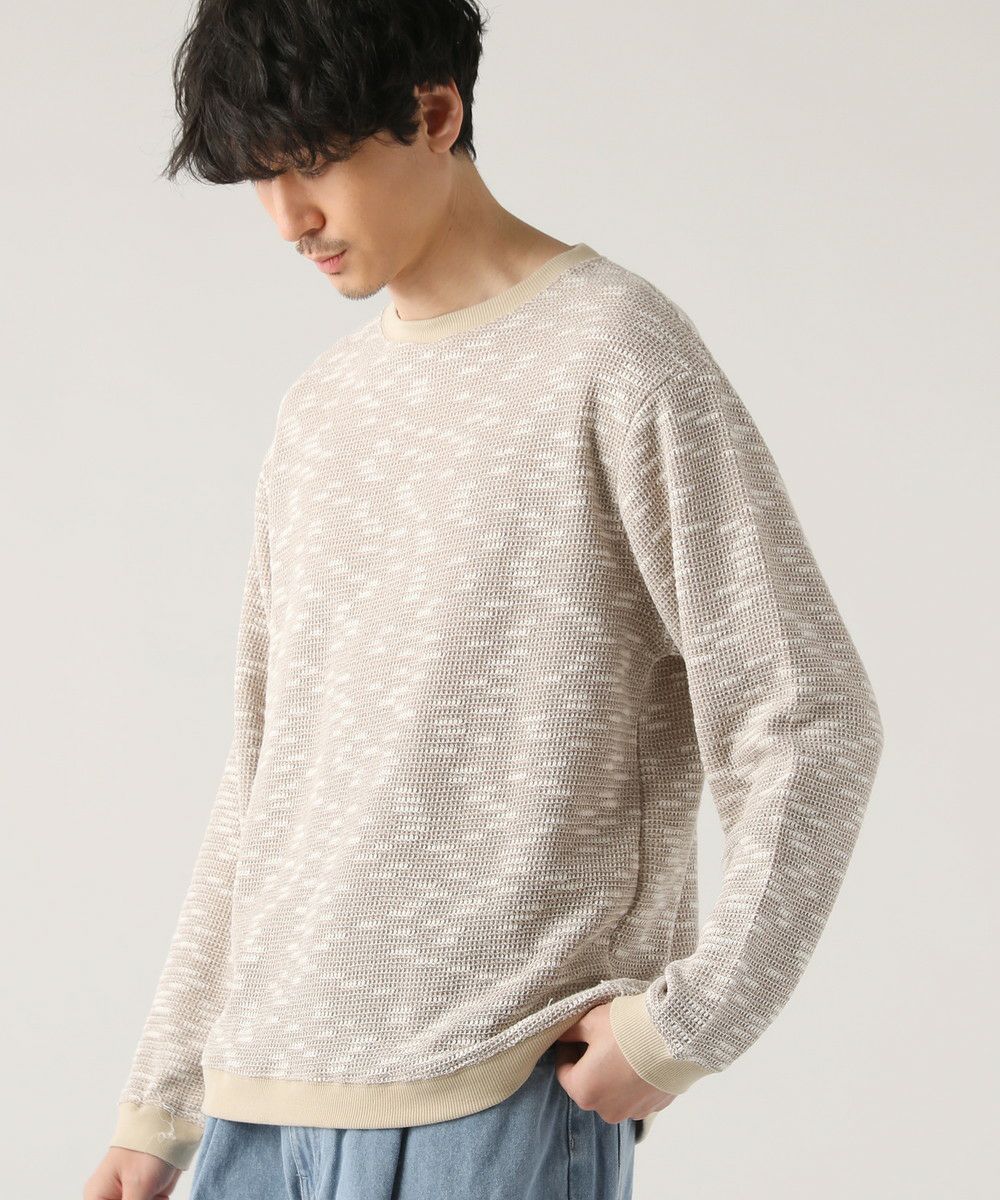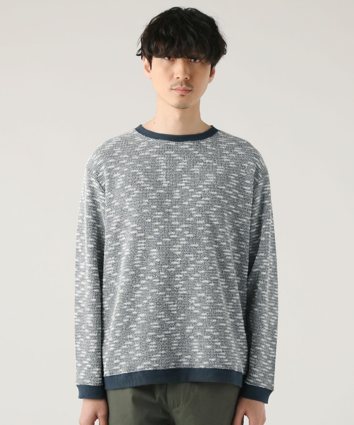 バスケットニットフェイクレイヤードクルーネック長袖カットソー
