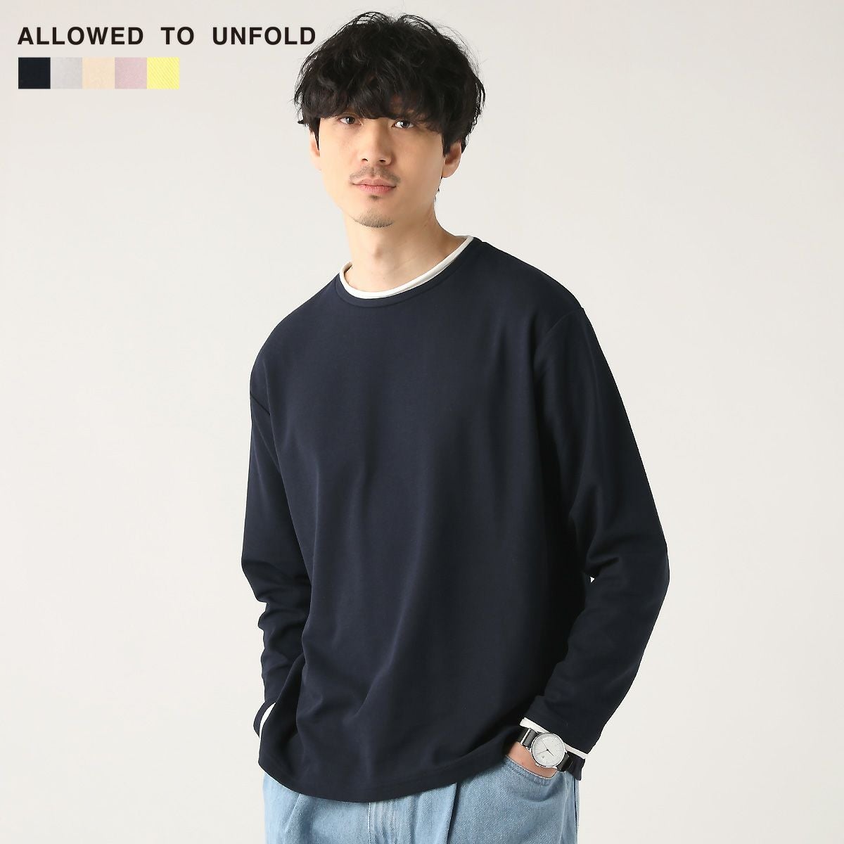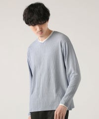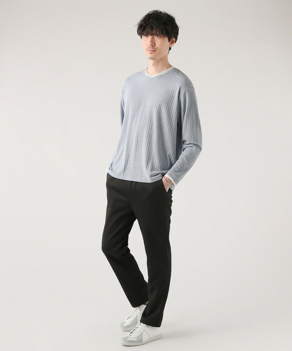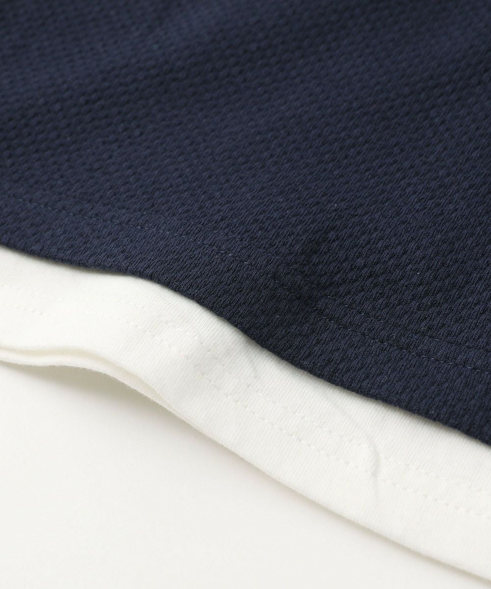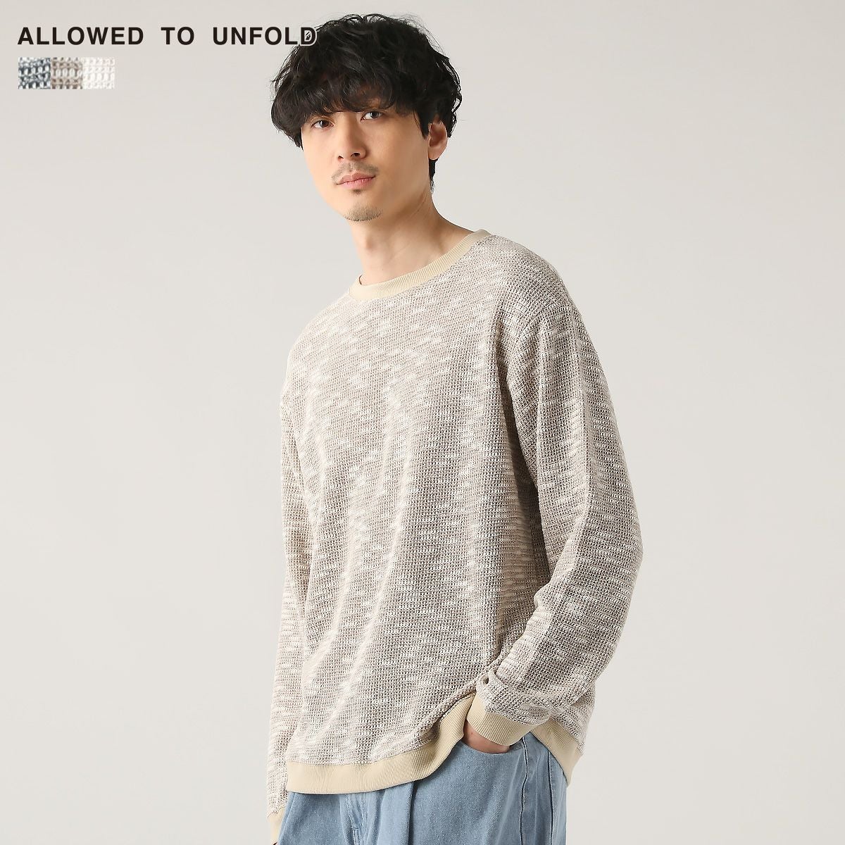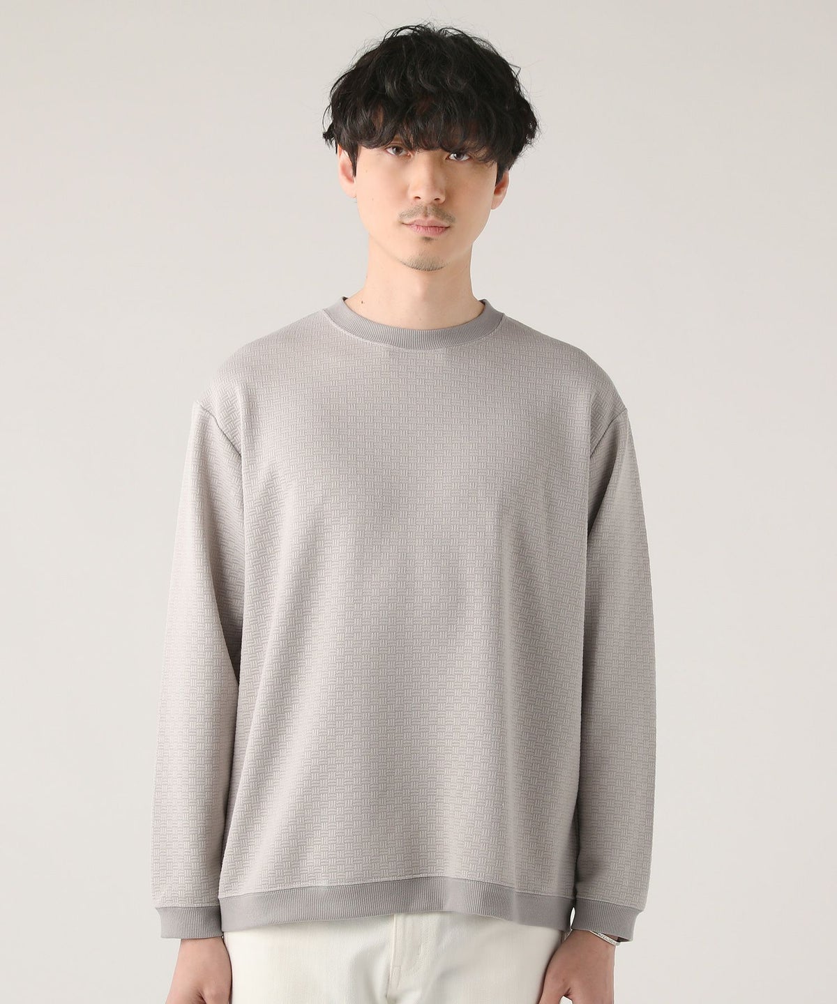バスケットニットフェイクレイヤードクルーネック長袖カットソー