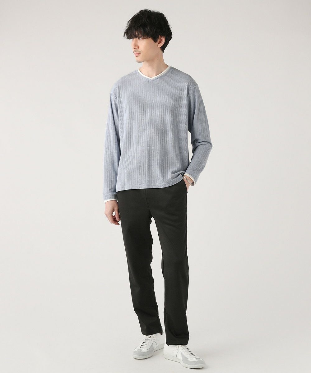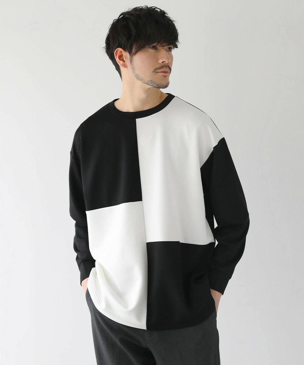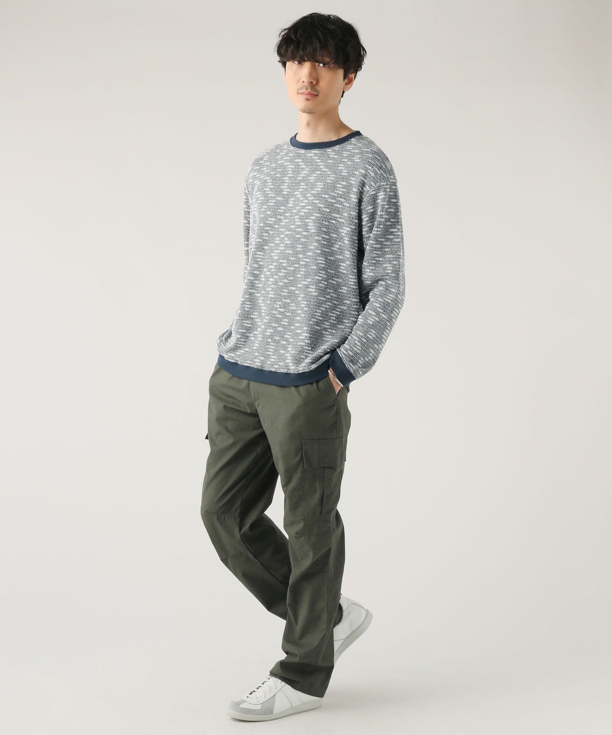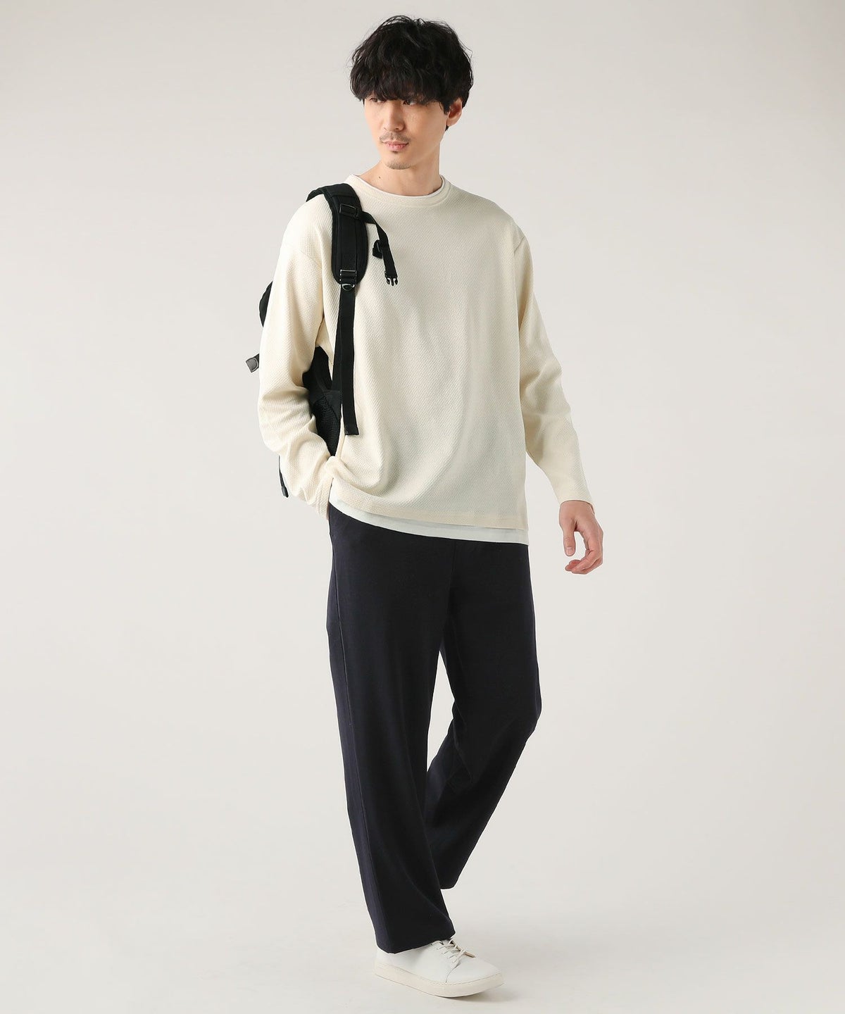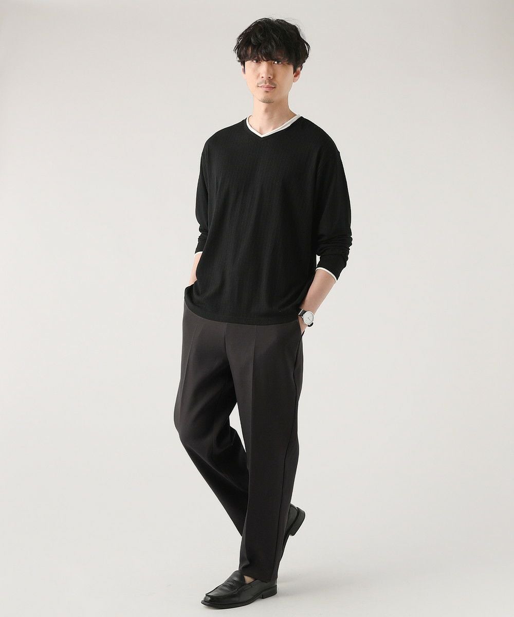 バスケットニットフェイクレイヤードクルーネック長袖カットソー
