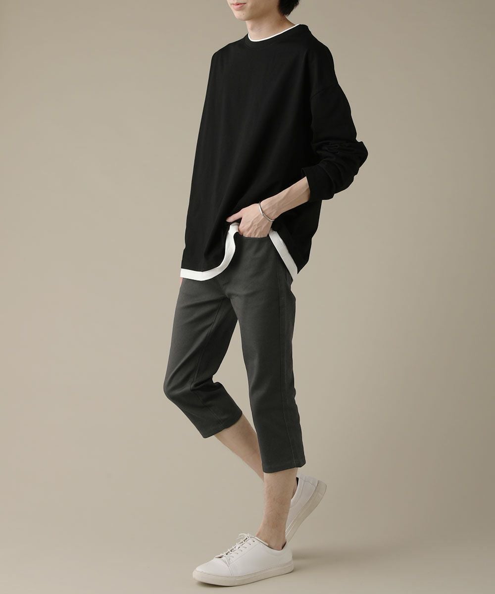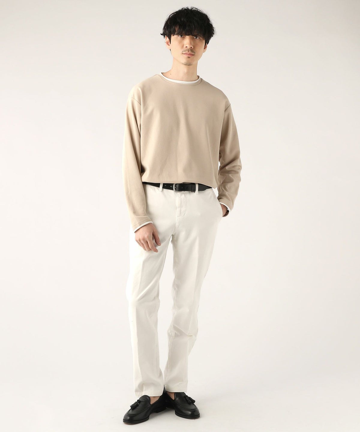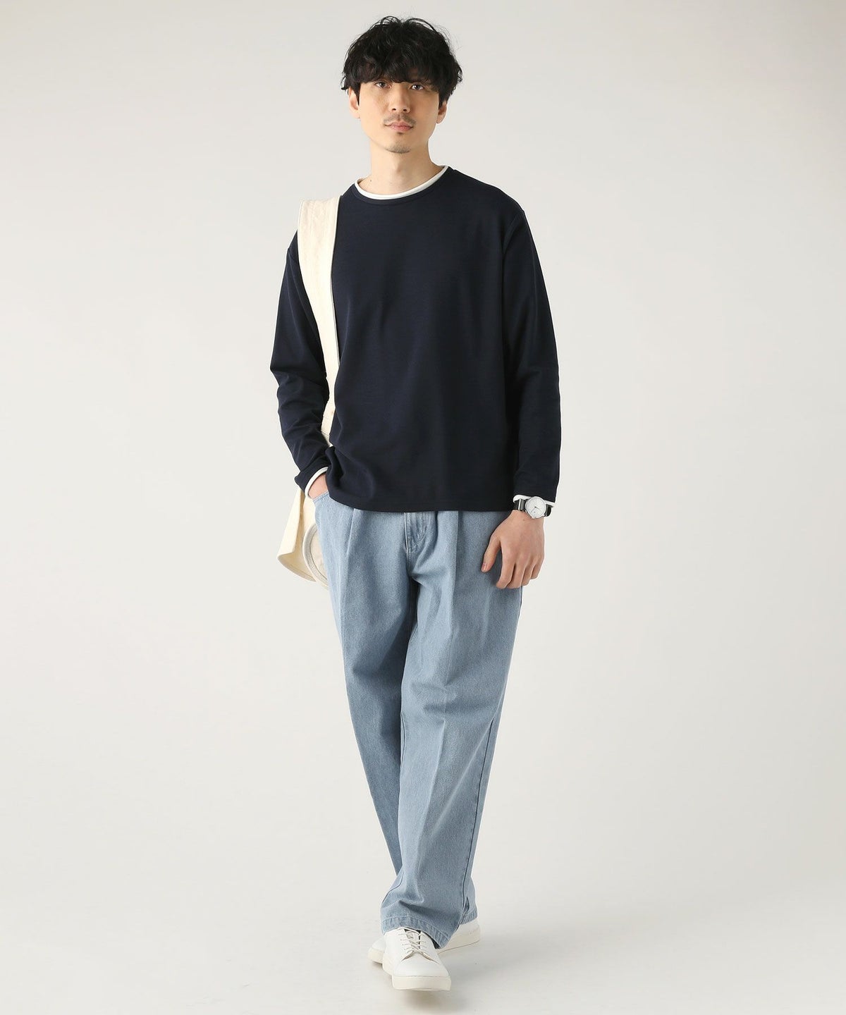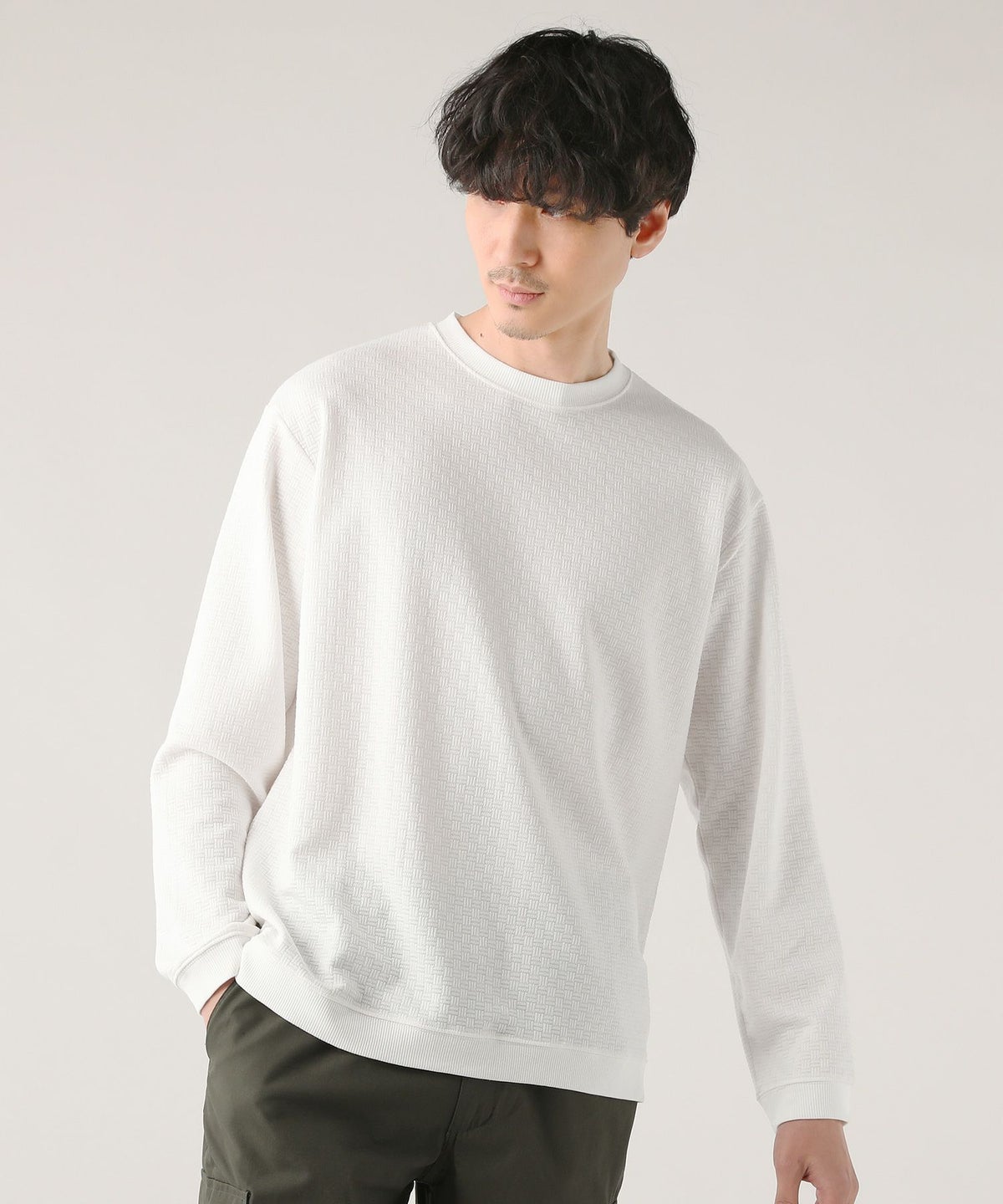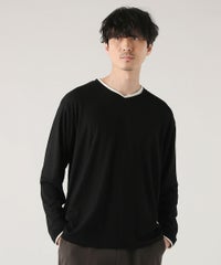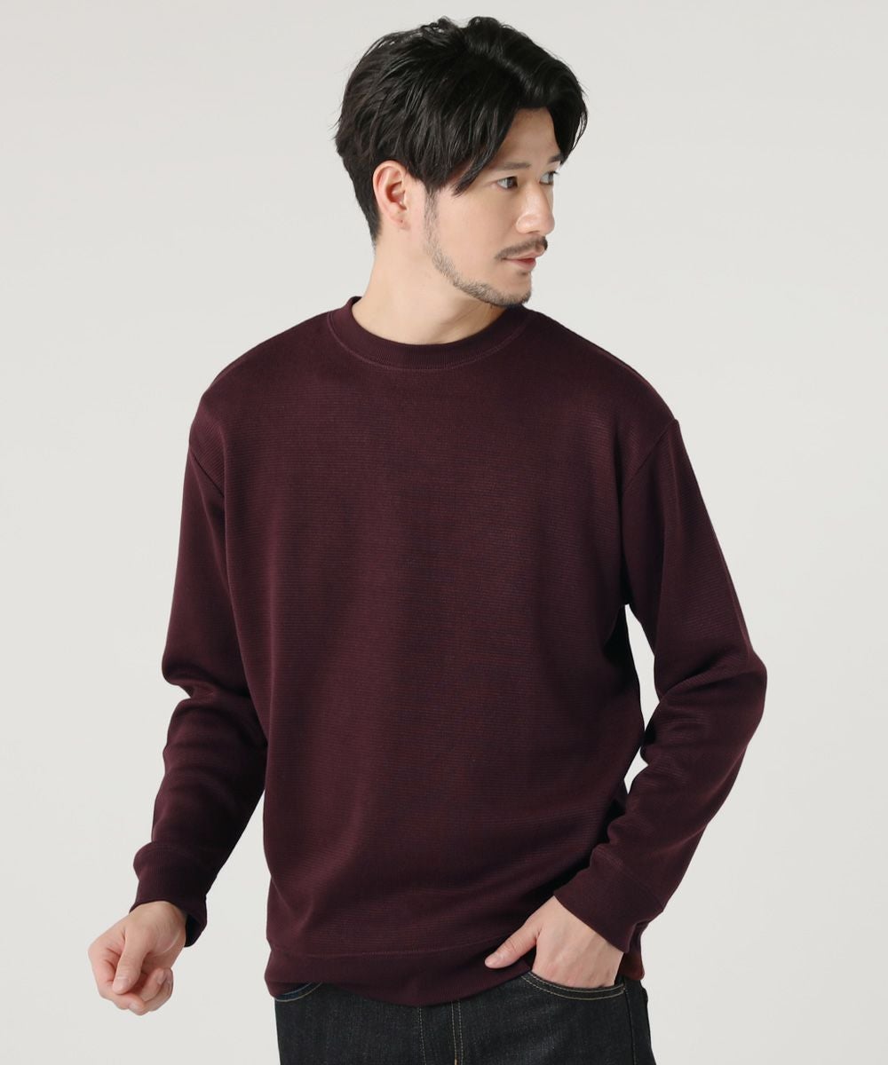 バスケットニットフェイクレイヤードクルーネック長袖カットソー
