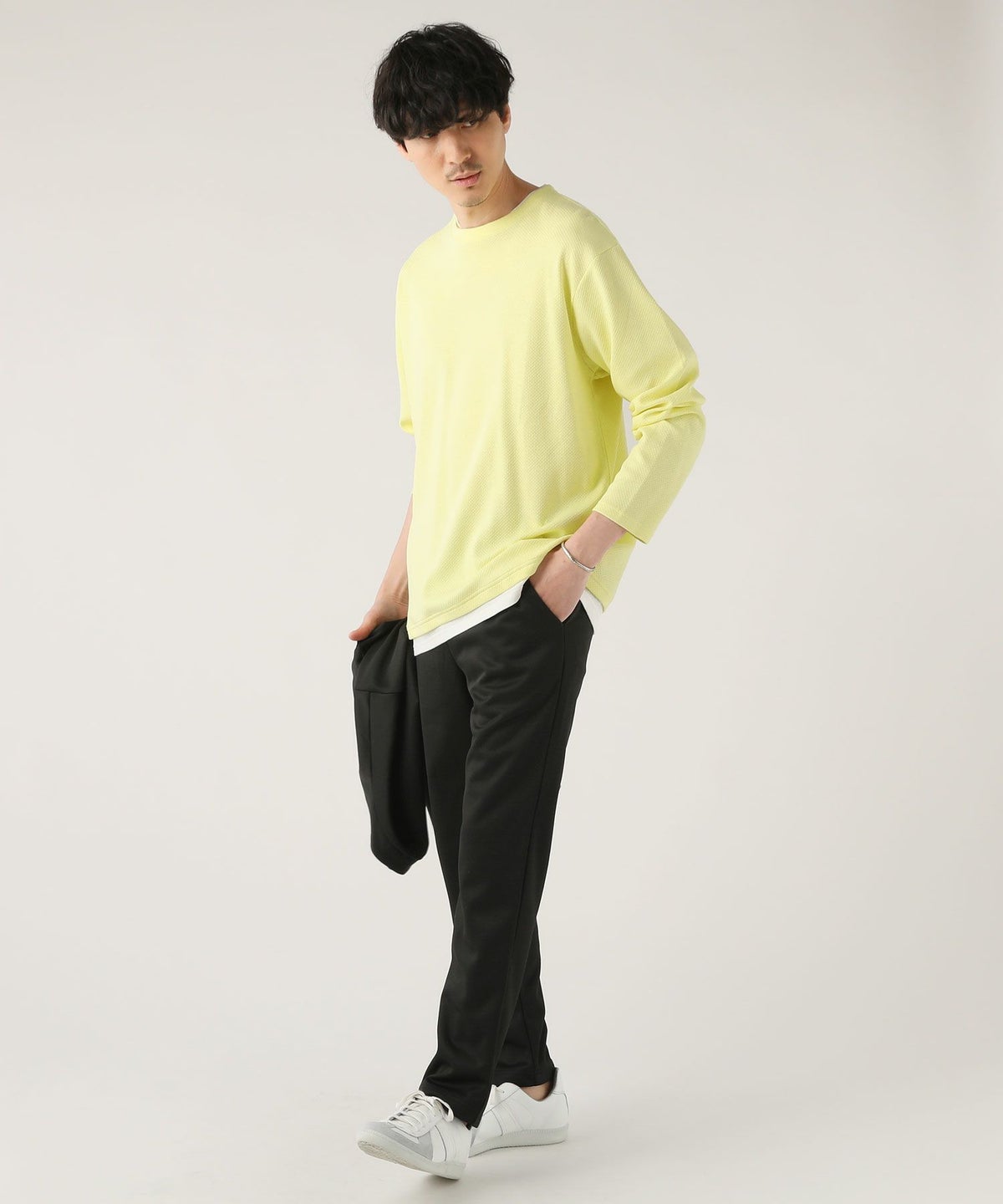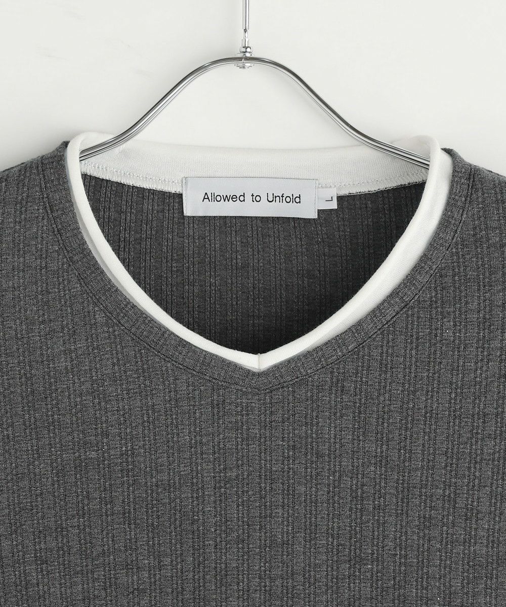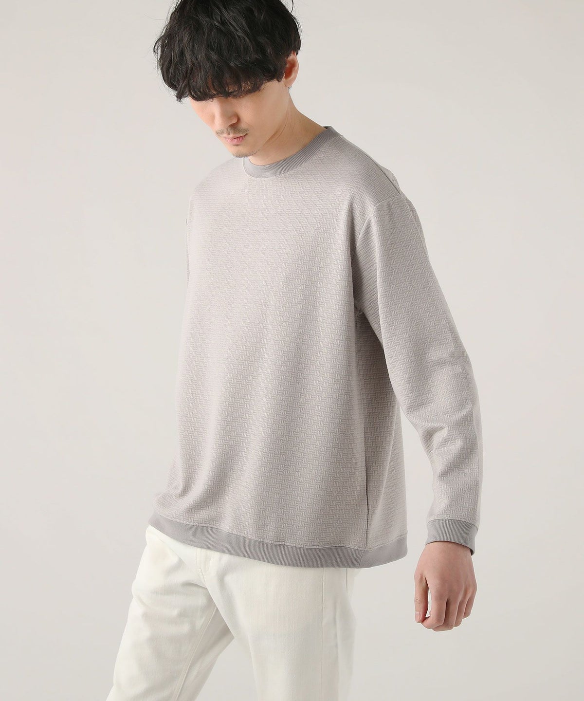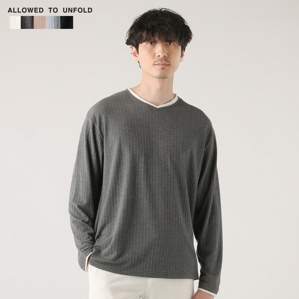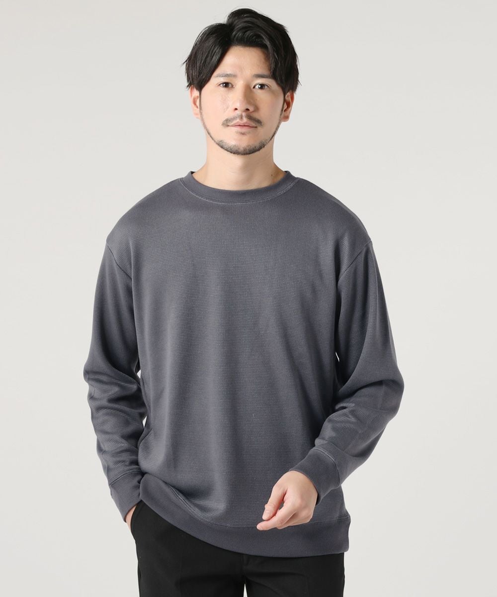 バスケットニットフェイクレイヤードクルーネック長袖カットソー