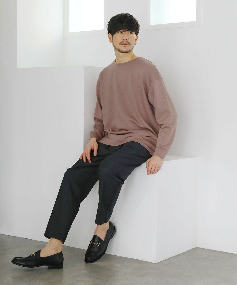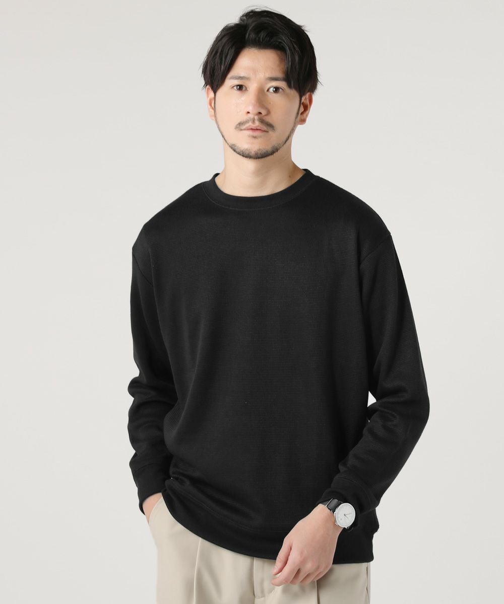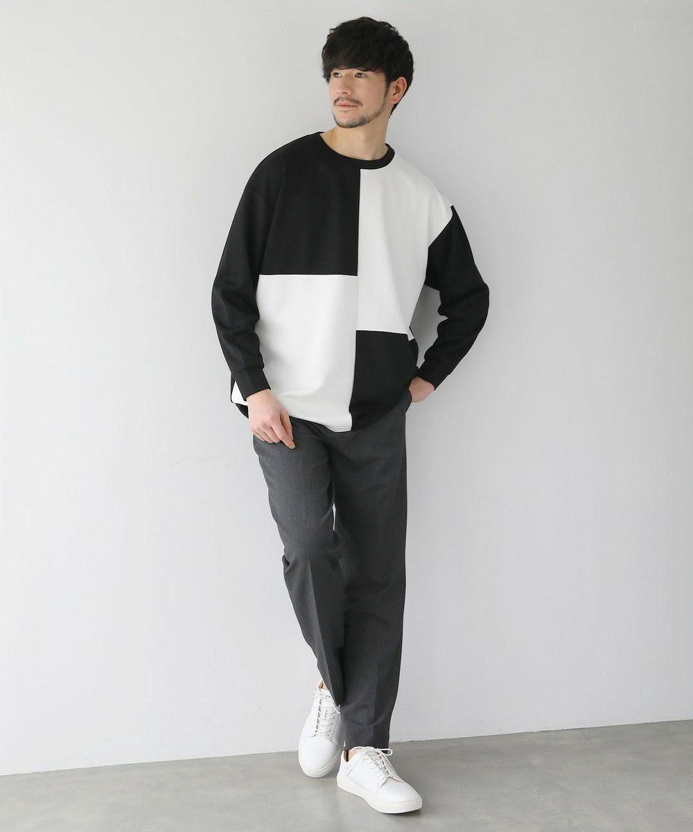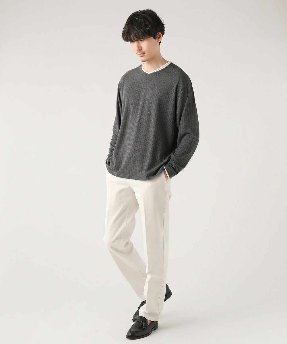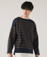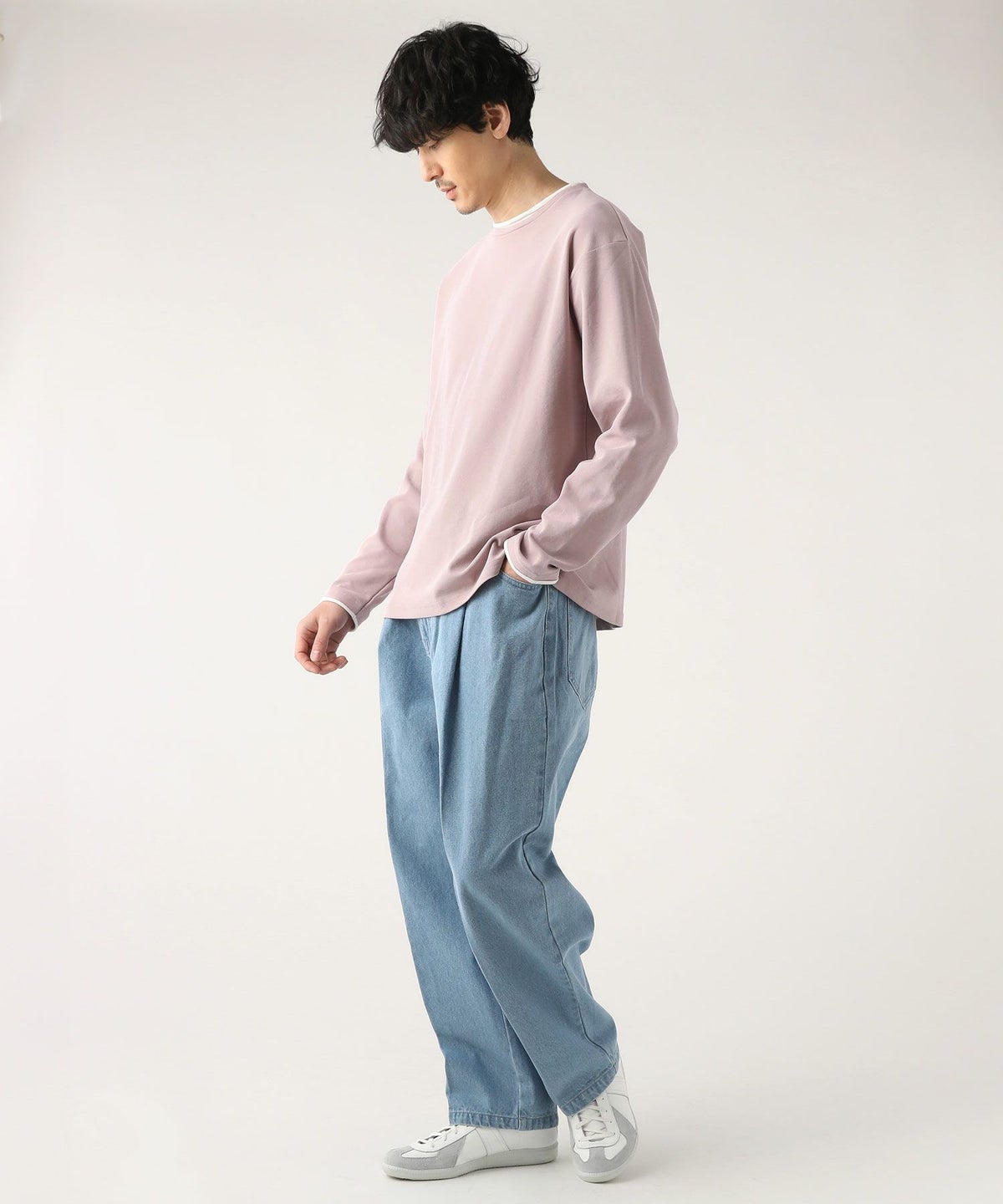 バスケットニットフェイクレイヤードクルーネック長袖カットソー
