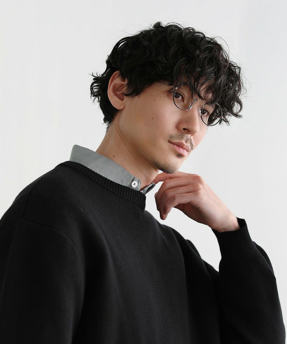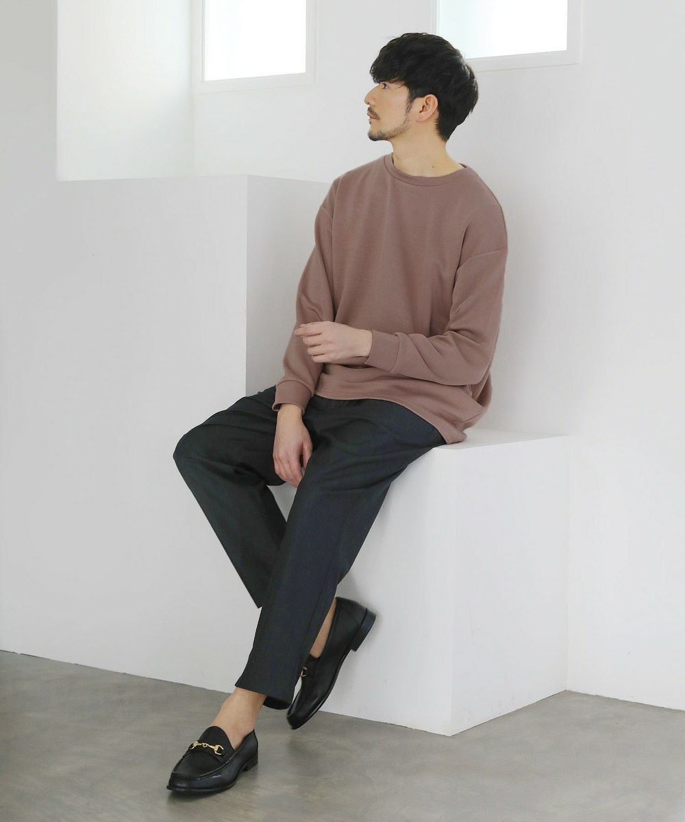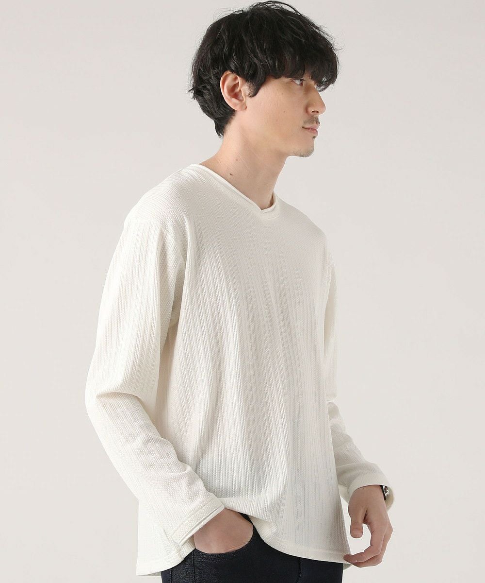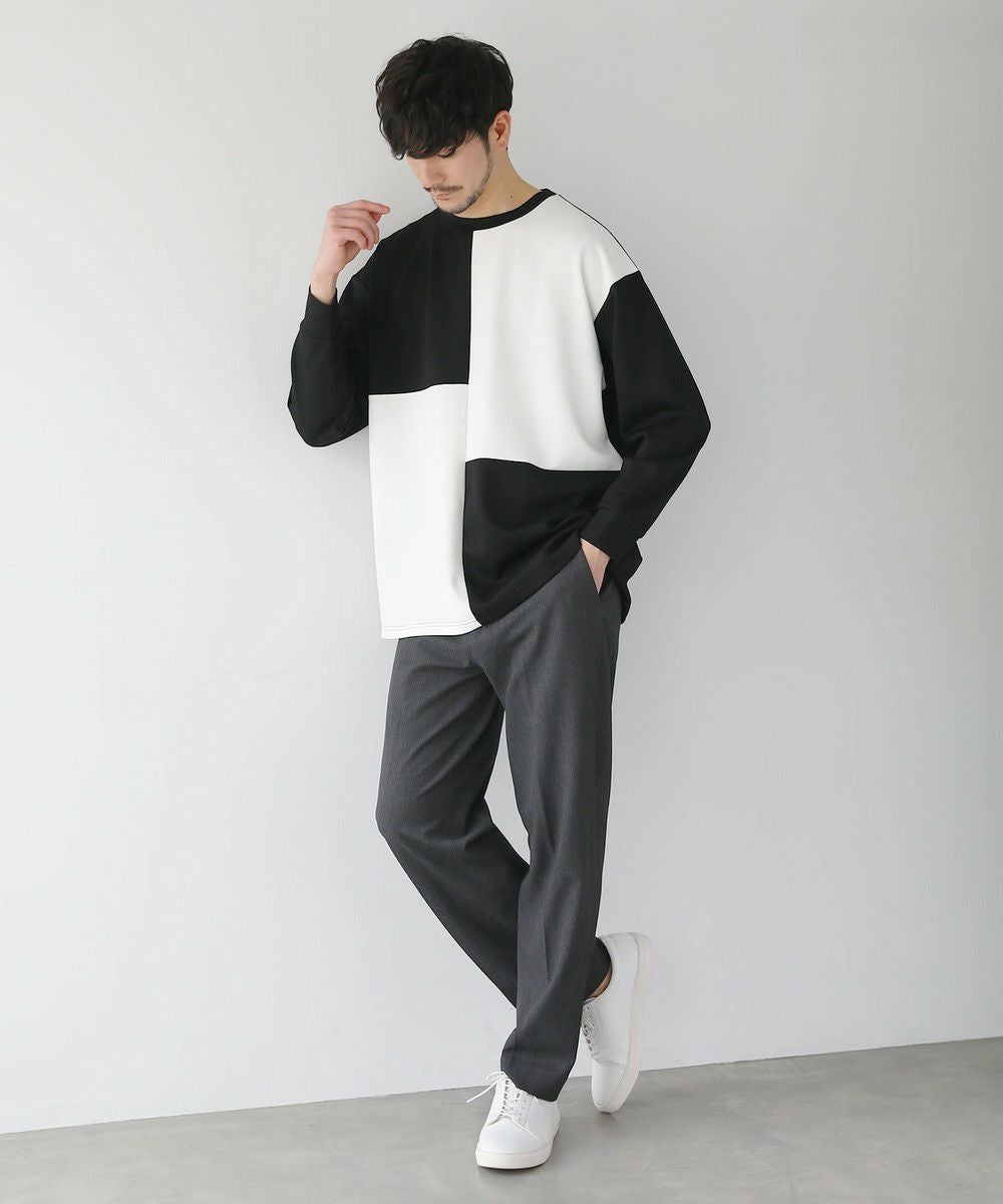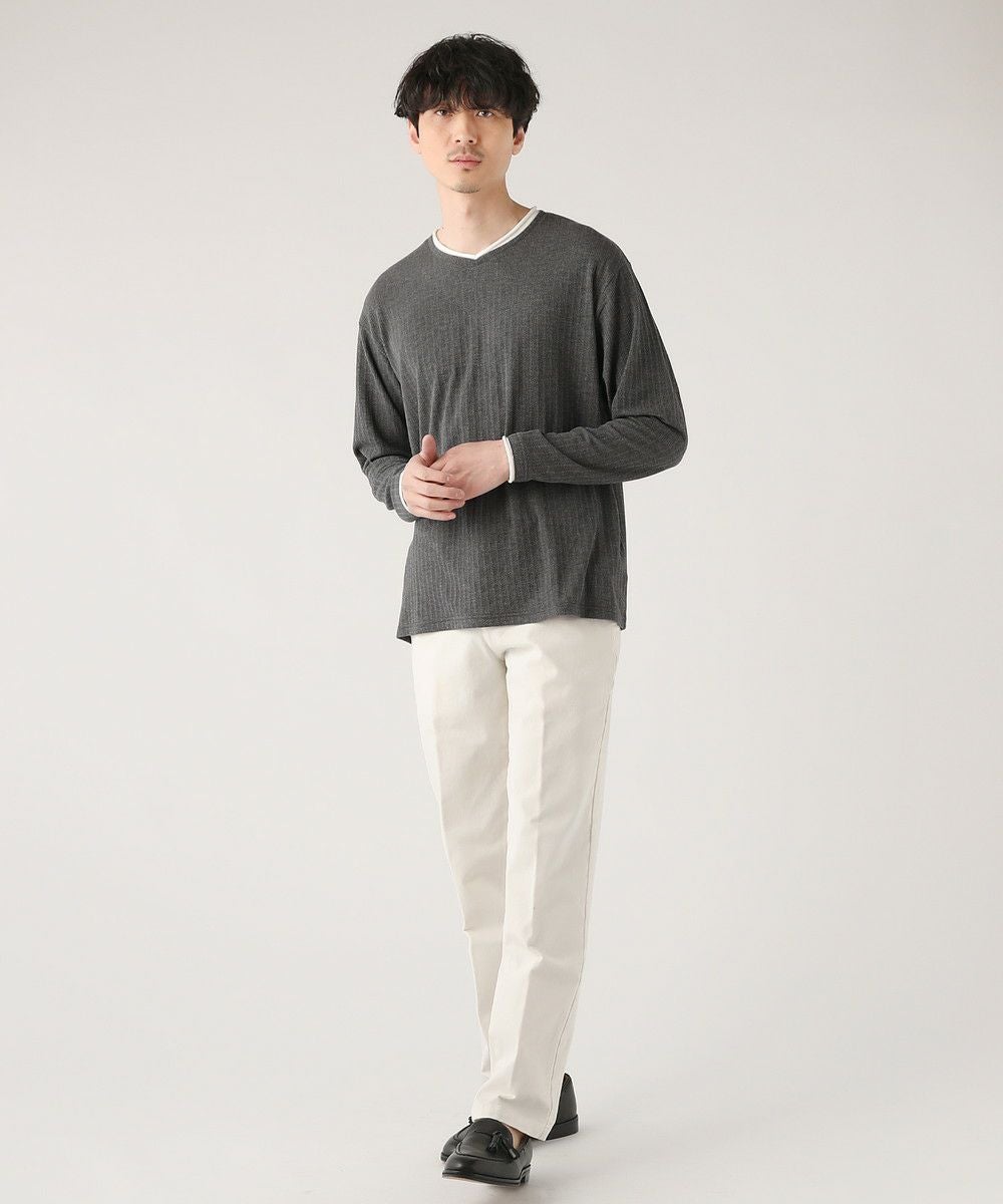バスケットニットフェイクレイヤードクルーネック長袖カットソー