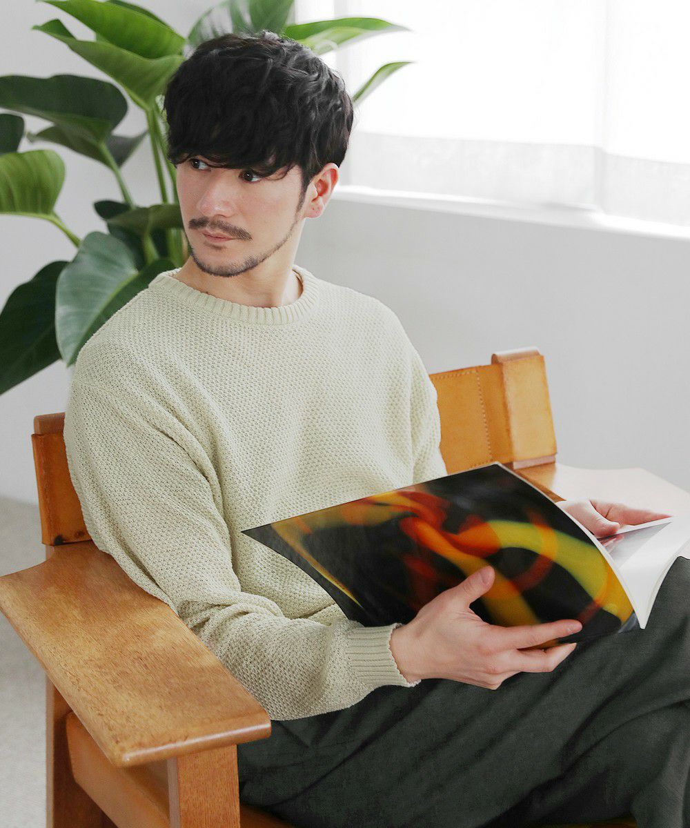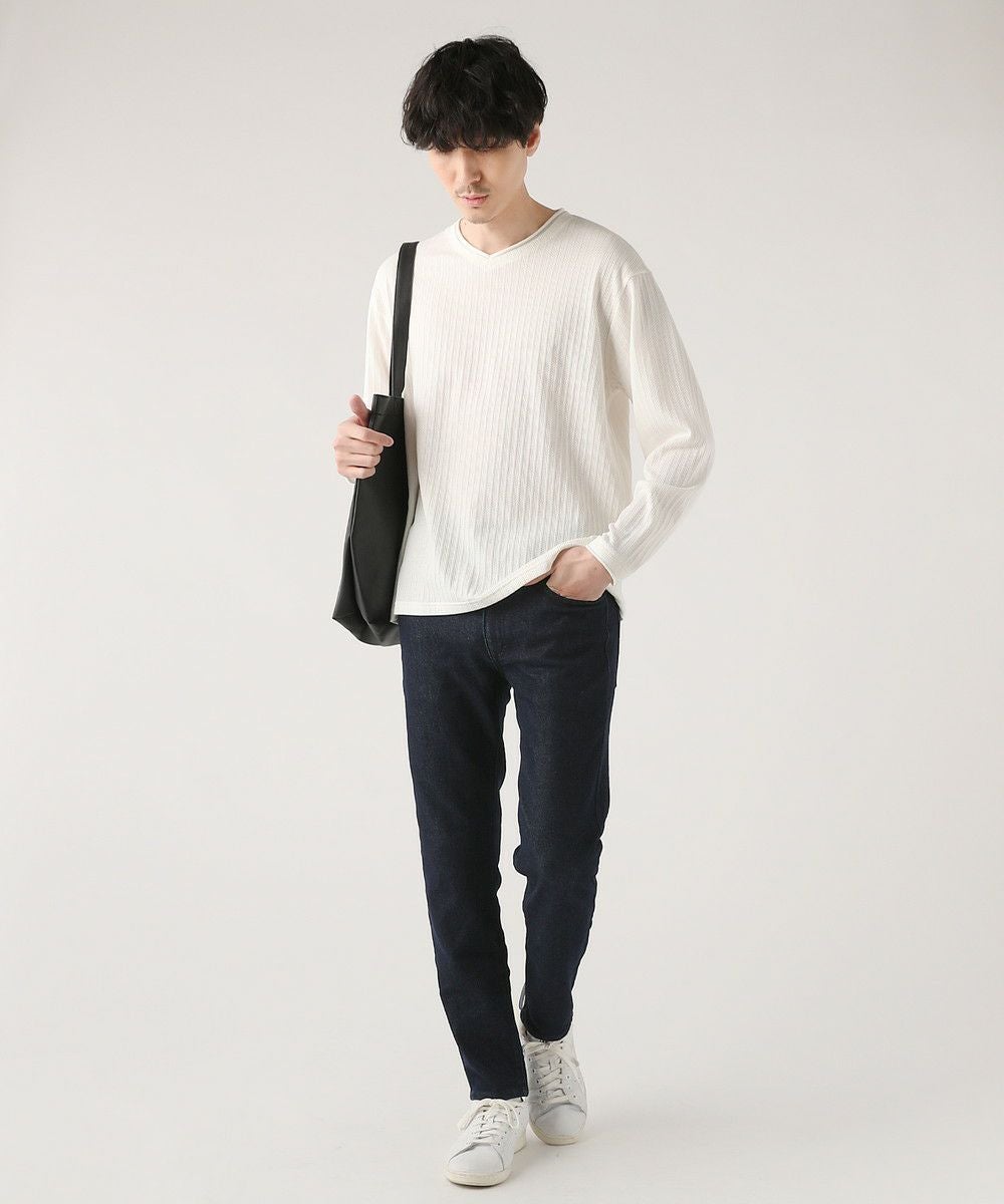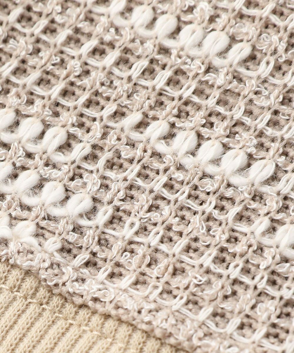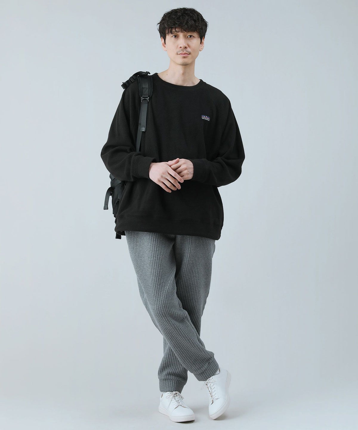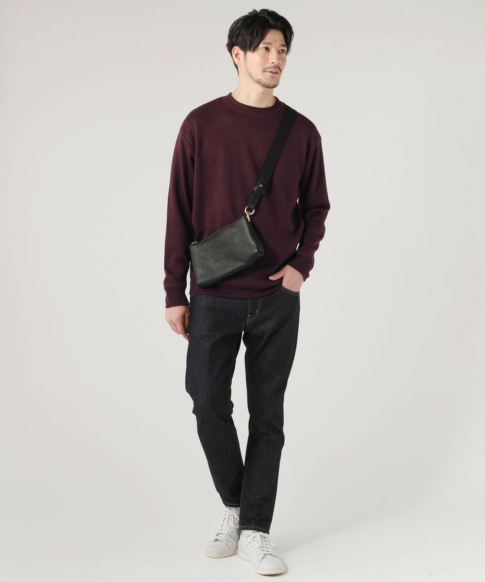 バスケットニットフェイクレイヤードクルーネック長袖カットソー