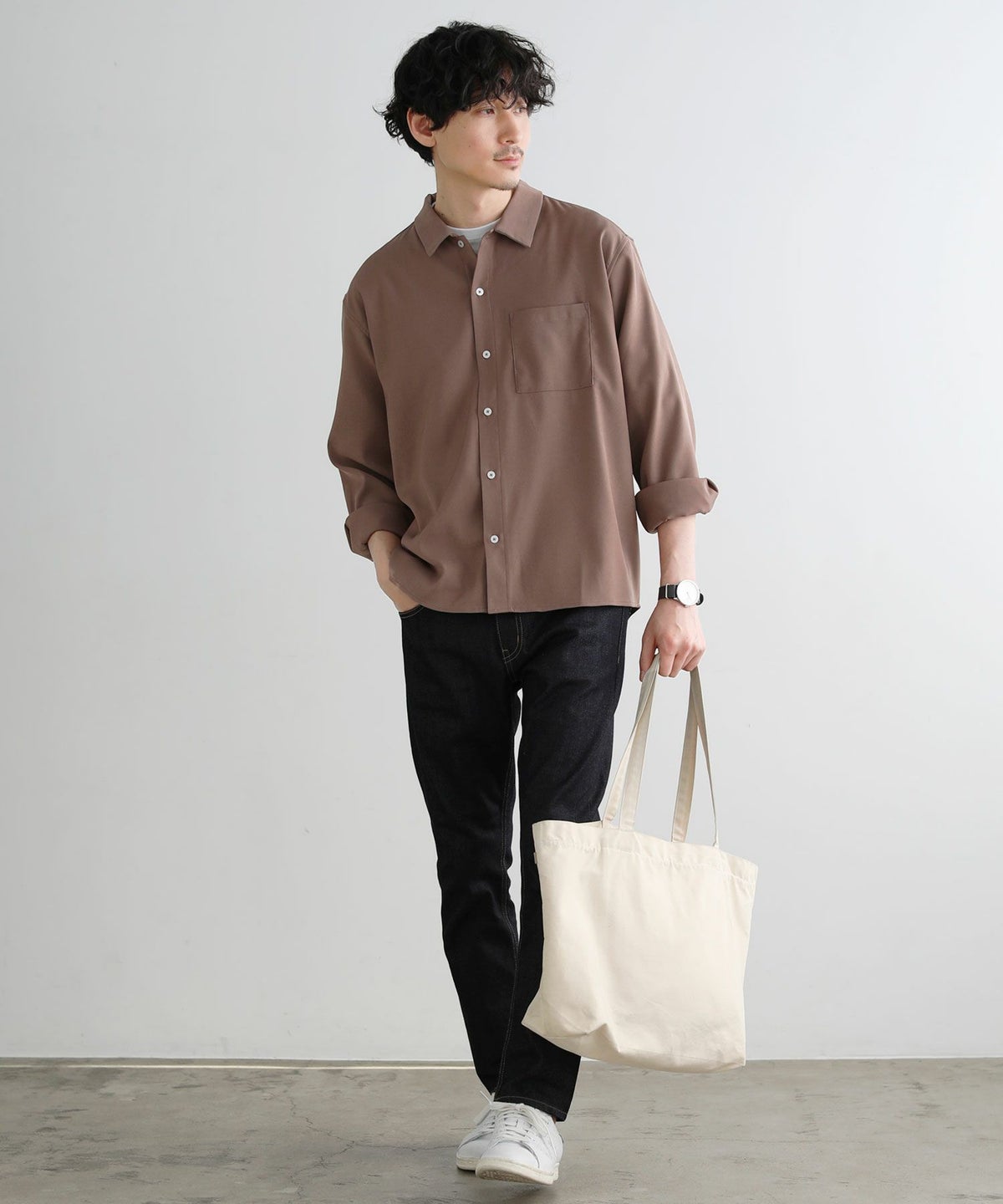 日本製TECHキャンバスワイドレギュラー長袖シャツ