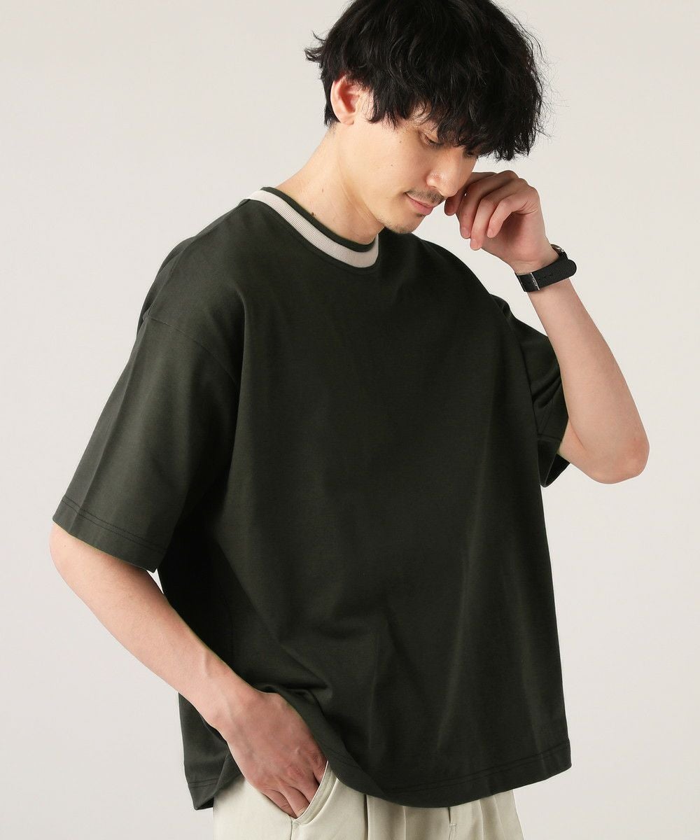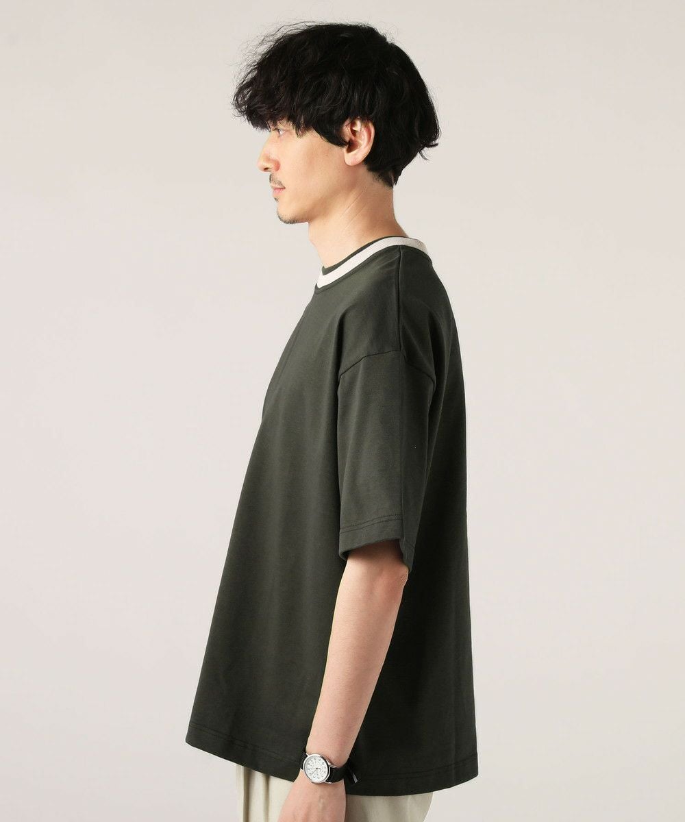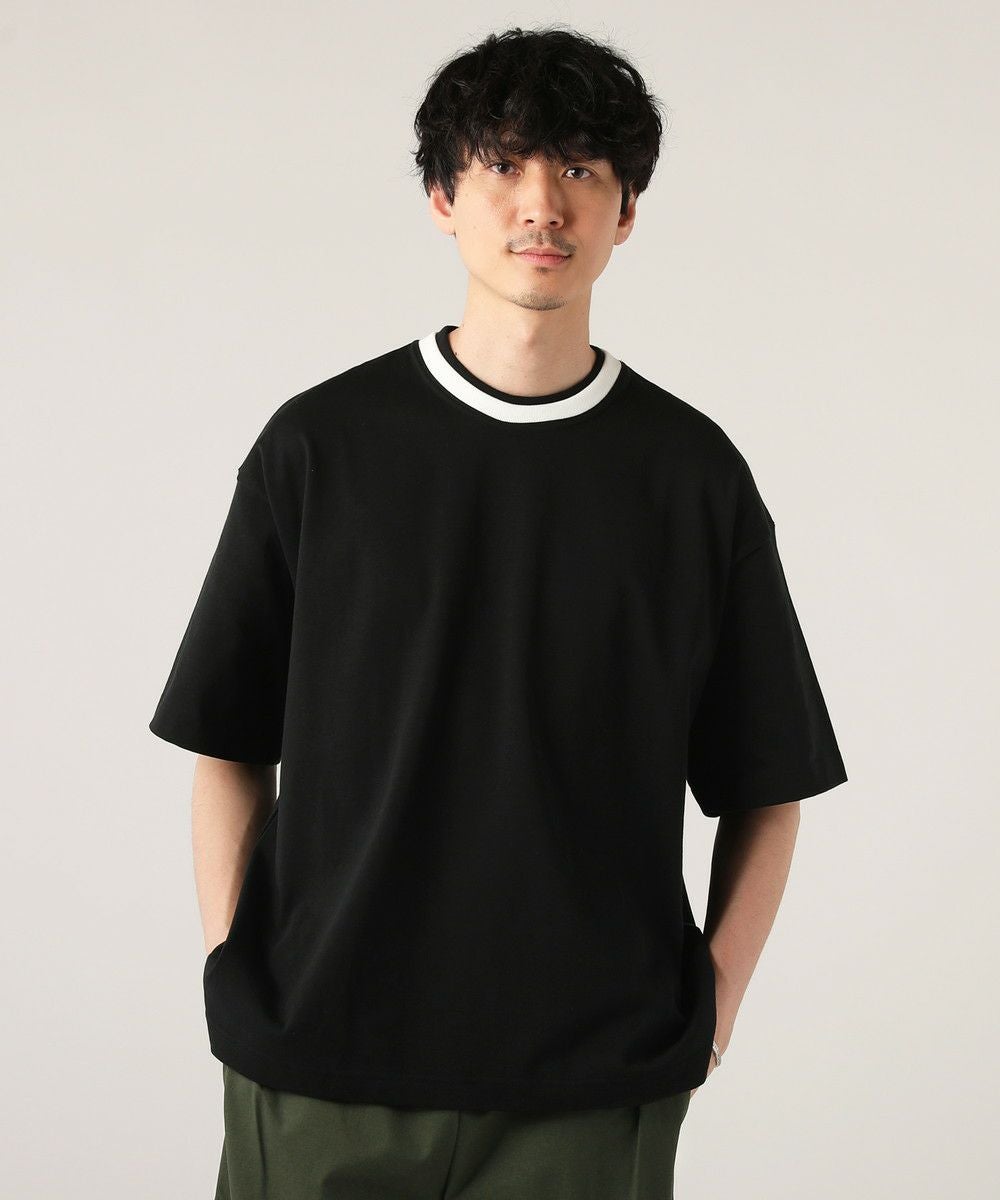 日本製ヘビーウェイト プレーティング天竺 ( 11オンス) クルー ツートーンネック ハーフスリーブ Tシャツ