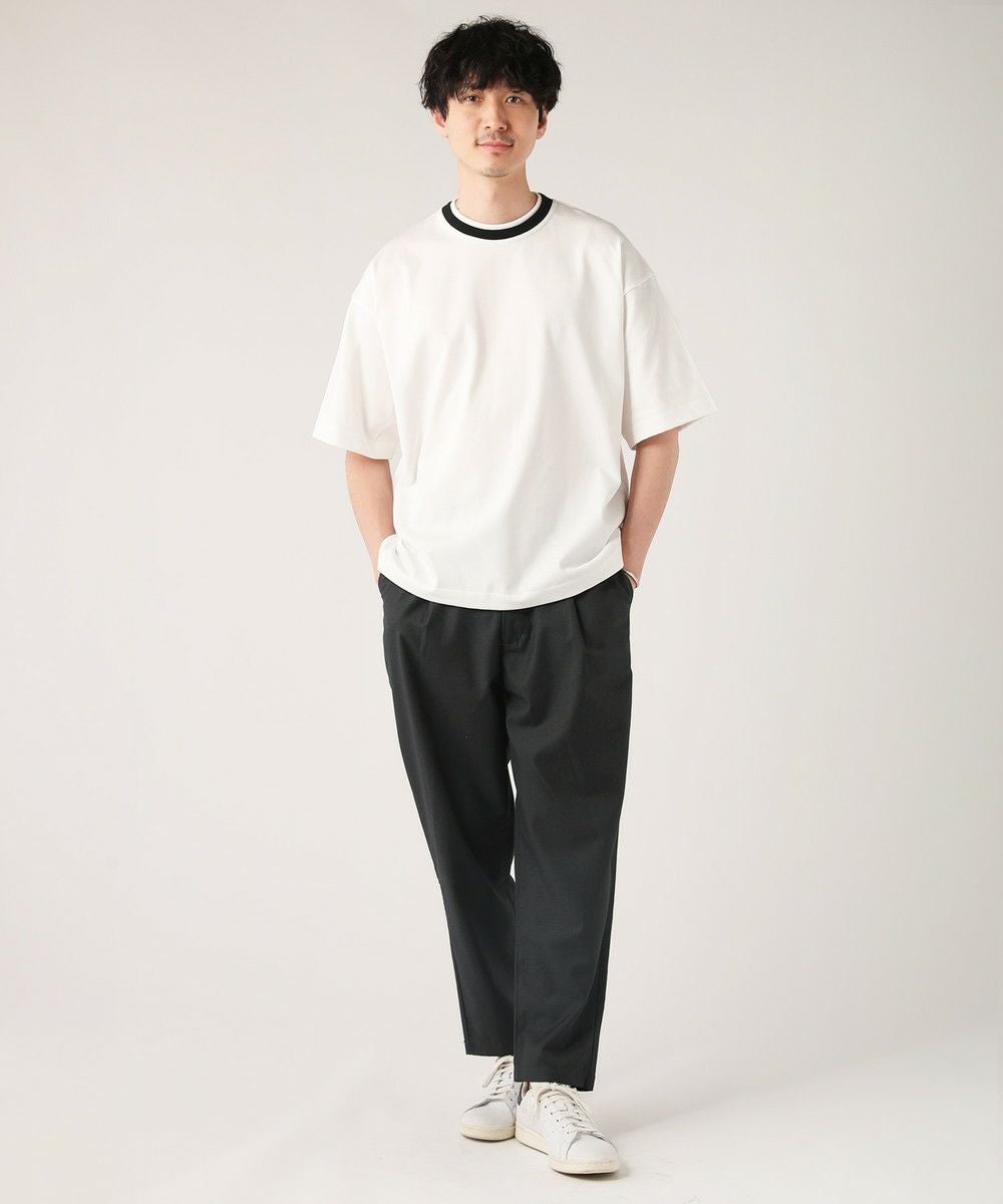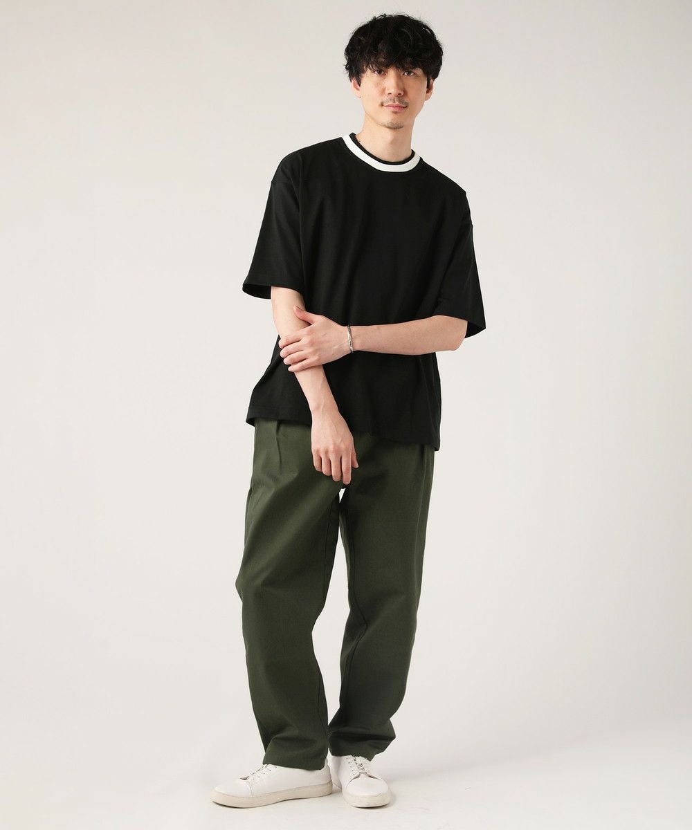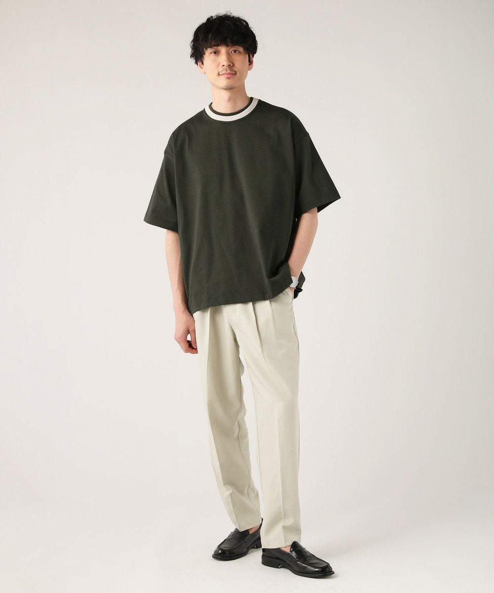 日本製ヘビーウェイト プレーティング天竺 ( 11オンス) クルー ツートーンネック ハーフスリーブ Tシャツ