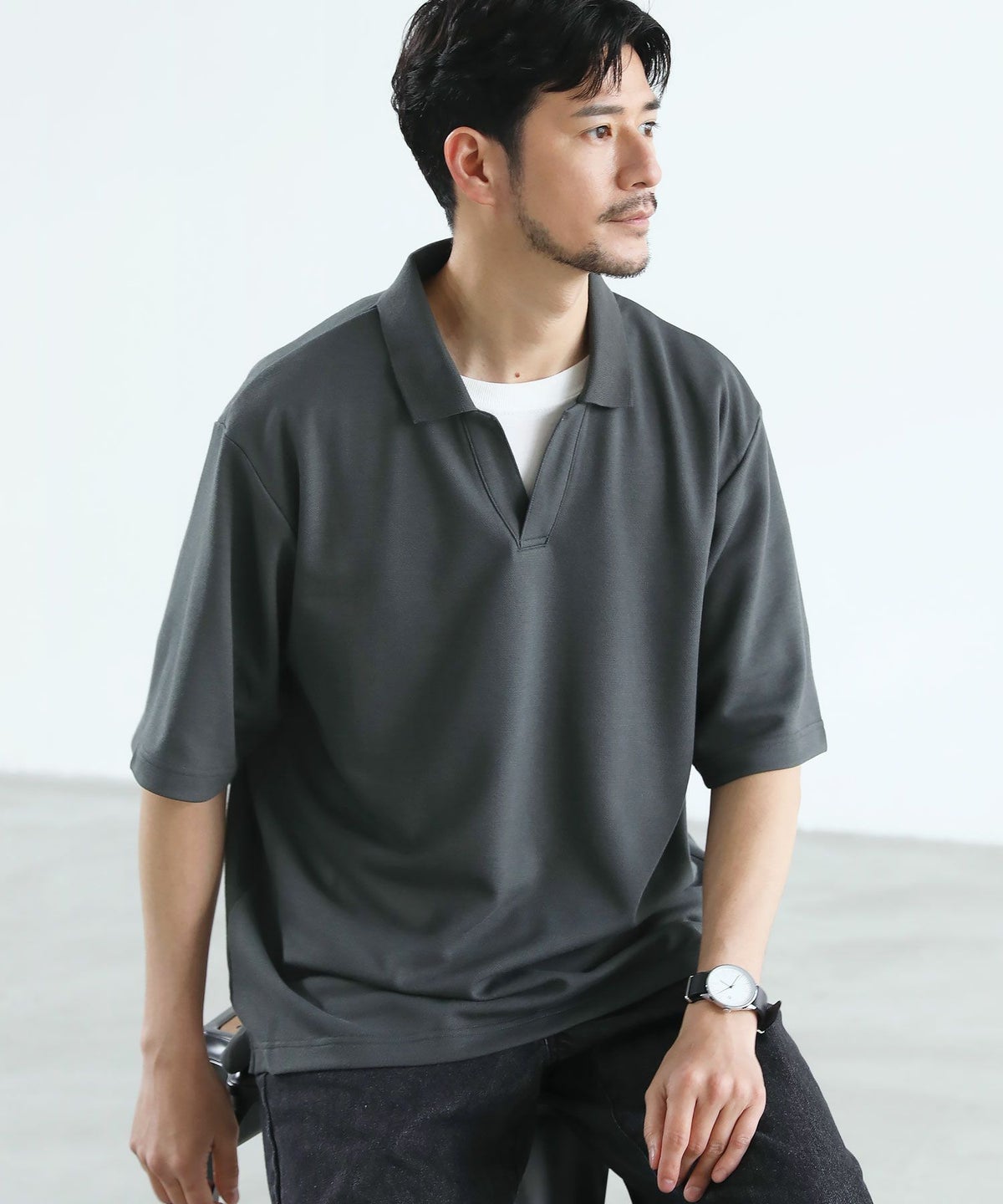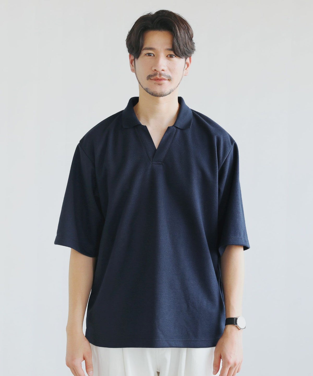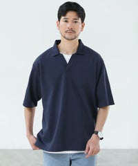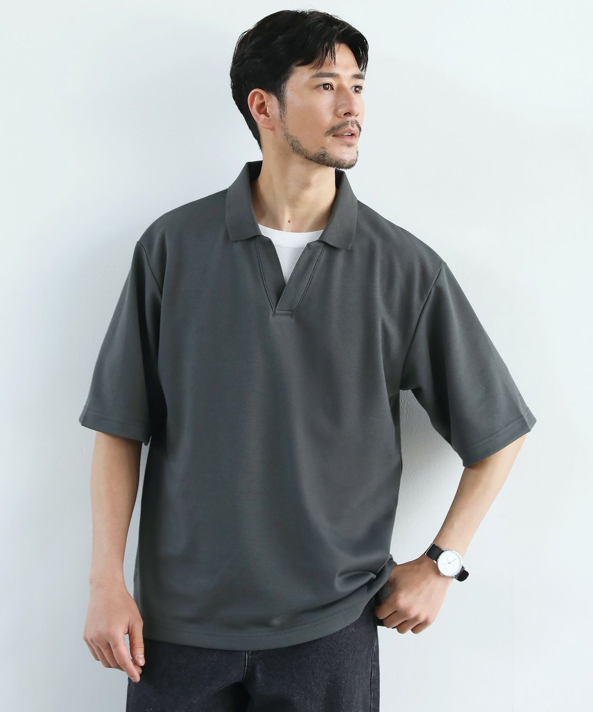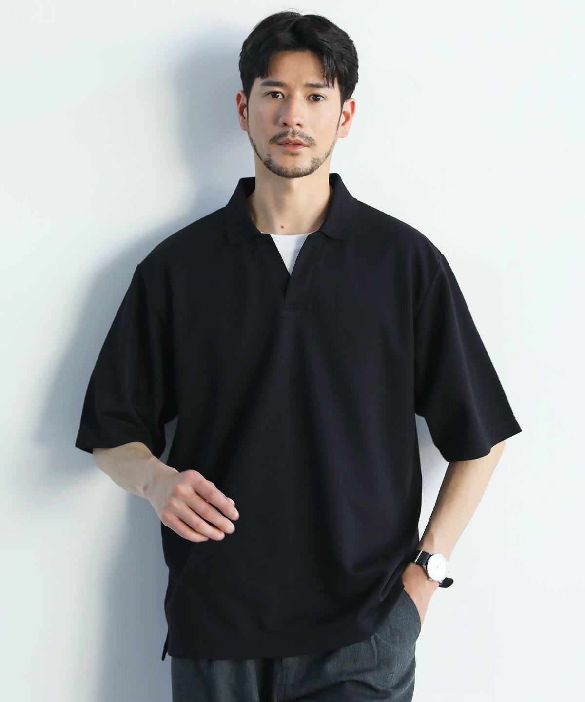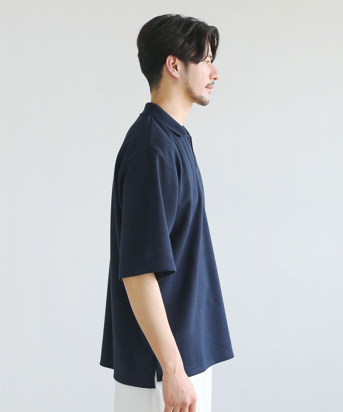 抗菌防臭&接触冷感ルーズシルエットダブルフェイス鹿の子半袖スキッパ―ポロシャツ