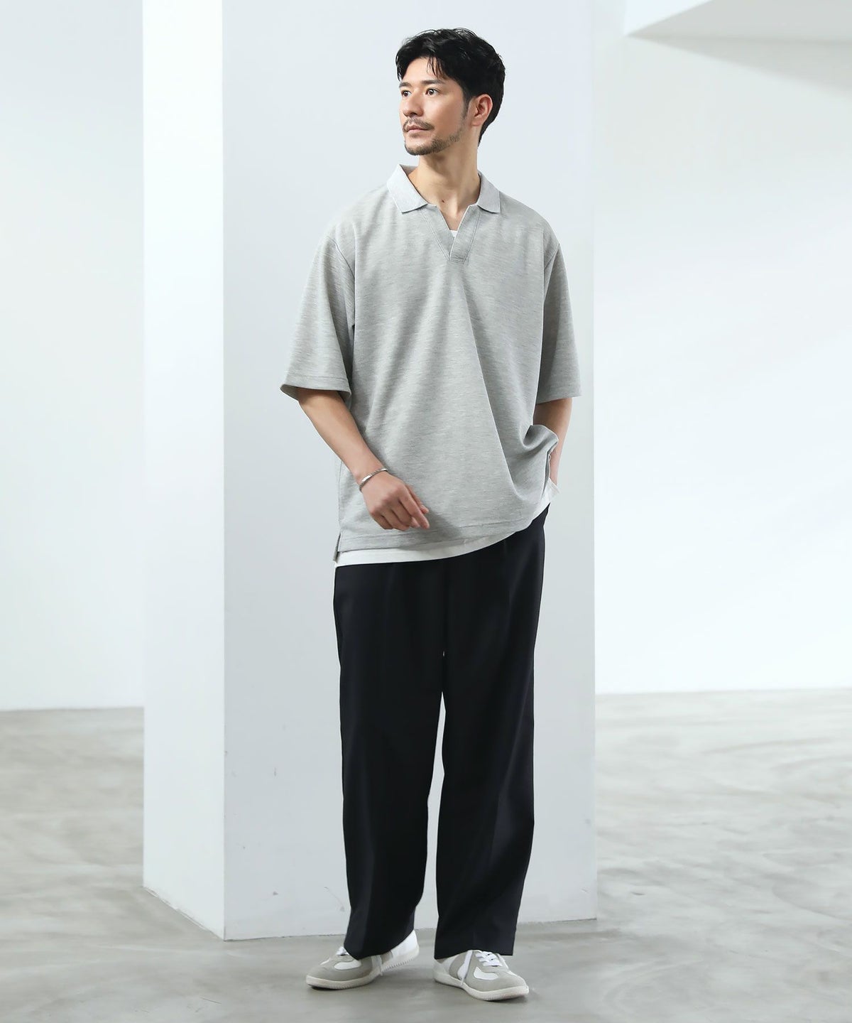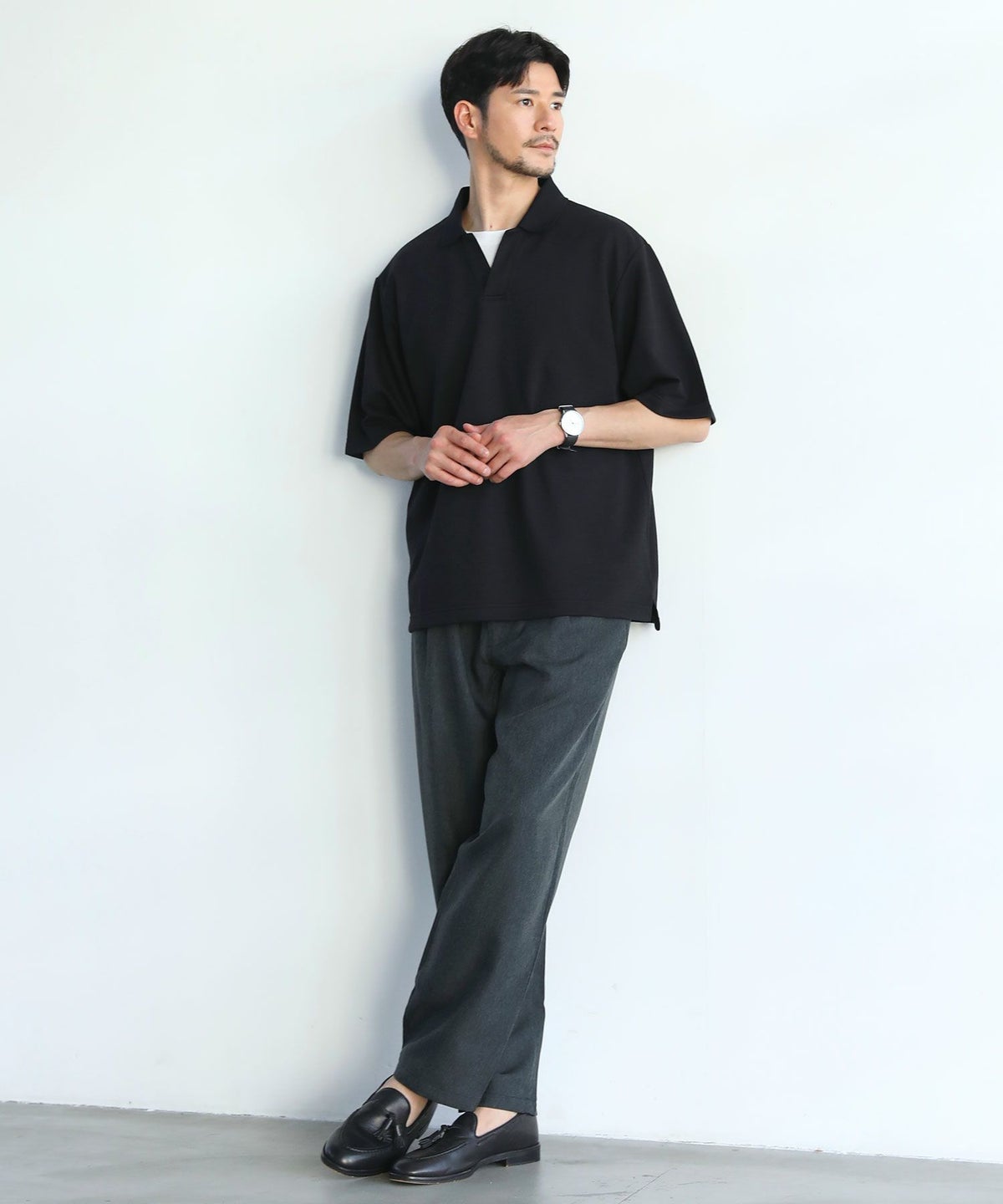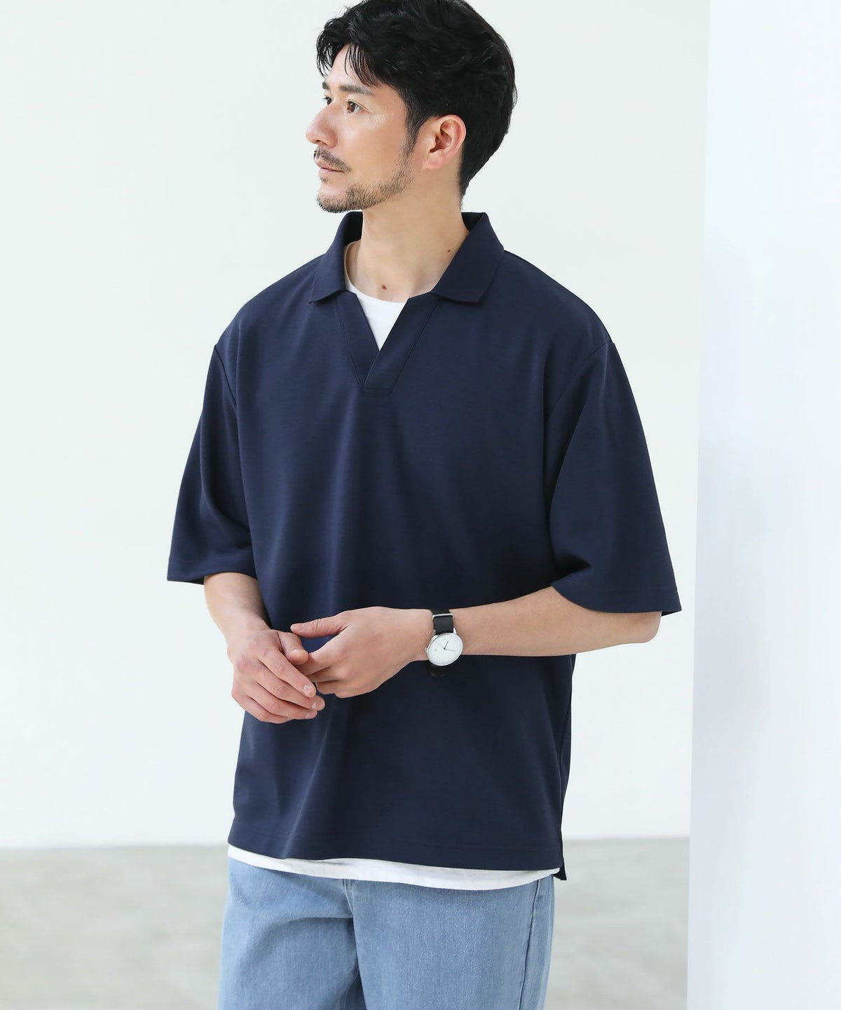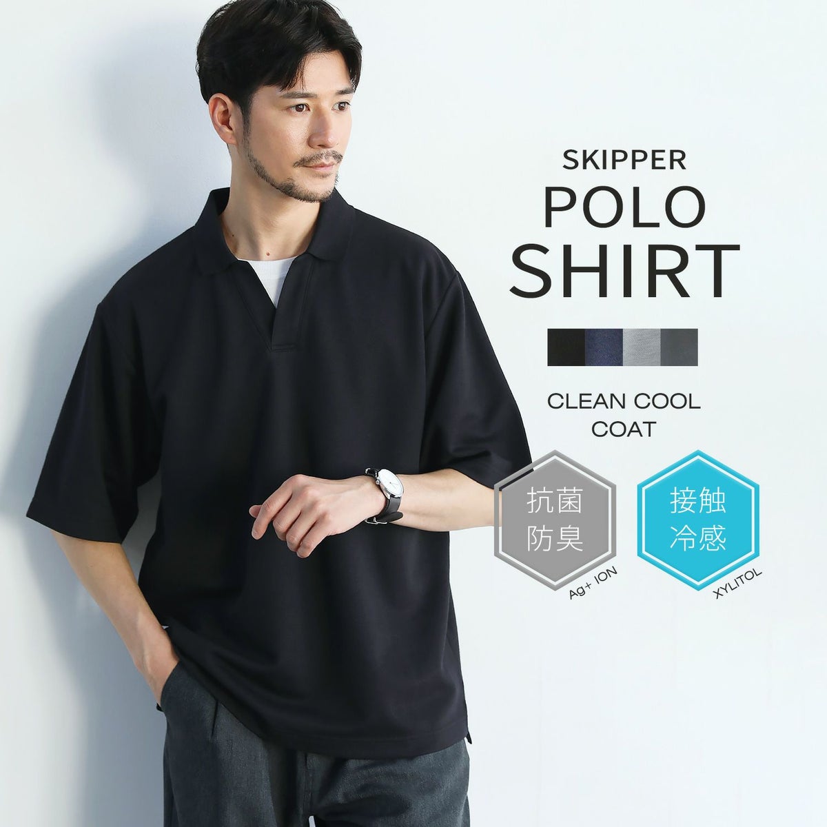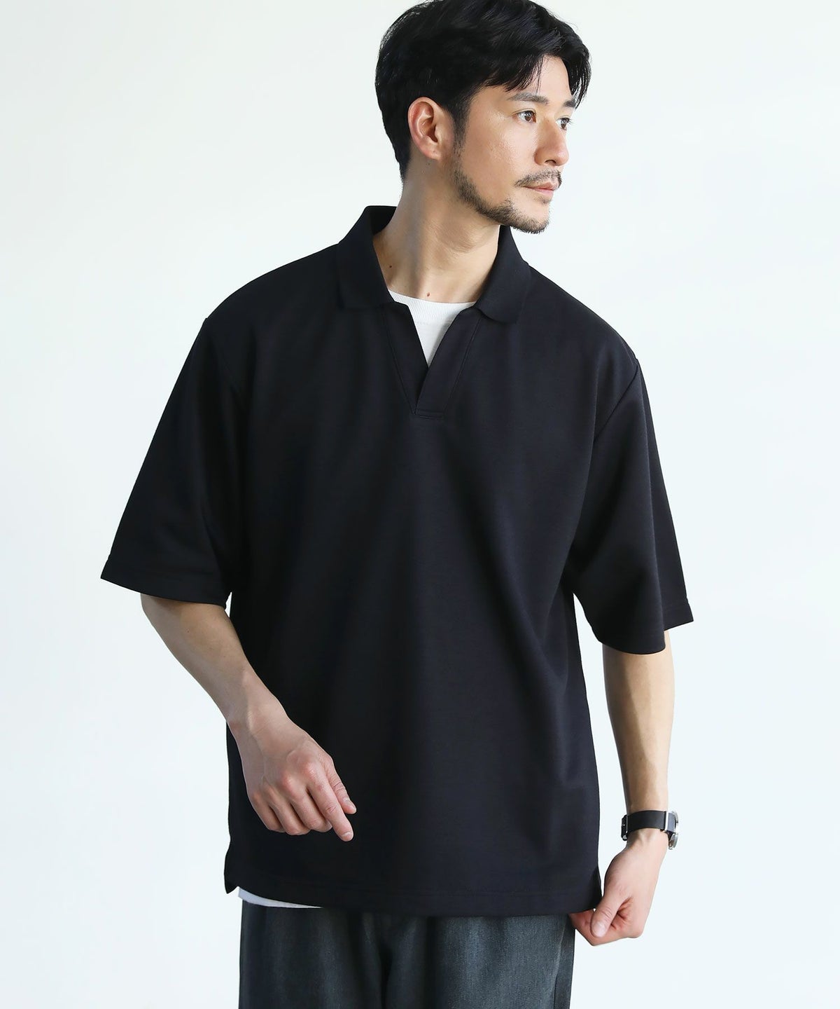 抗菌防臭&接触冷感ルーズシルエットダブルフェイス鹿の子半袖スキッパ―ポロシャツ
