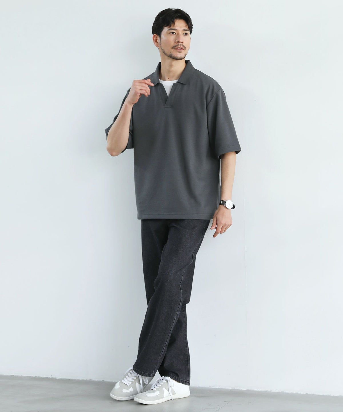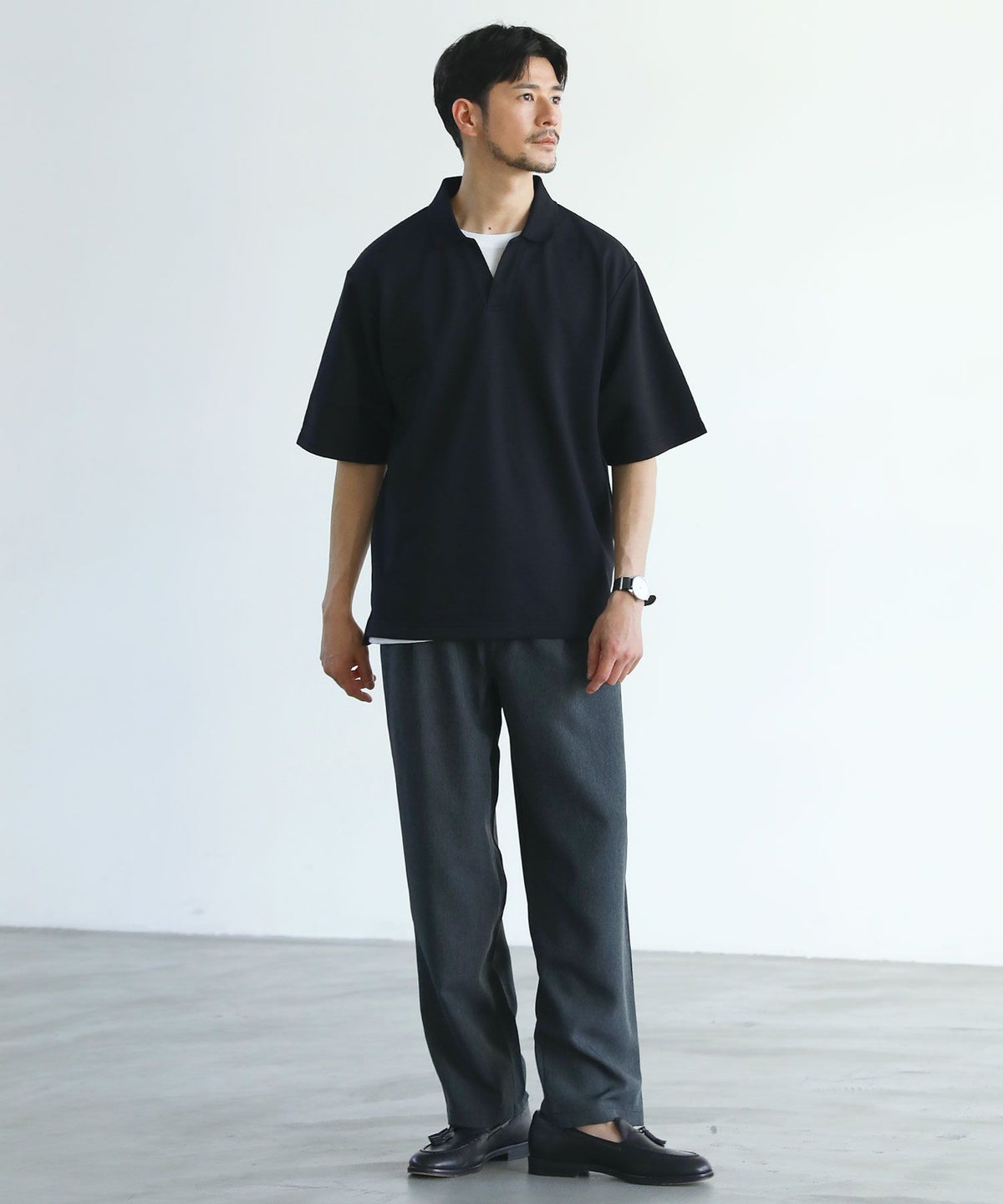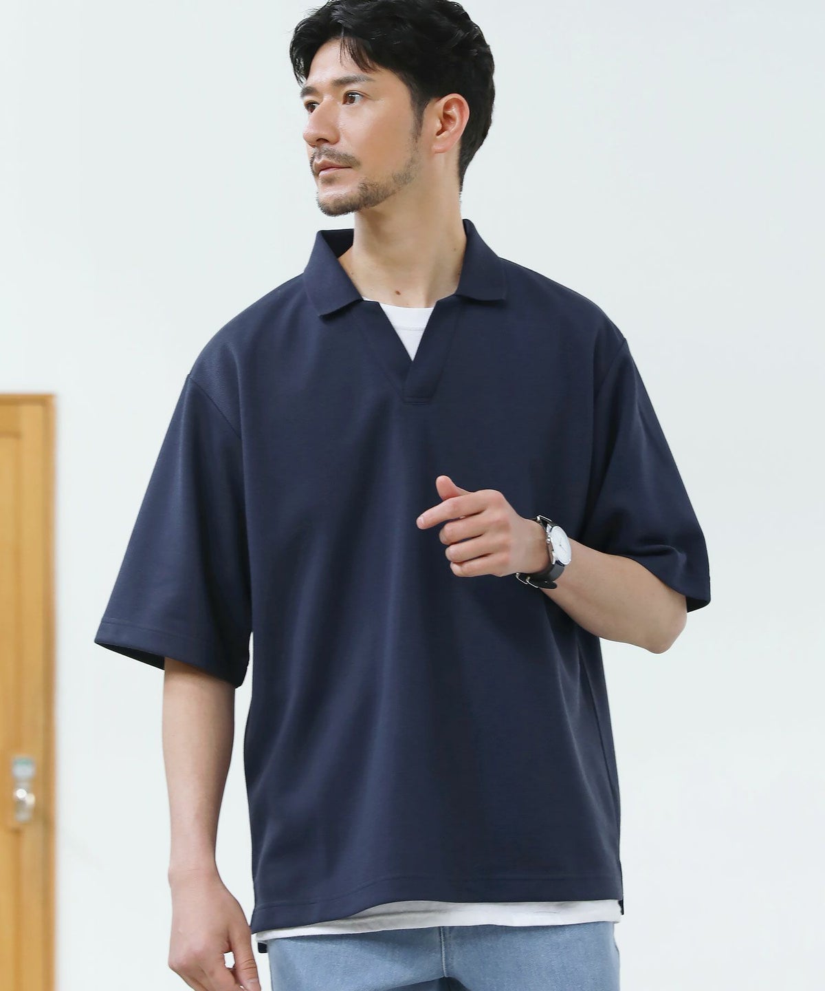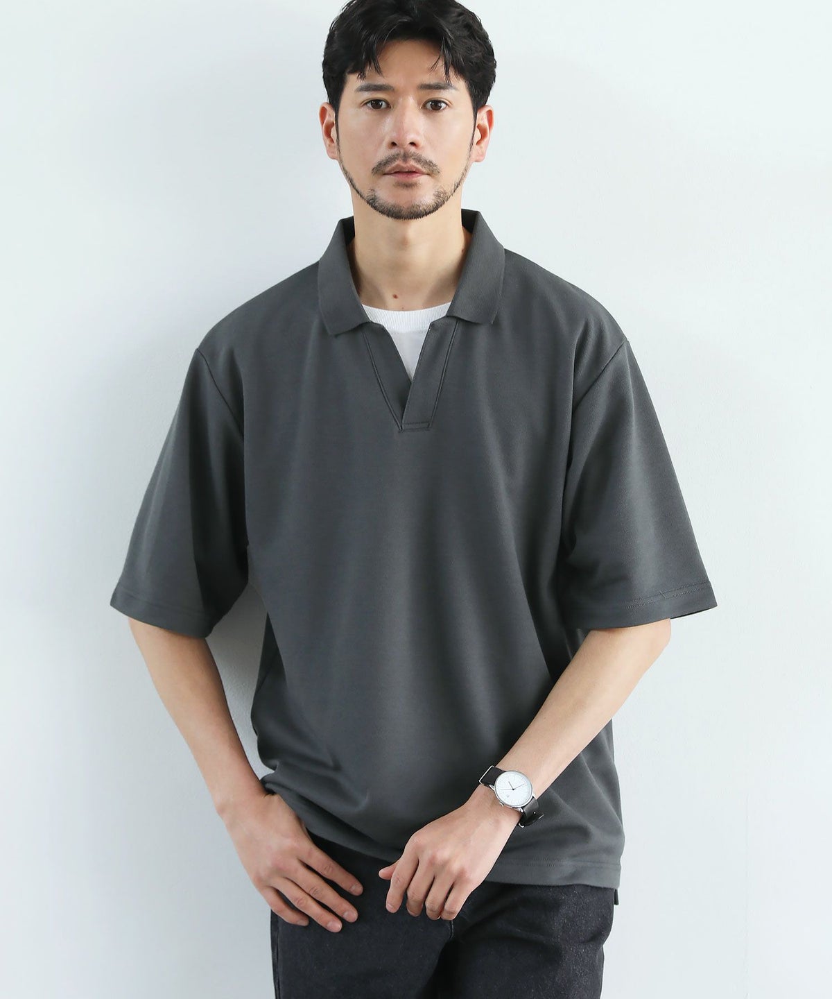 抗菌防臭&接触冷感ルーズシルエットダブルフェイス鹿の子半袖スキッパ―ポロシャツ
