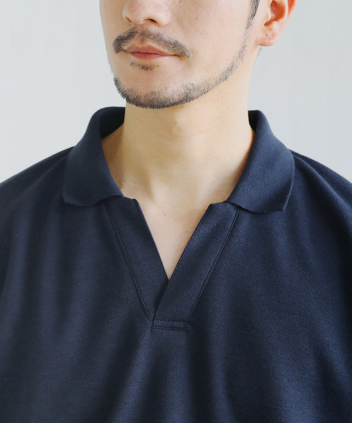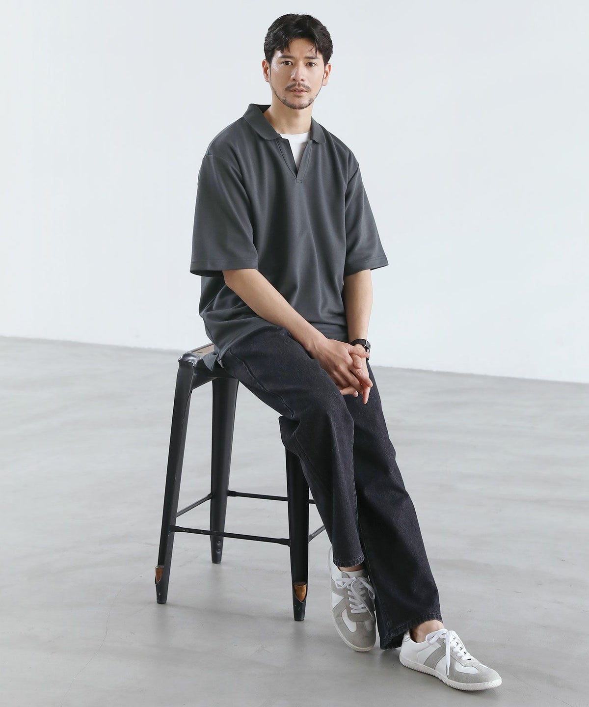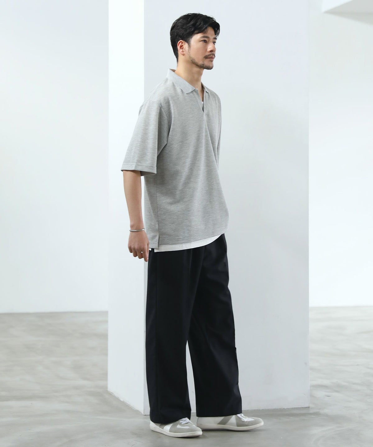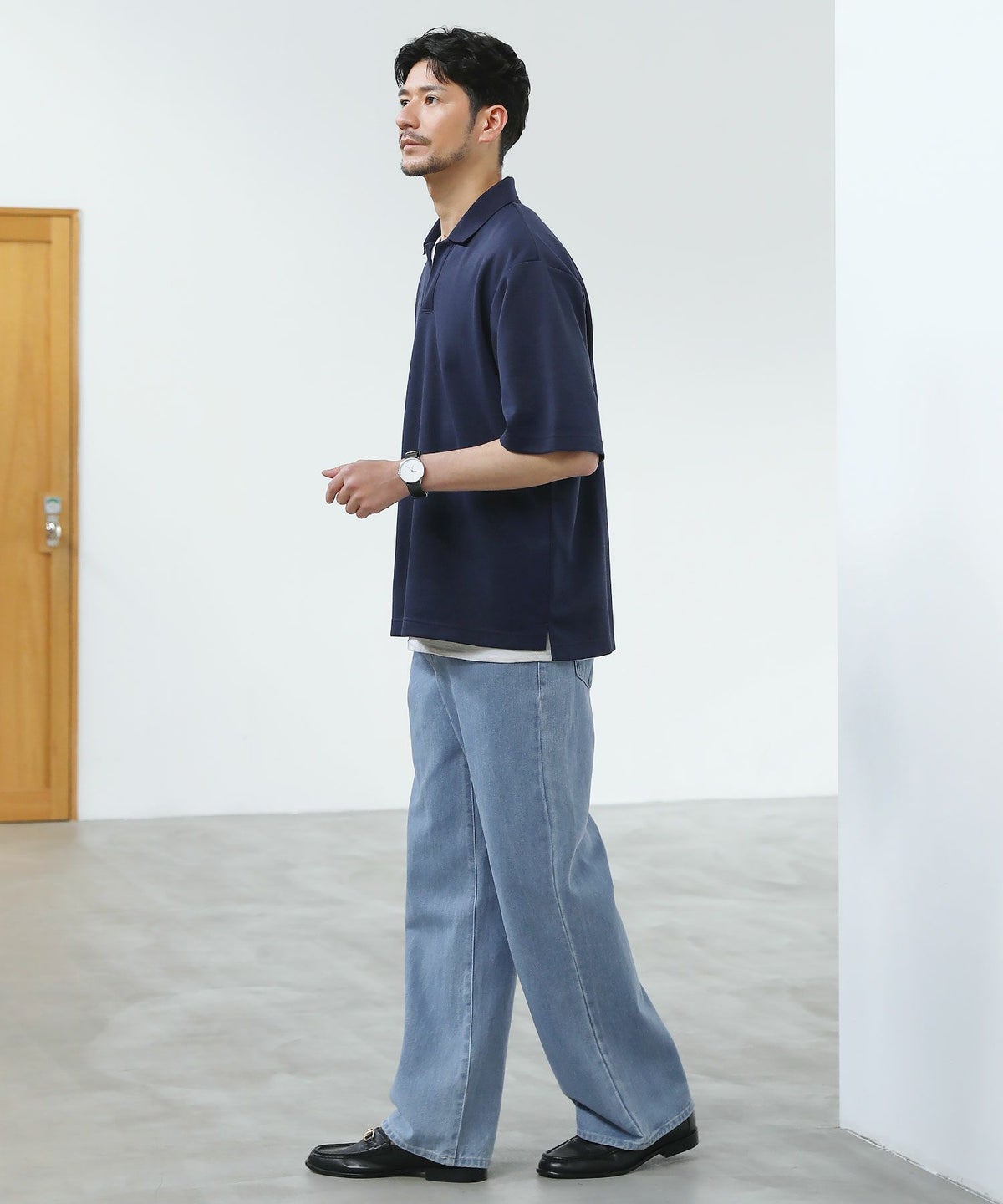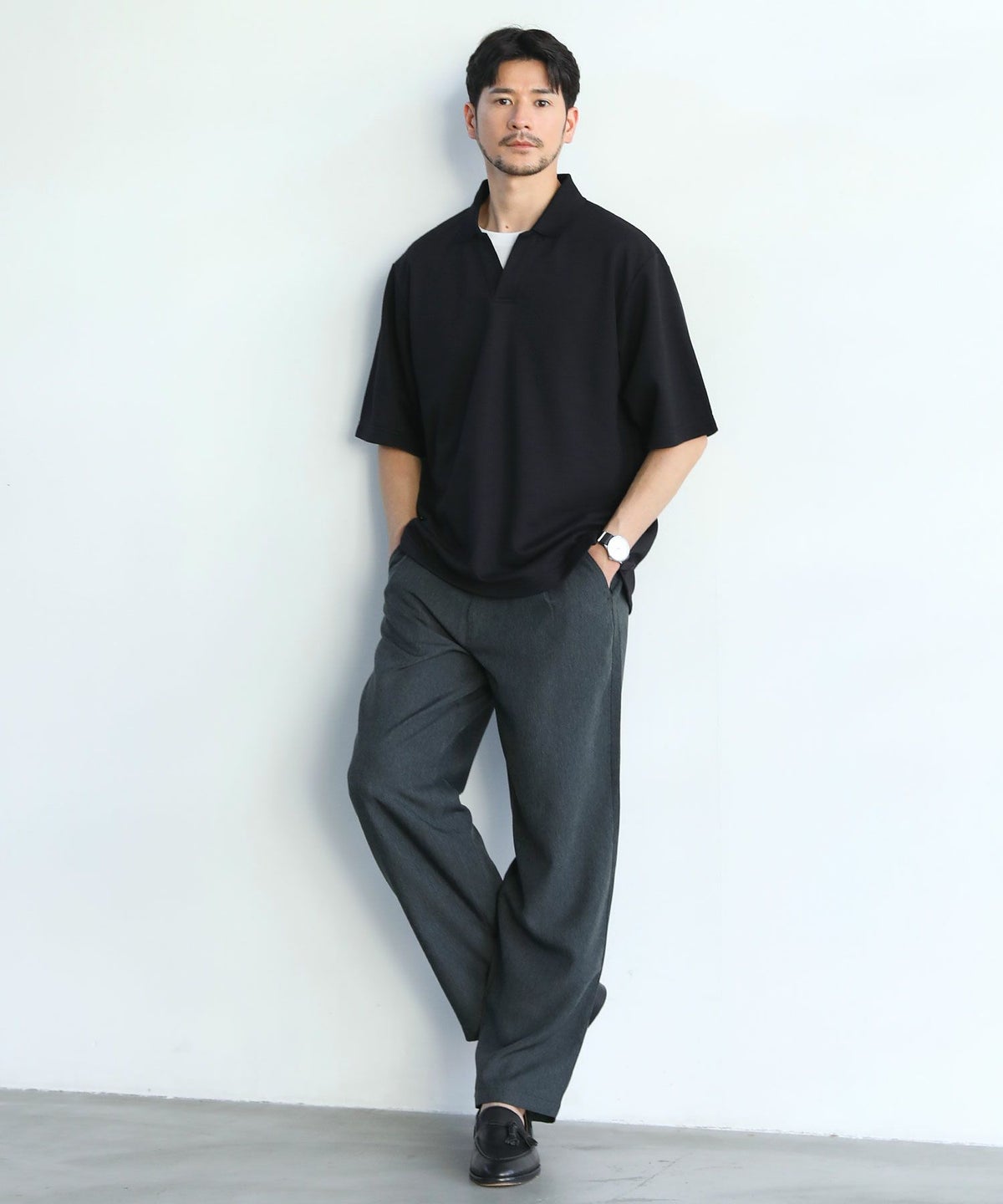 抗菌防臭&接触冷感ルーズシルエットダブルフェイス鹿の子半袖スキッパ―ポロシャツ