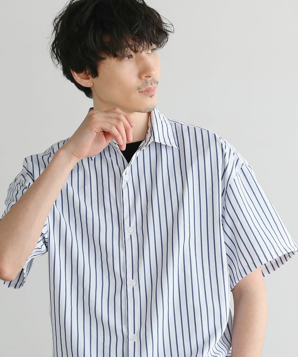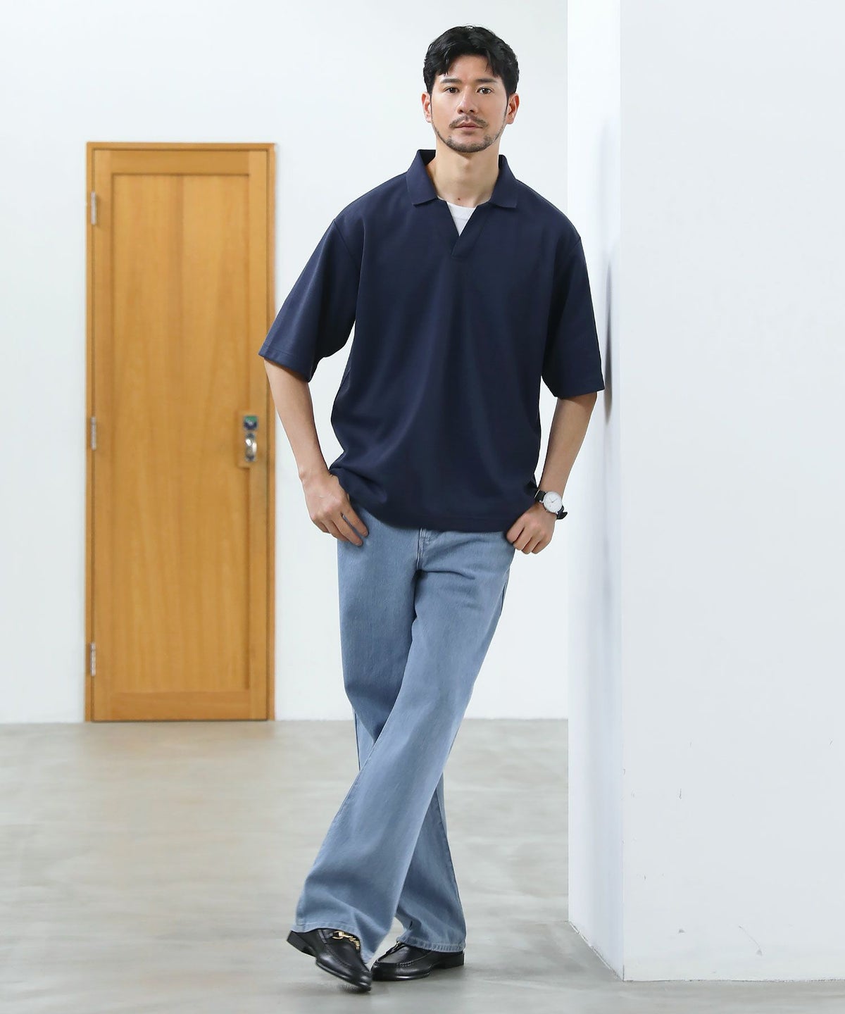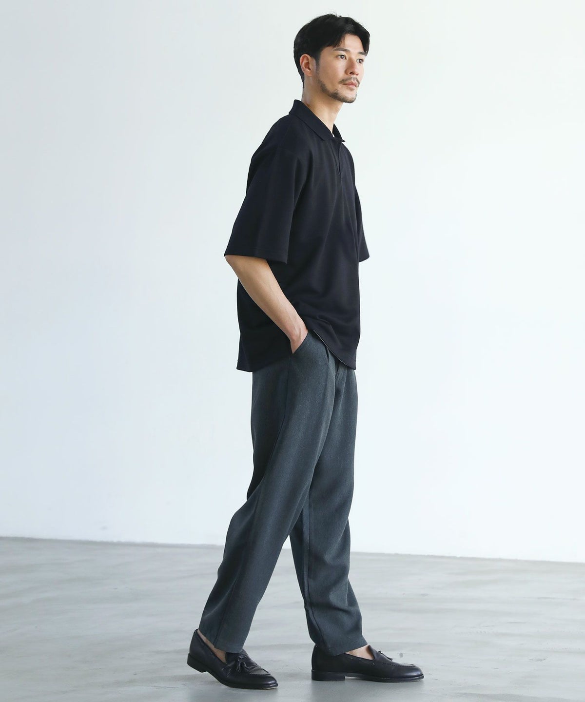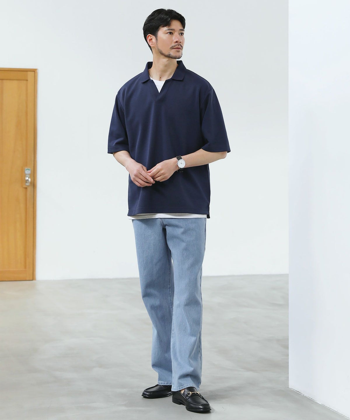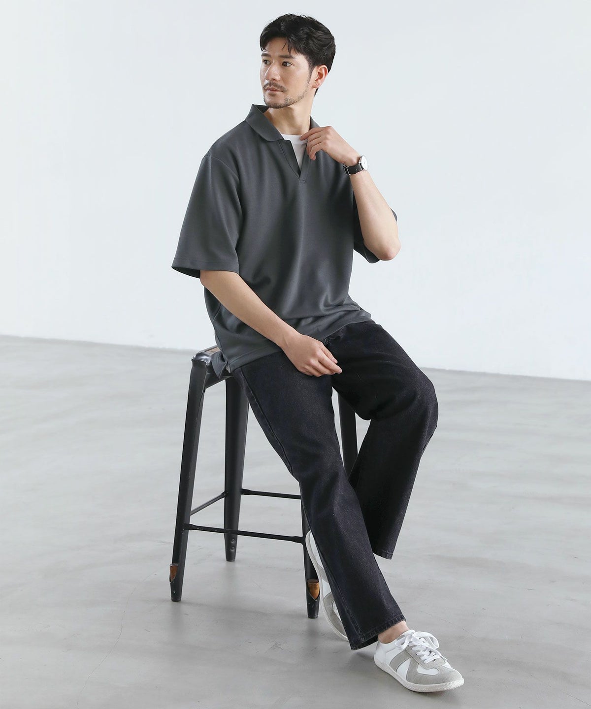 抗菌防臭&接触冷感ルーズシルエットダブルフェイス鹿の子半袖スキッパ―ポロシャツ