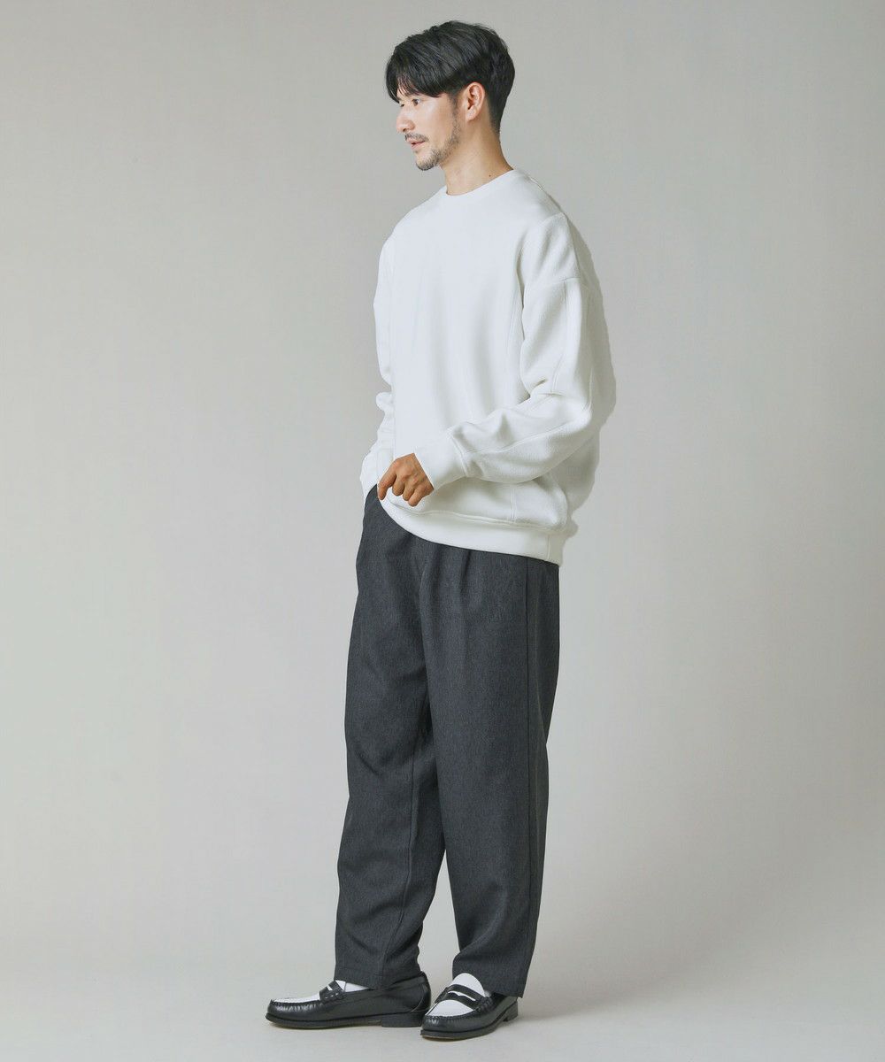 他の画像を見る Upscape Audience 日本製LANATEC(ラナテック)LEI(レイ)ポリエステルウールライクカルゼ2タック イージー テーパードパンツ 通常販売価格 ¥ 14,300 のところ ¥ 8,580 税込 カートに入れる お気に入りに登録する