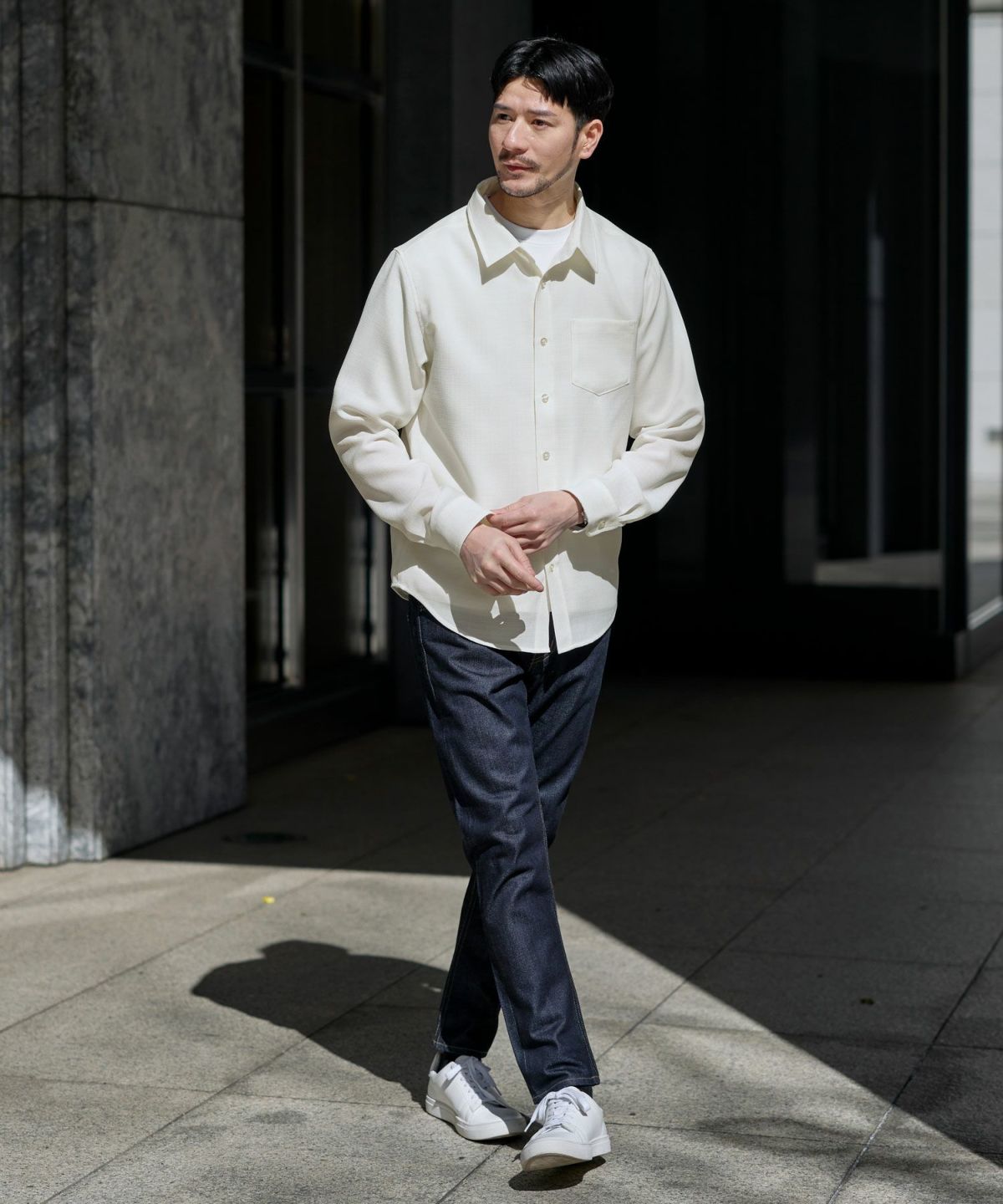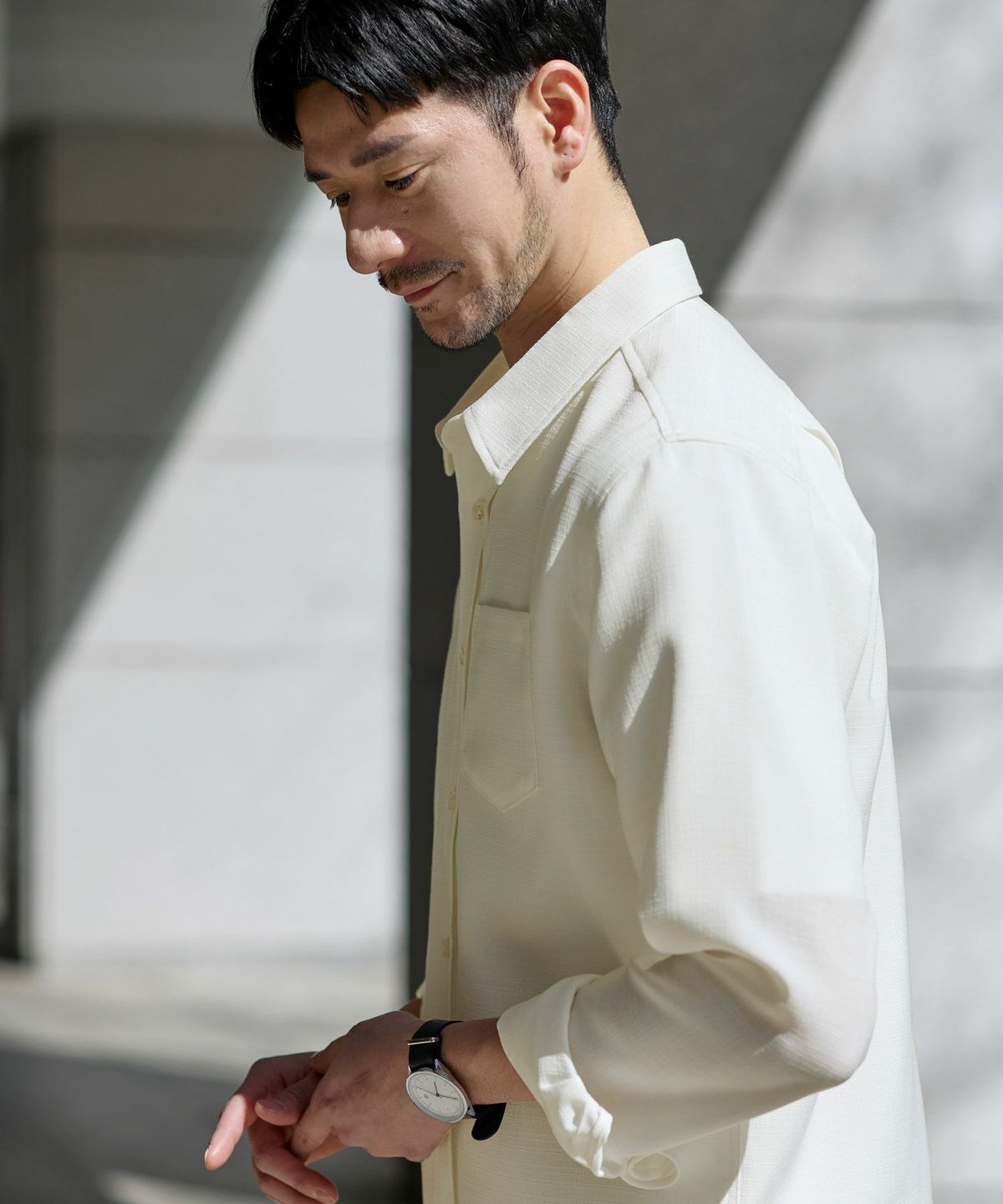 吸水速乾・通気性だけでなく、イージーケア性にも優れた生地となっております。シワになりにくい生地なので、ご家庭の洗濯機でお洗濯をした後もさっとシワを伸ばしてハンギングして乾かすだけで充分キレイに仕上がります。出がけにぱっとノーアイロンで羽織れるのも嬉しいポイント。速乾性に長けているためお洗濯後の乾きも早く、汗ばむ季節のデイリーユースにもってこいのシャツです。