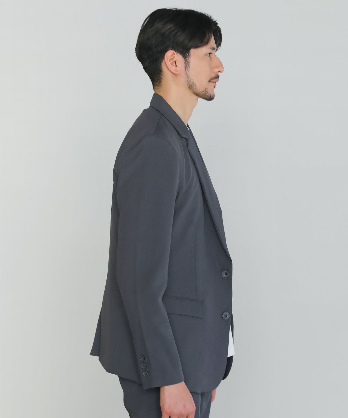 ベーシックなサイジングとディテールでイメージ通りのキレイめスタイルを作り出してくれる一着です。フロントは2ボタンデザイン、裾後ろはセンターベントを入れております。肩の形をキレイに見せるため、わずかに肩パッドも入れました。オフィスカジュアルな着こなしにもご利用いただけるオンオフ兼用のテーラードジャケットです。