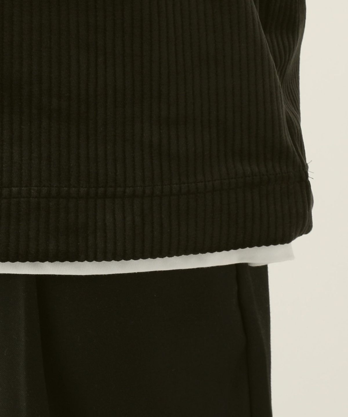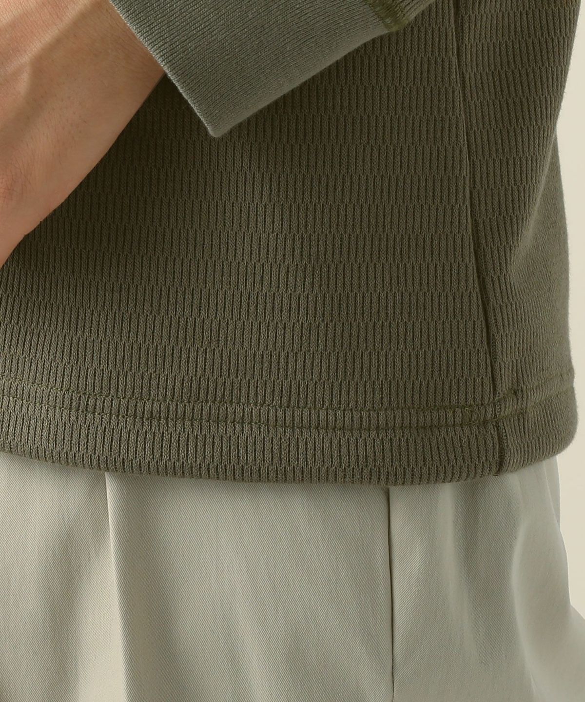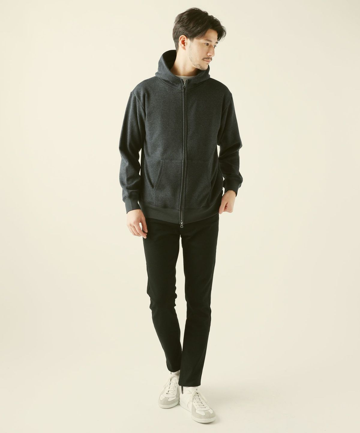 圧倒的な暖かさで注目される『ボンバーヒート生地』。裏地に特殊な起毛加工を施してベロアライクのタッチに仕上げた編み地です。柔らかいポリエステル糸を何度も起毛することで、チクチク感のない、まるで毛布のような滑らかな毛並みを生み出しております。最高の優しい肌触りと、暖かい着心地。毛布に身体を包まれるような感覚がクセになる、魅惑の生地です。