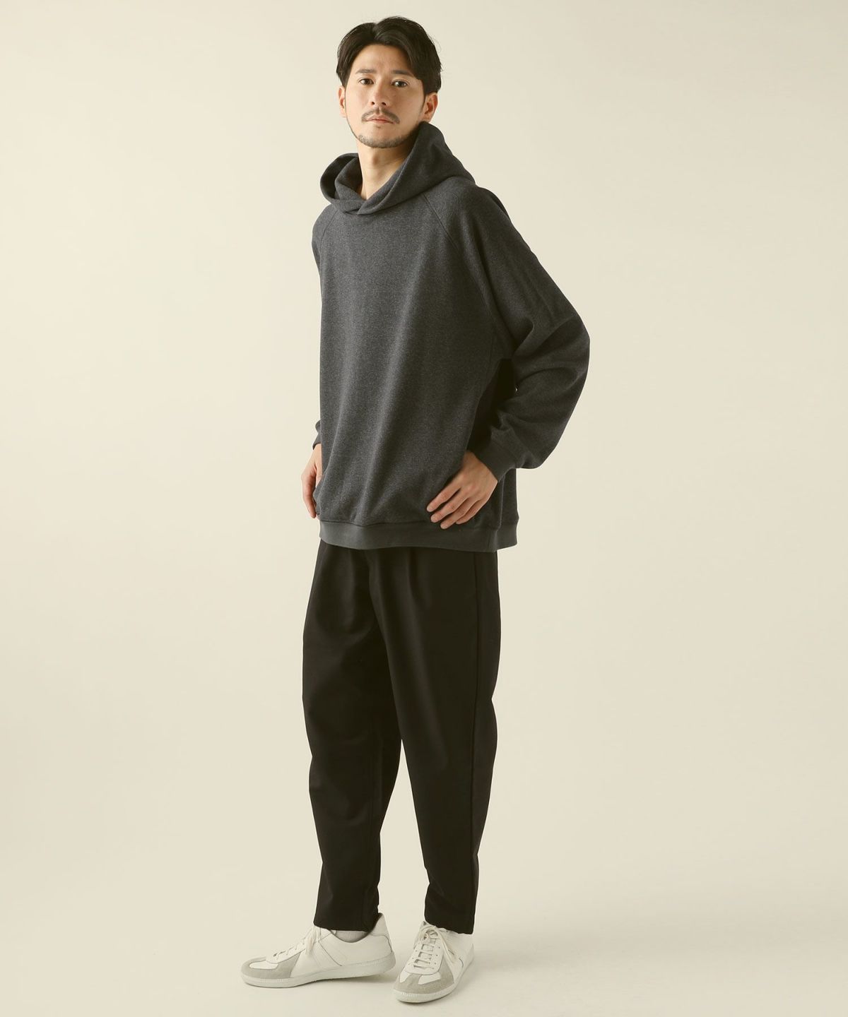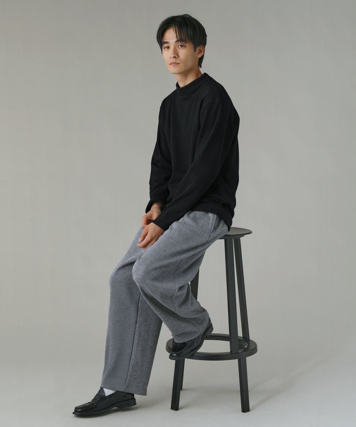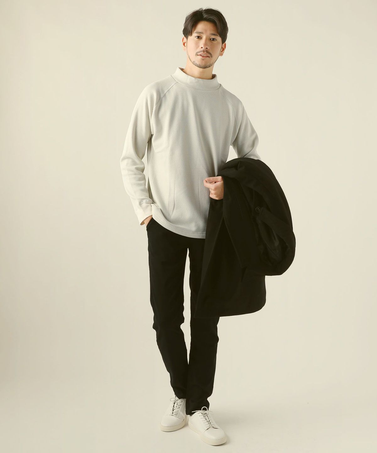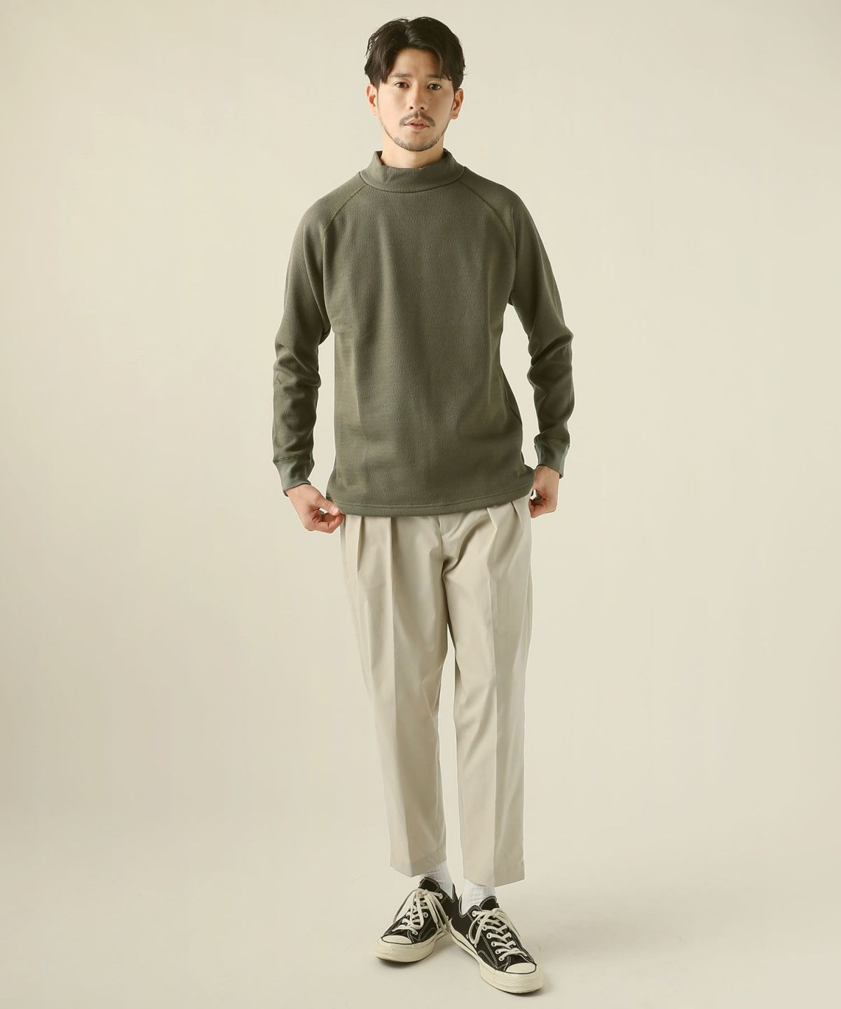 圧倒的な暖かさで注目される『ボンバーヒート生地』。裏地に特殊な起毛加工を施してベロアライクのタッチに仕上げた編み地です。柔らかいポリエステル糸を何度も起毛することで、チクチク感のない、まるで毛布のような滑らかな毛並みを生み出しております。最高の優しい肌触りと、暖かい着心地。毛布に身体を包まれるような感覚がクセになる、魅惑の生地です。