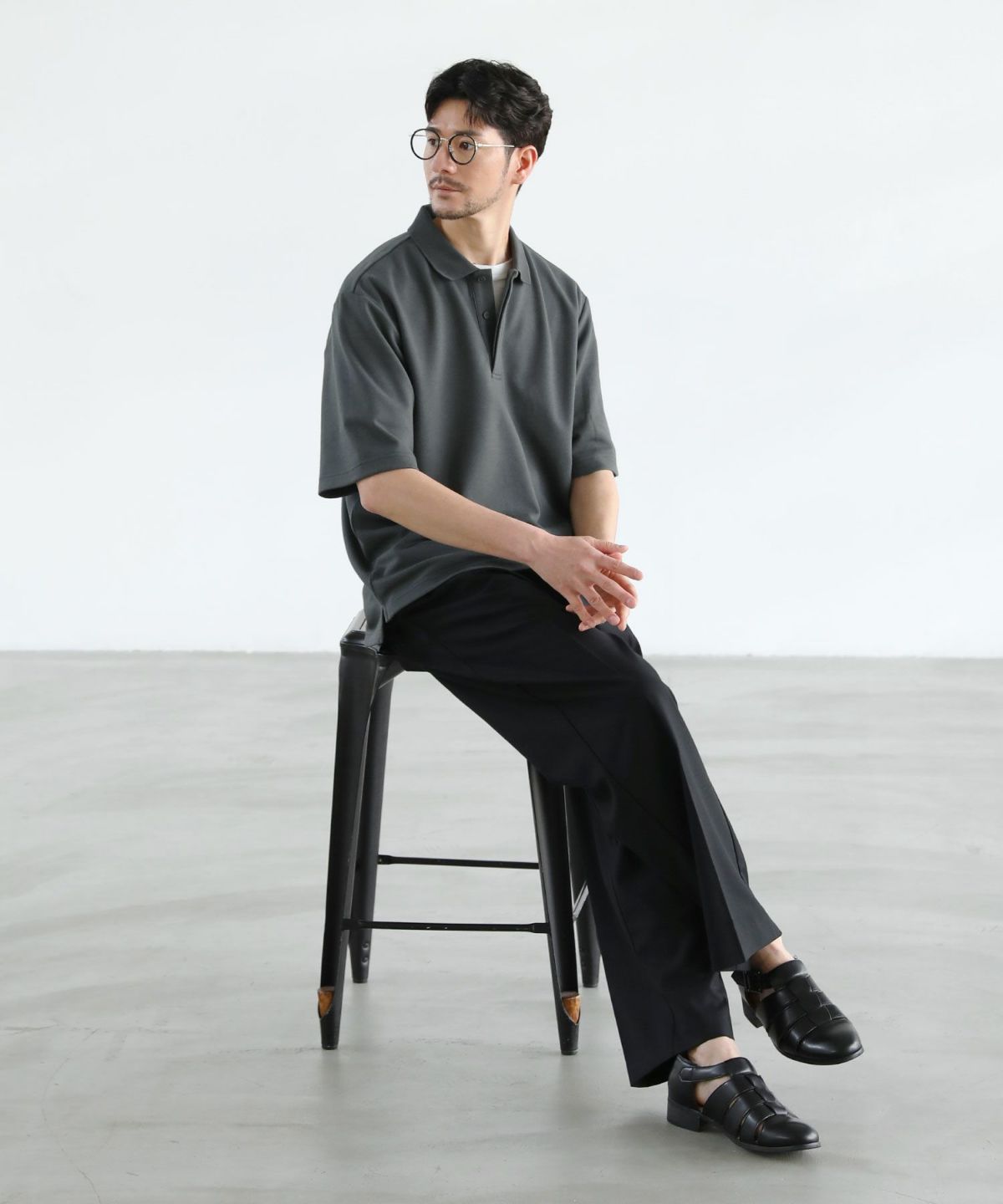 広い腕ぐり、身体のラインを拾わないワイドな身幅でリラックス感のある着心地です。ネック部分はスッキリとしたデザインの比翼仕立てでクリーンな印象に。ボタンの開け閉め具合でキレイめな着こなしからインナーで遊べるカジュアルな着こなしまで対応する一着です。