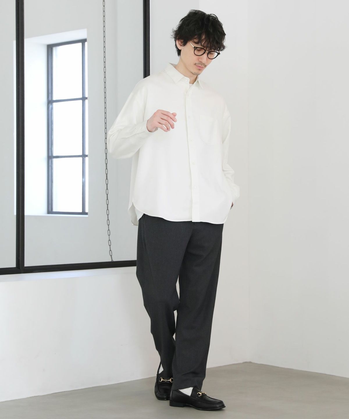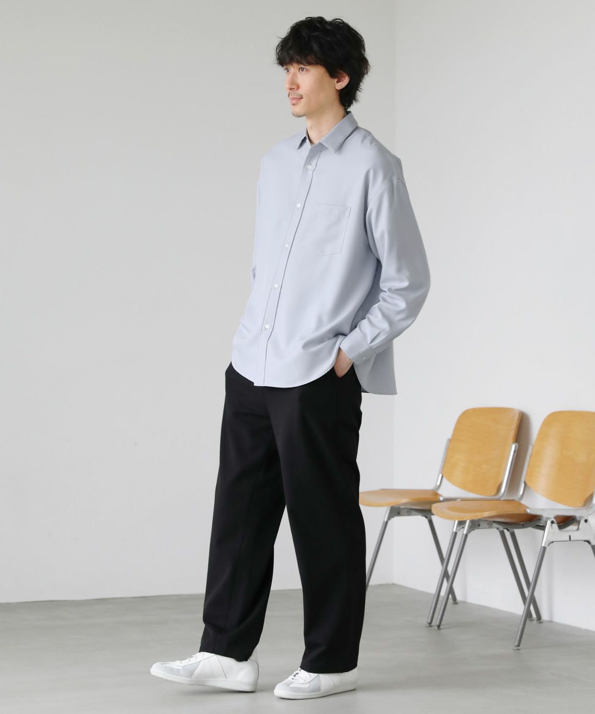 窮屈感がなく、インナーにカットソーを入れてもごわつかない、着心地の良さが考えられたゆったりシルエットに設計しました。だらしない印象にならないよう、あくまで着心地が悪くならない程度のゆとりを持たせ、大人がキレイめに着やすいルーズさにとどめております。キレイめな印象を損なうことなく着心地の良さも実現させる、程よいルーズシルエットです。