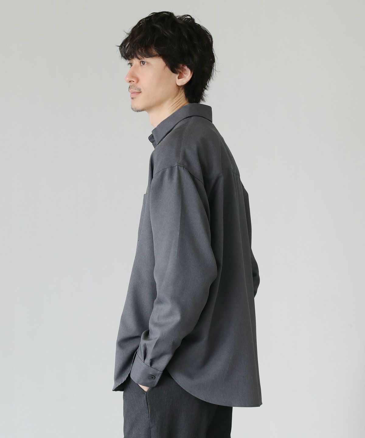 出がけにさっと羽織りやすい軽量さ。ちょっとそこまでの外出時に羽織りとして使うのにもちょうどよいシャツです。風に揺れ動くほどの軽さに生地の麻調の風合いが相まって、爽やかさも抜群。春夏シーズンに活躍すること間違いなしの一着に仕上げました。