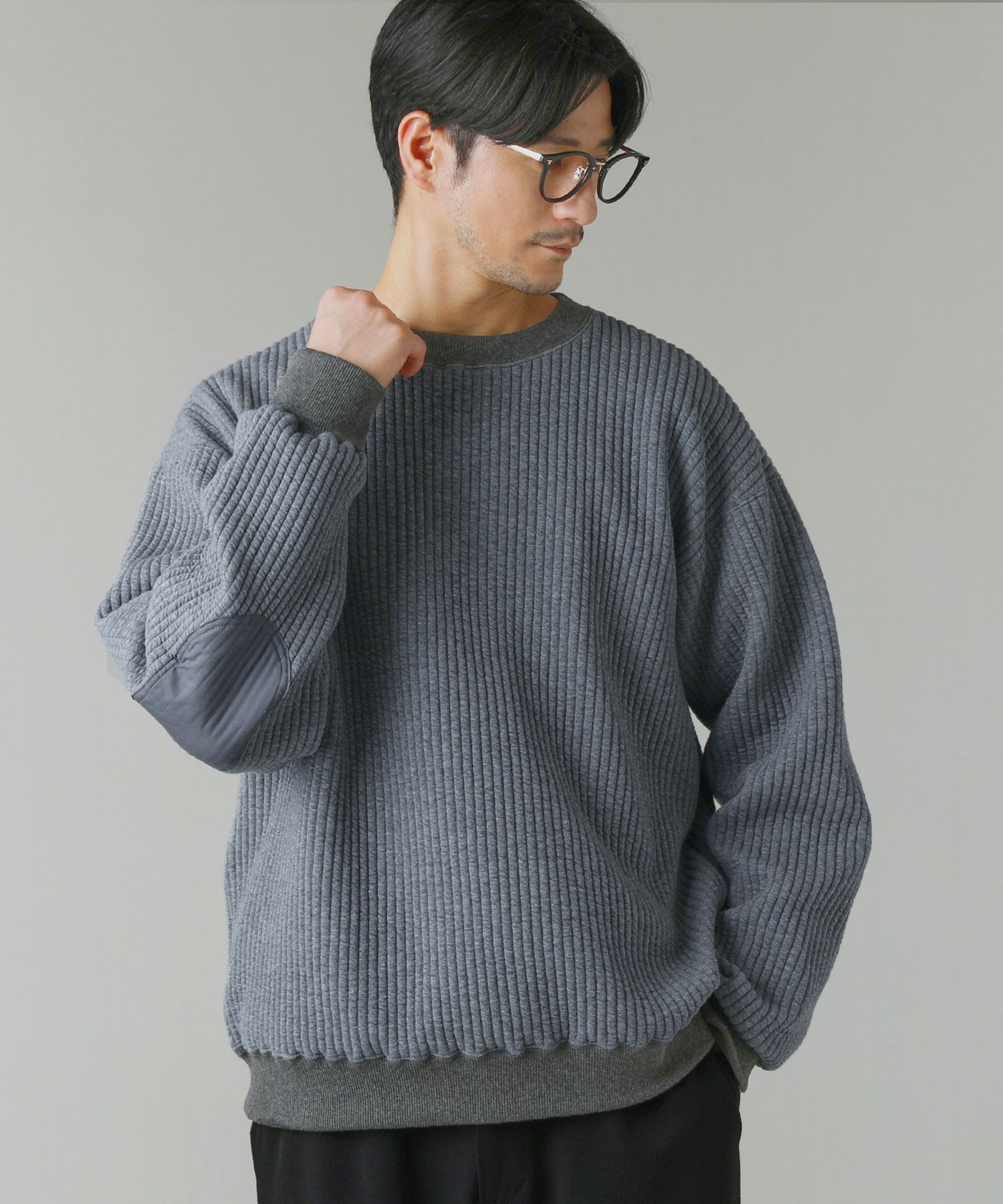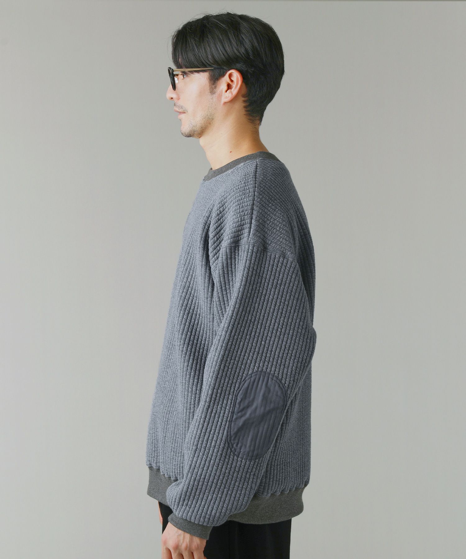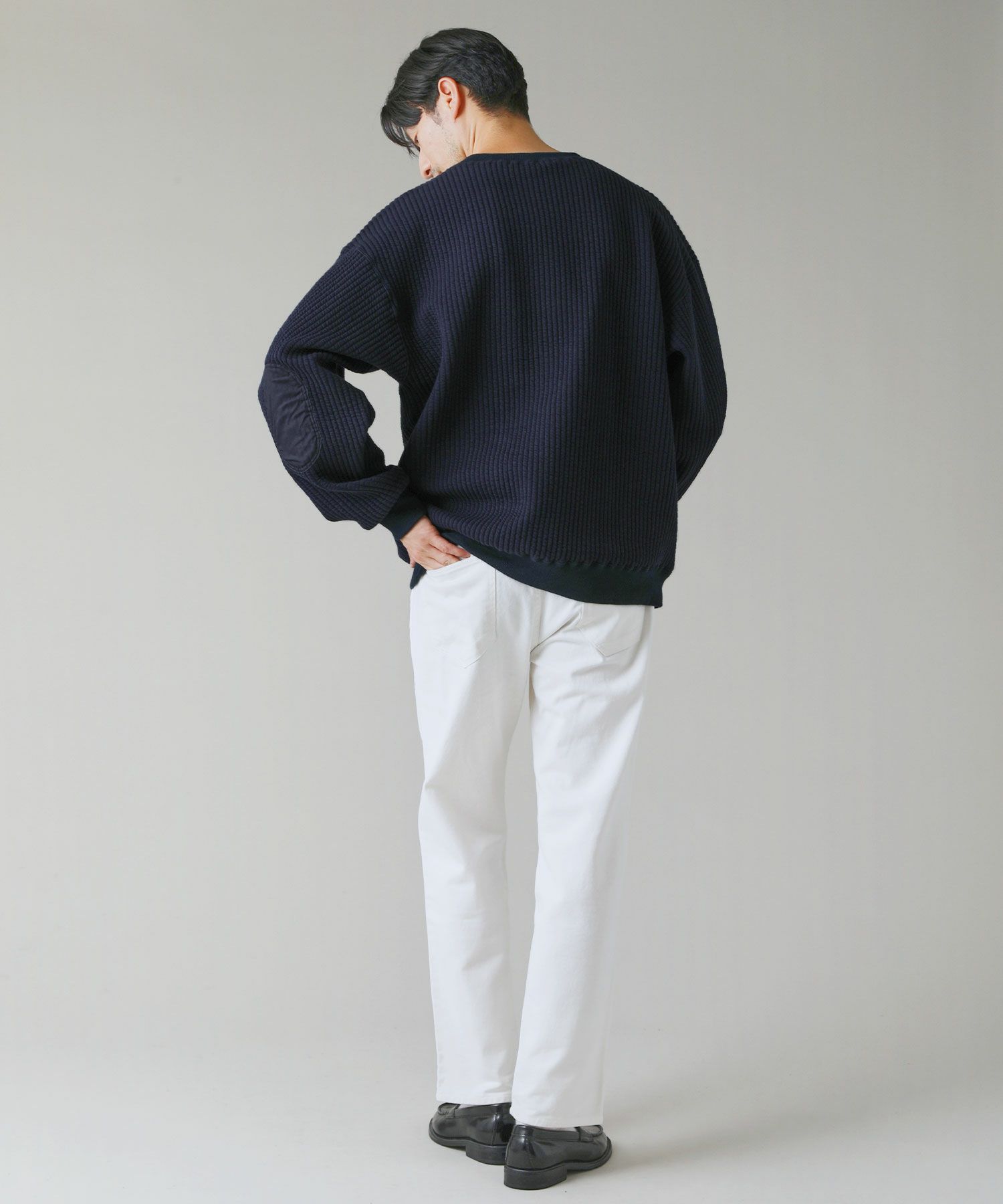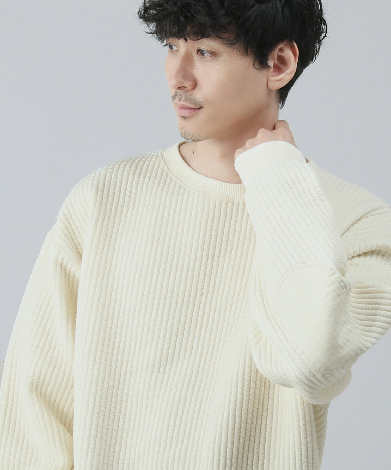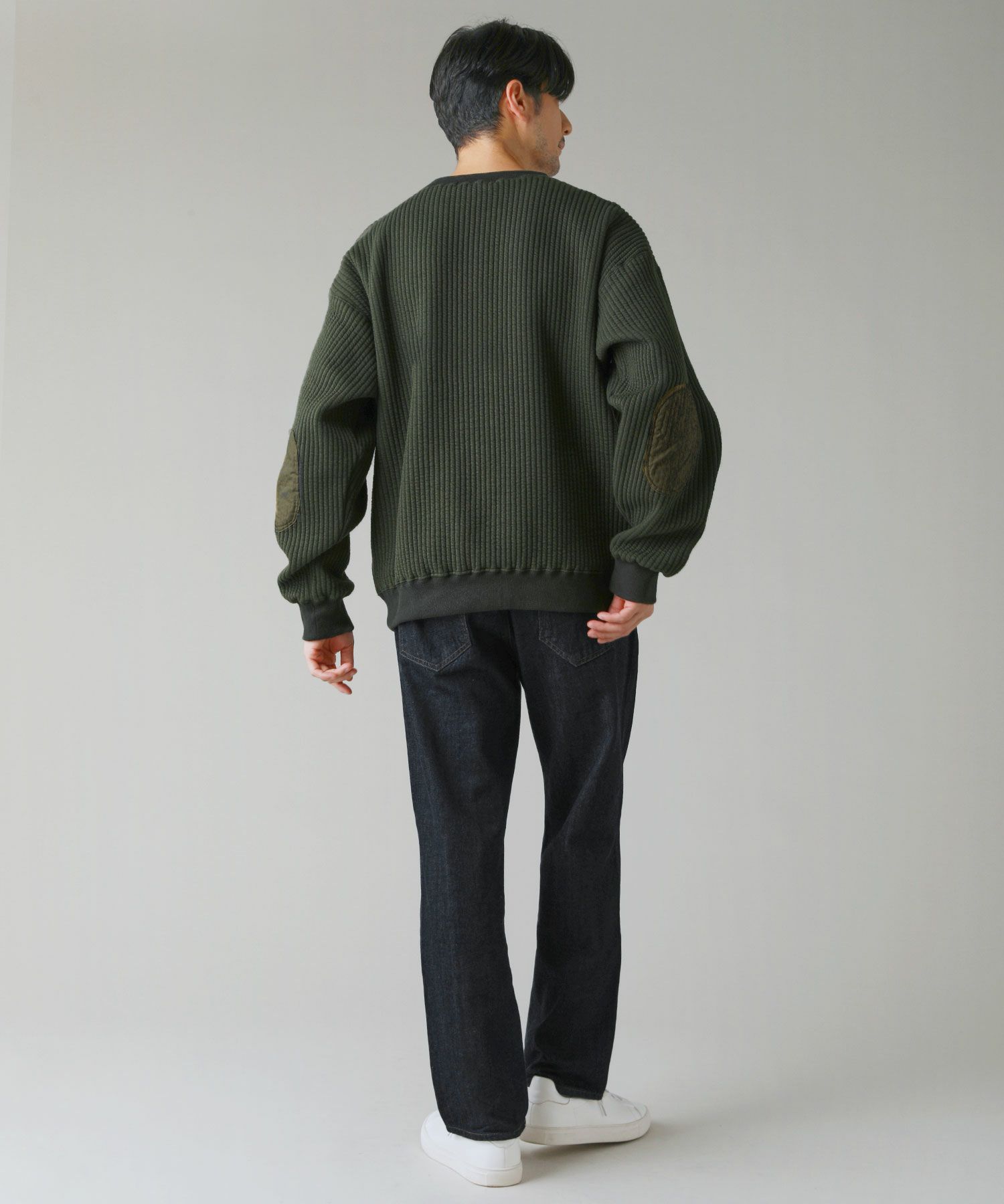 日本製尾州コットンキルトエルボーパッチクルーネック長袖スウェット 12,100円(税込) |