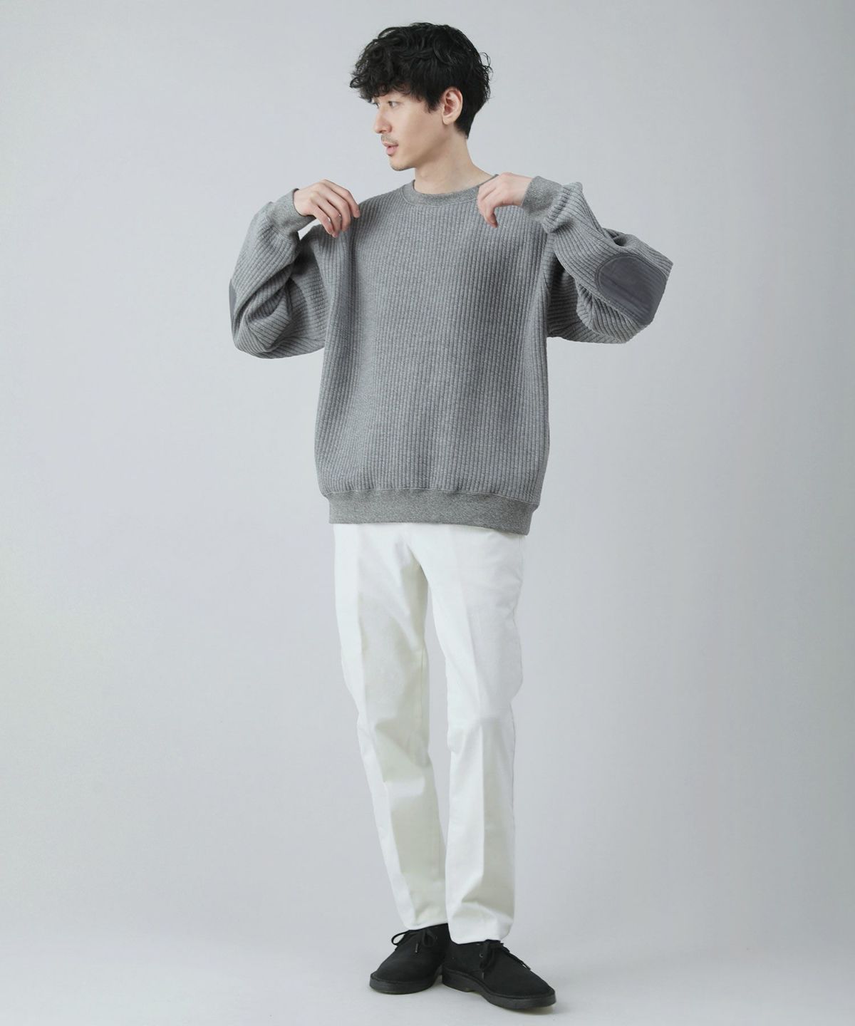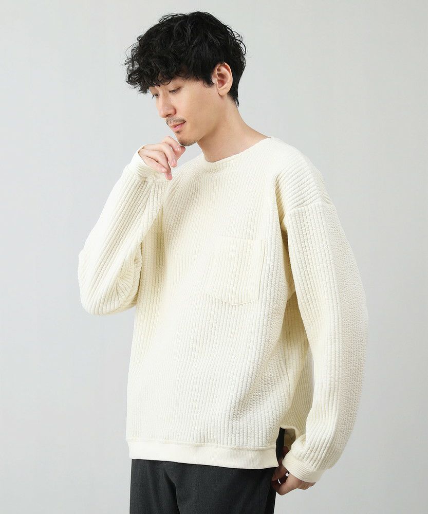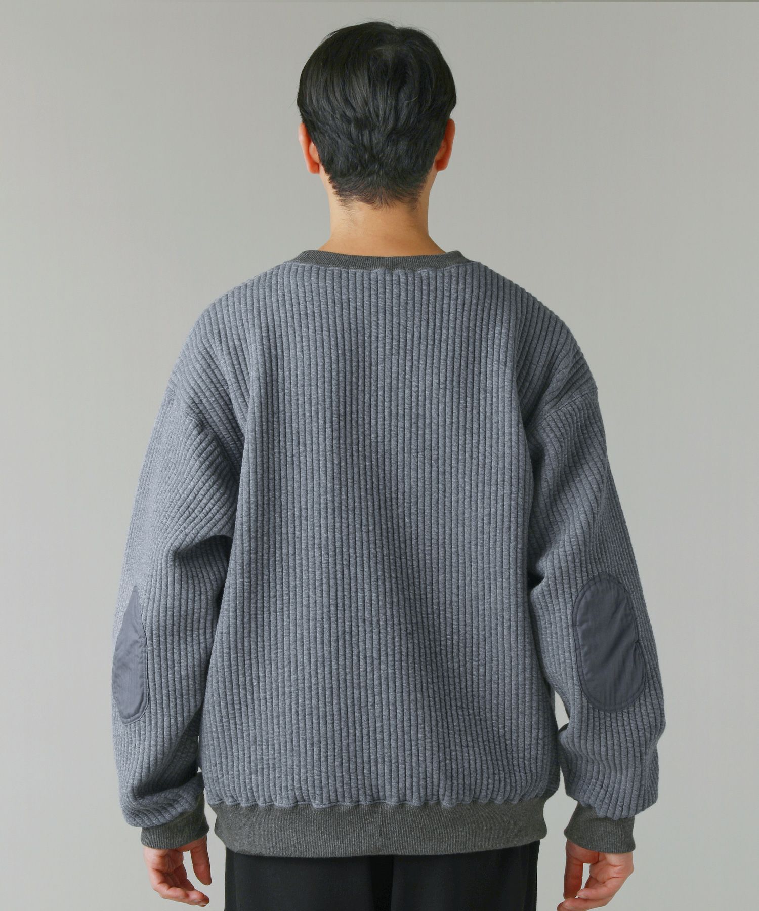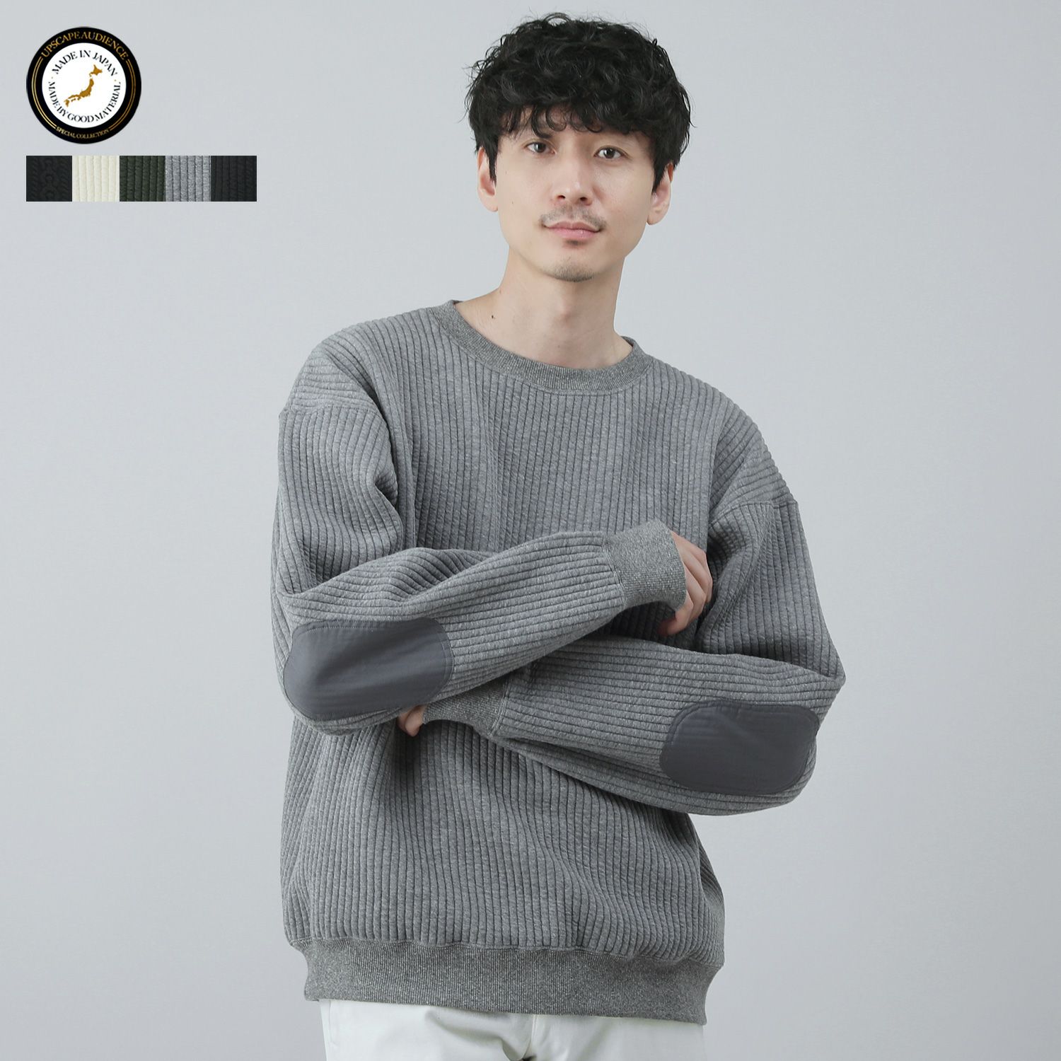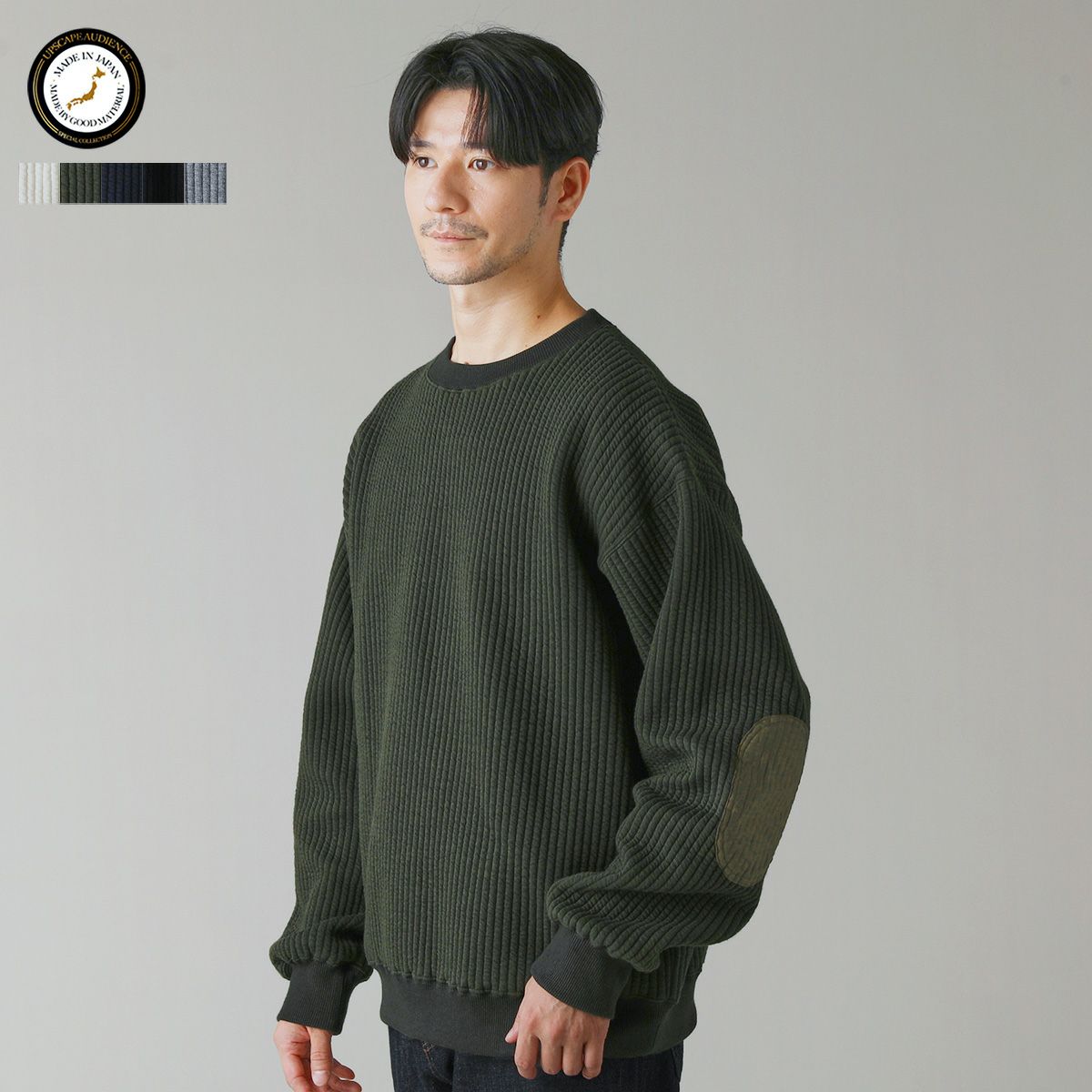 日本製尾州コットンキルトエルボーパッチクルーネック長袖スウェット 12,100円(税込) |