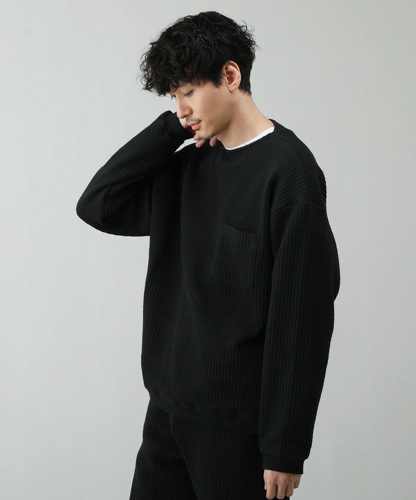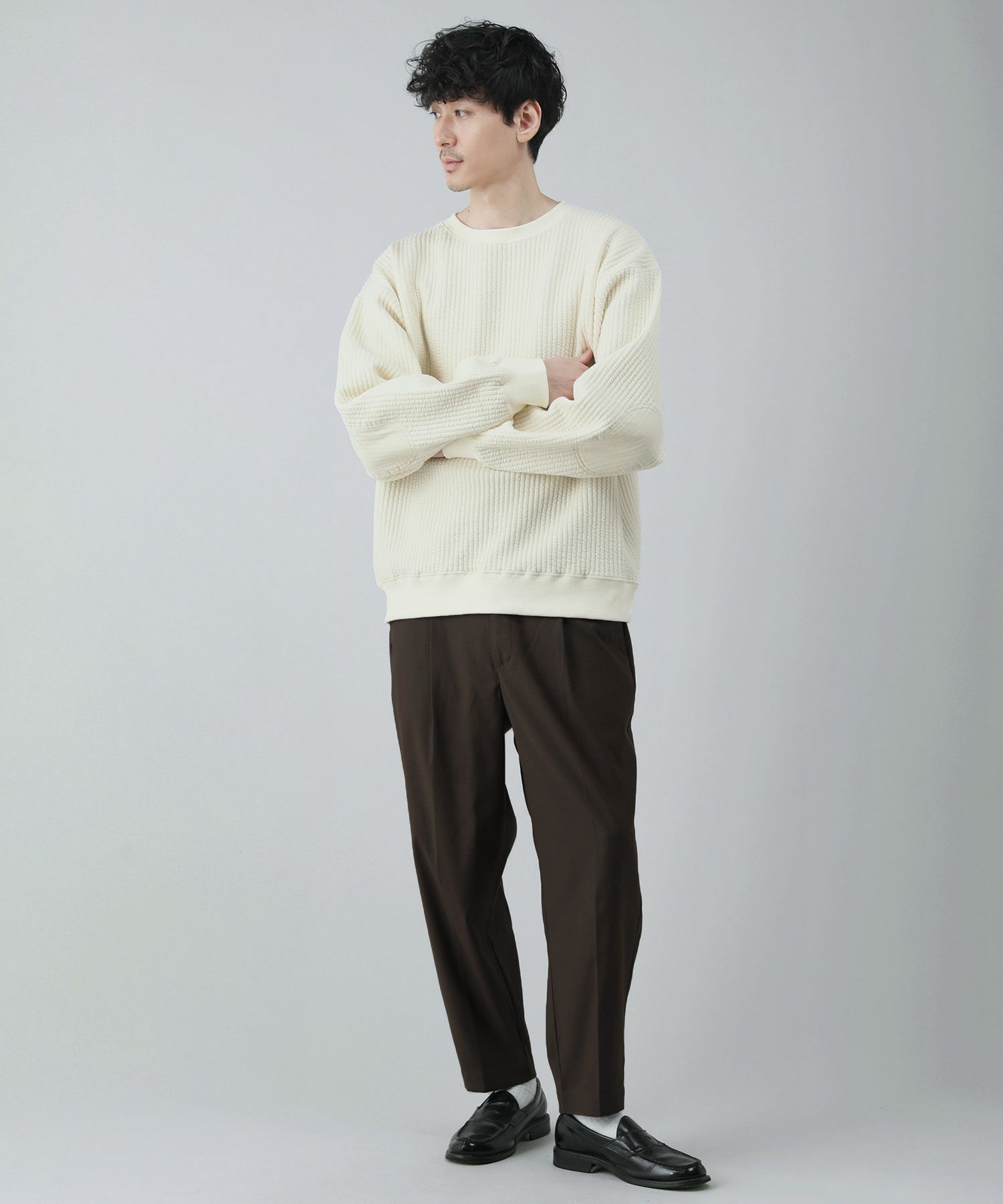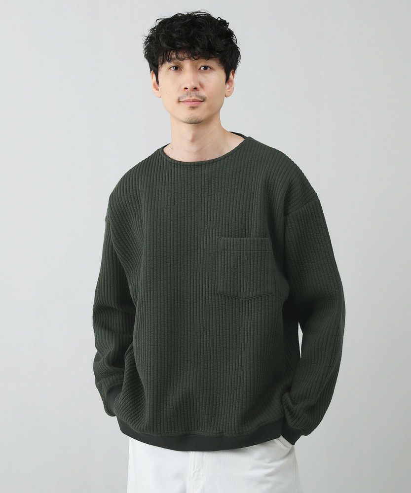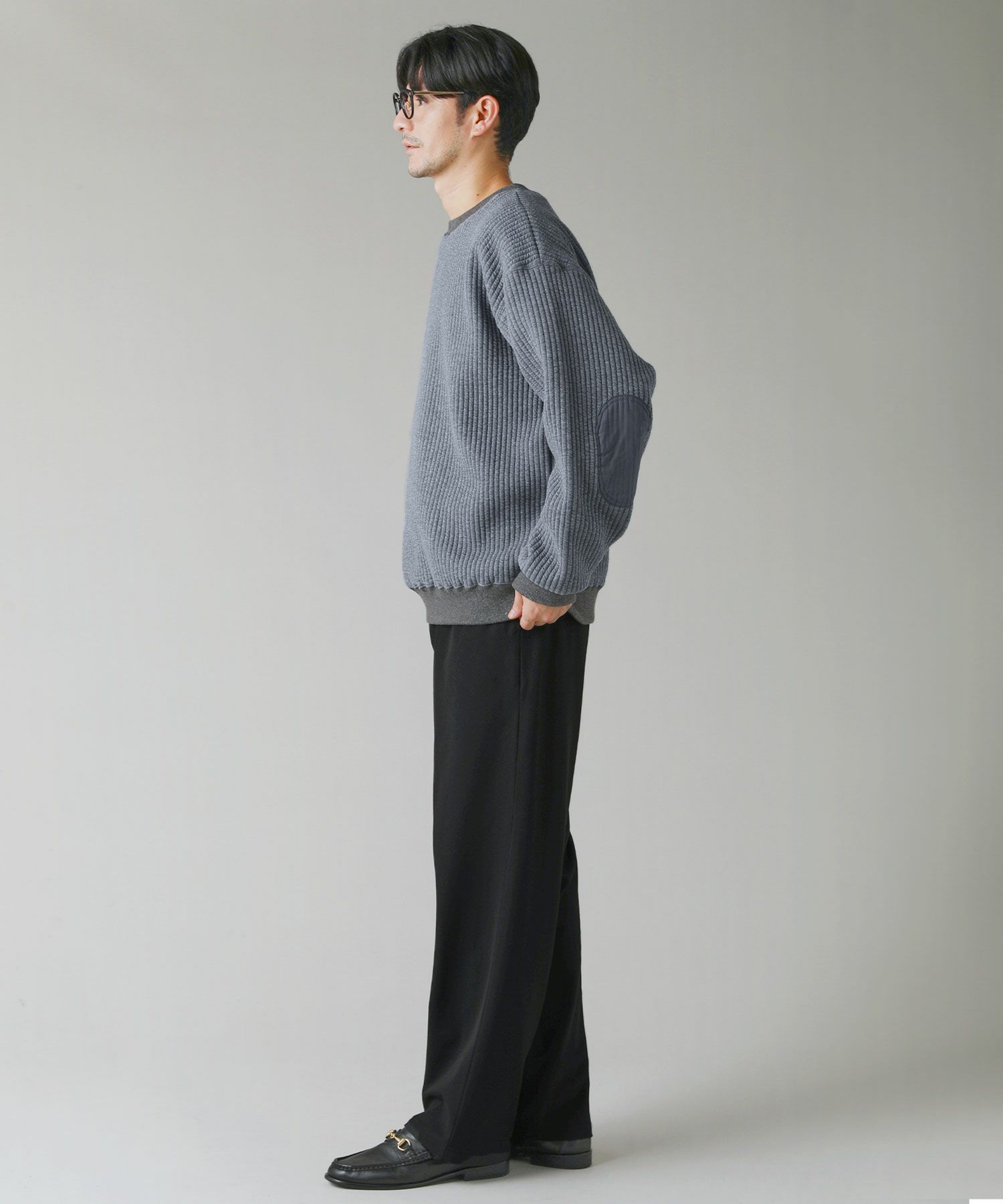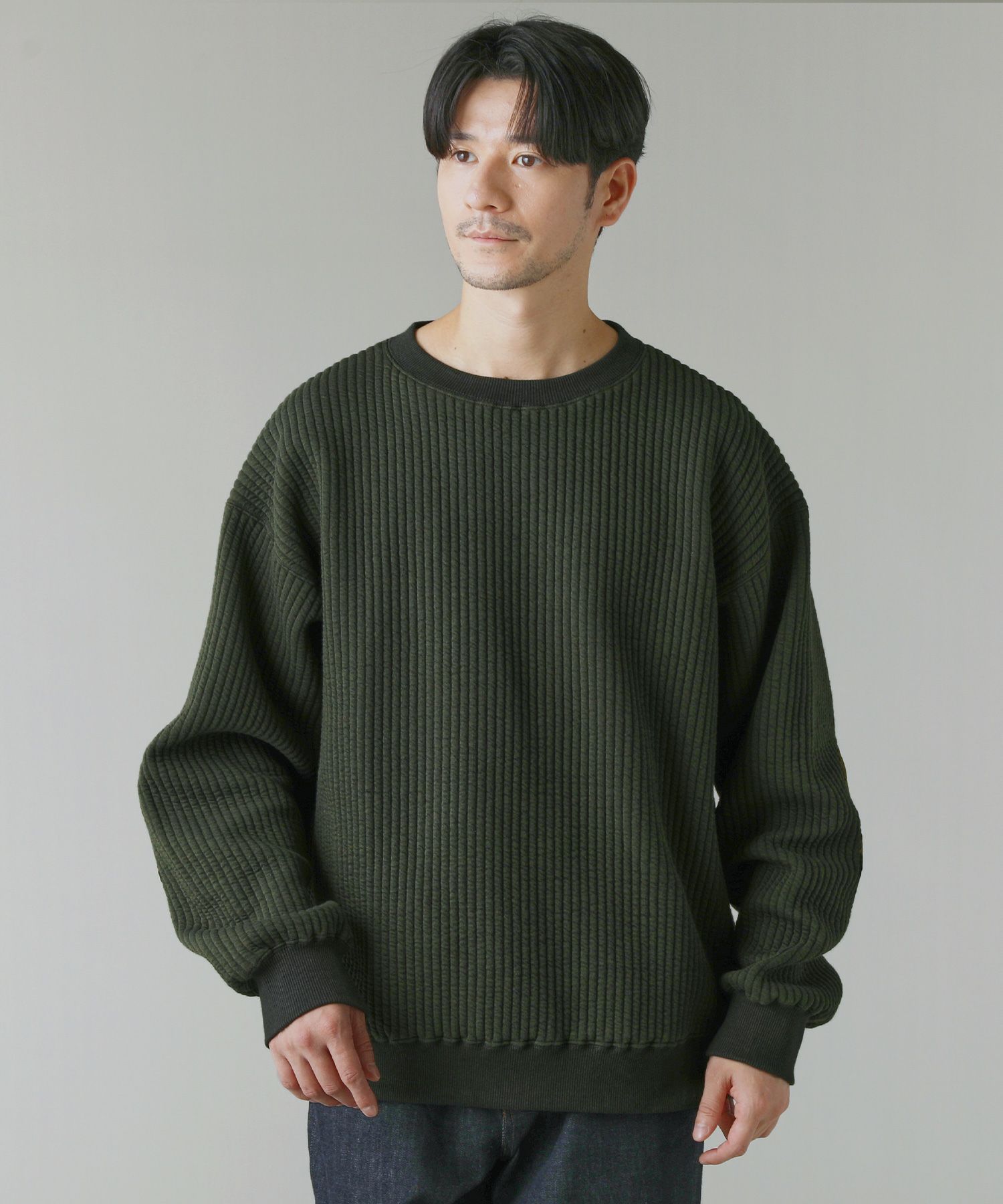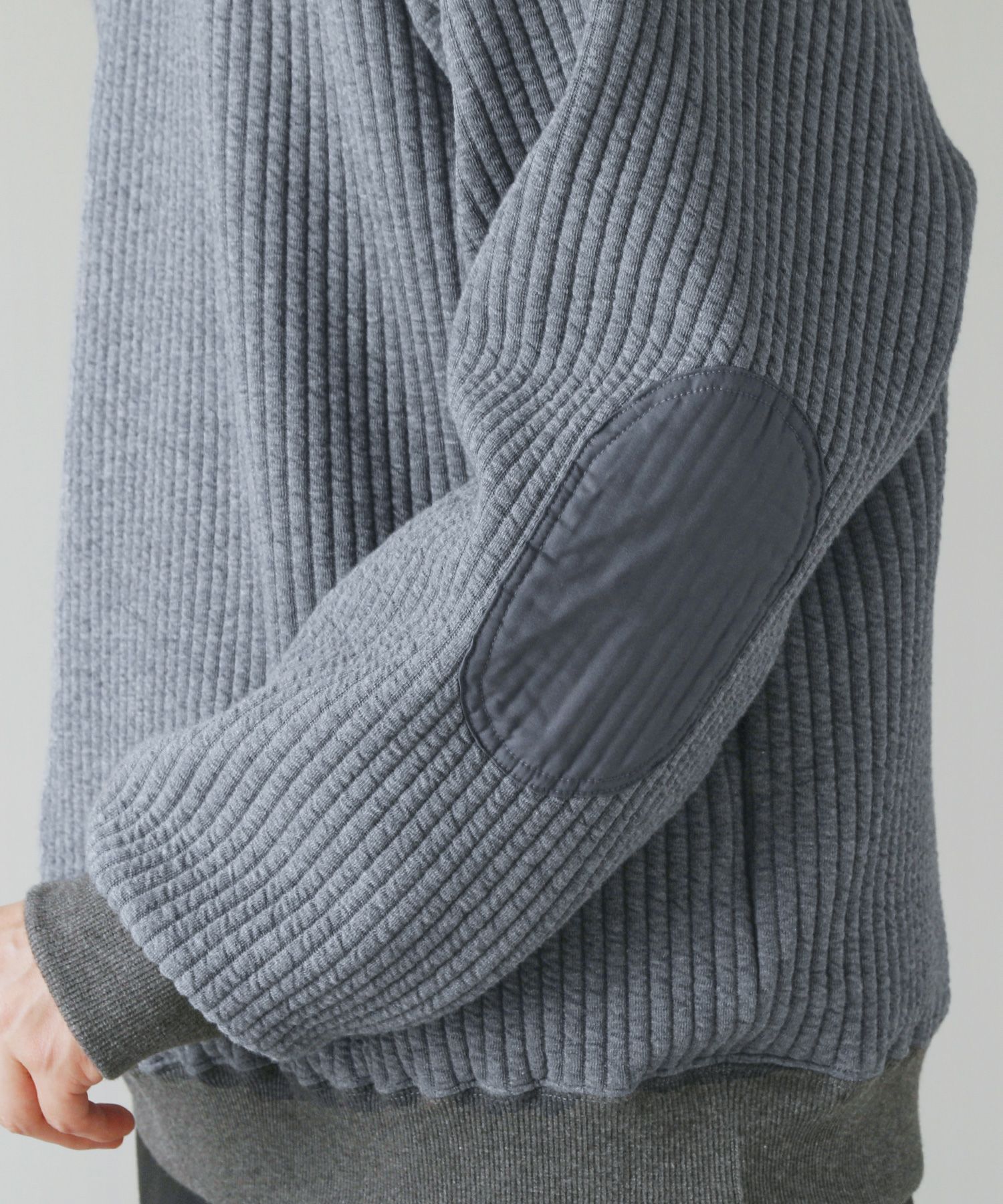 日本製尾州コットンキルトエルボーパッチクルーネック長袖スウェット 12,100円(税込) |