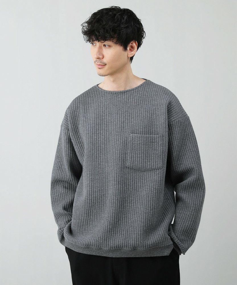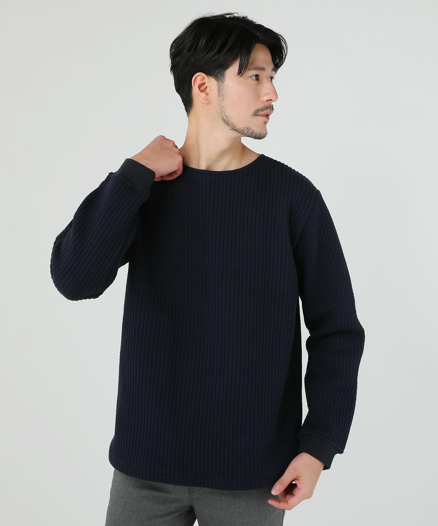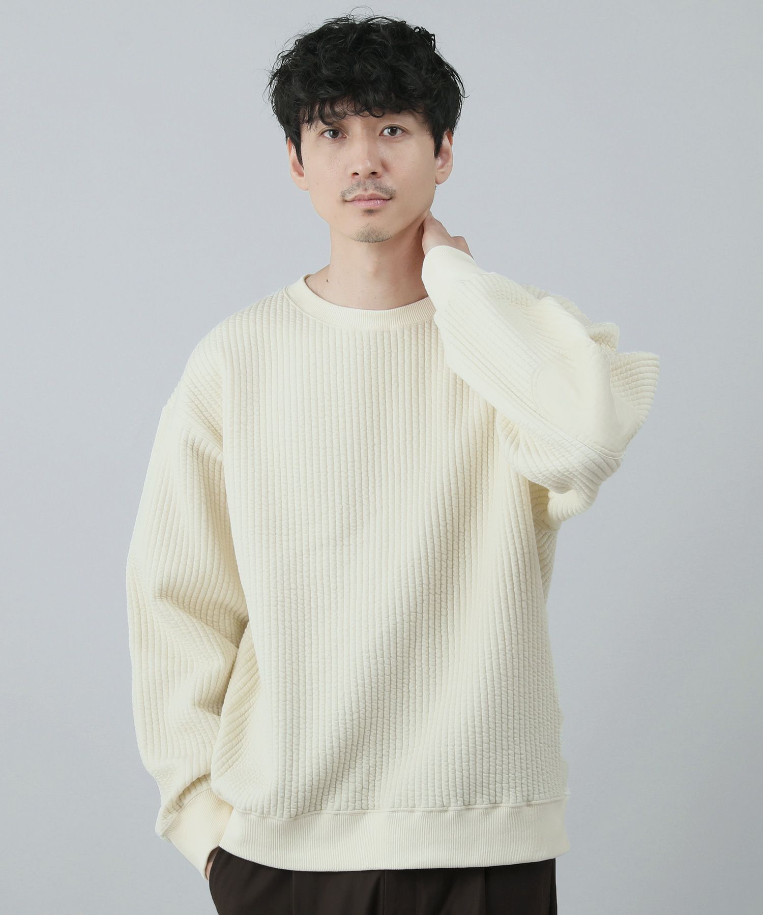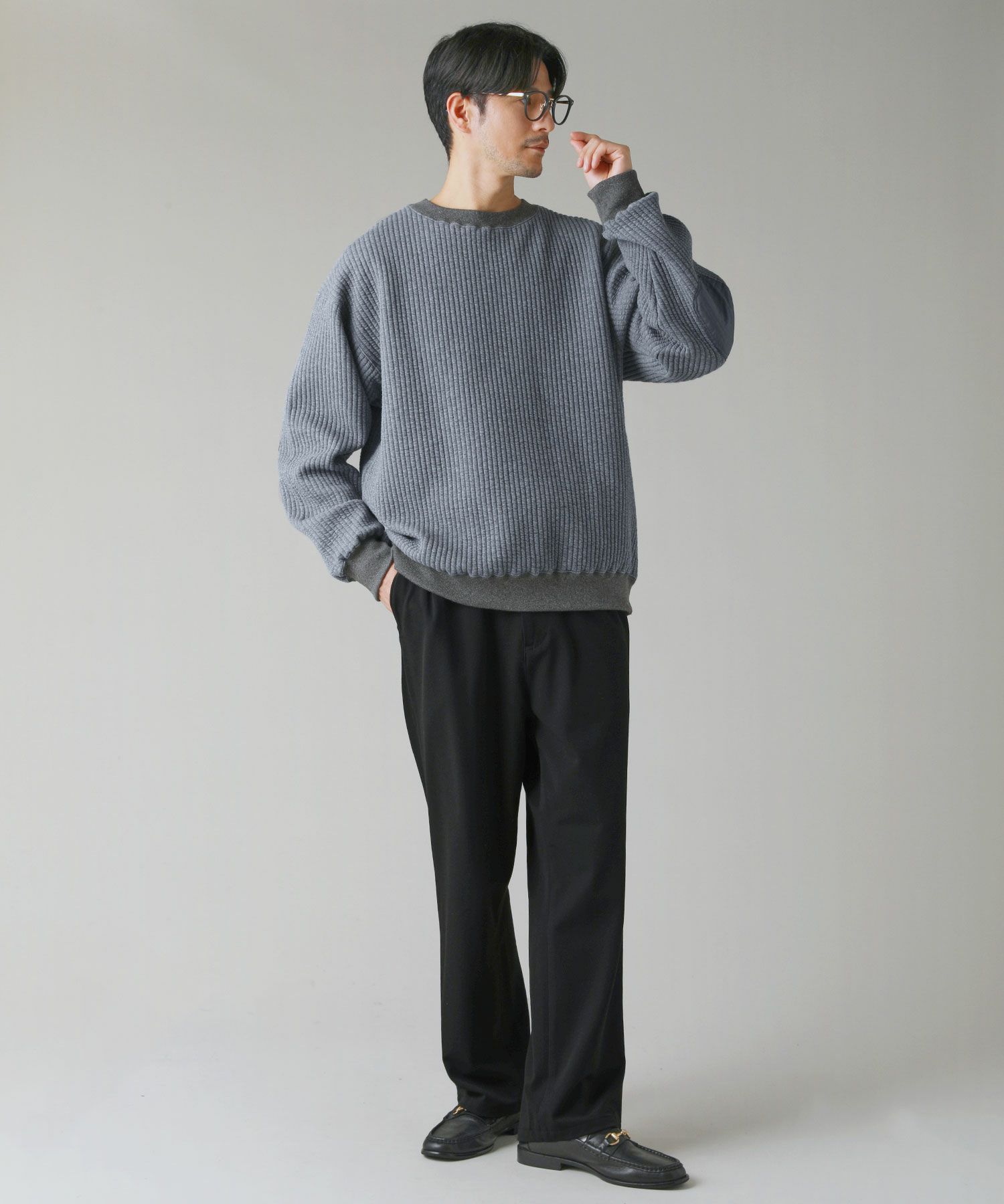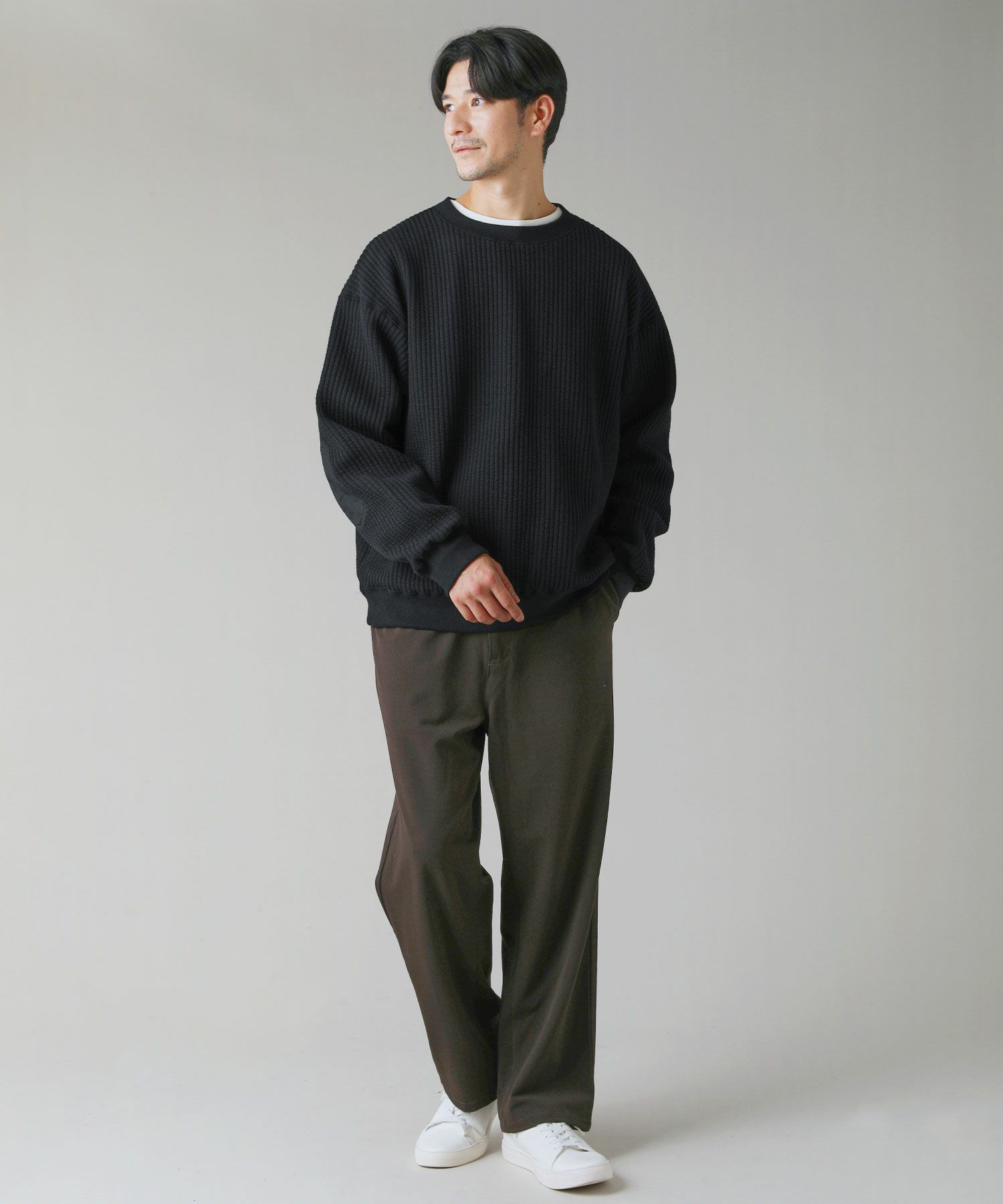 日本製尾州コットンキルトエルボーパッチクルーネック長袖スウェット 12,100円(税込) |