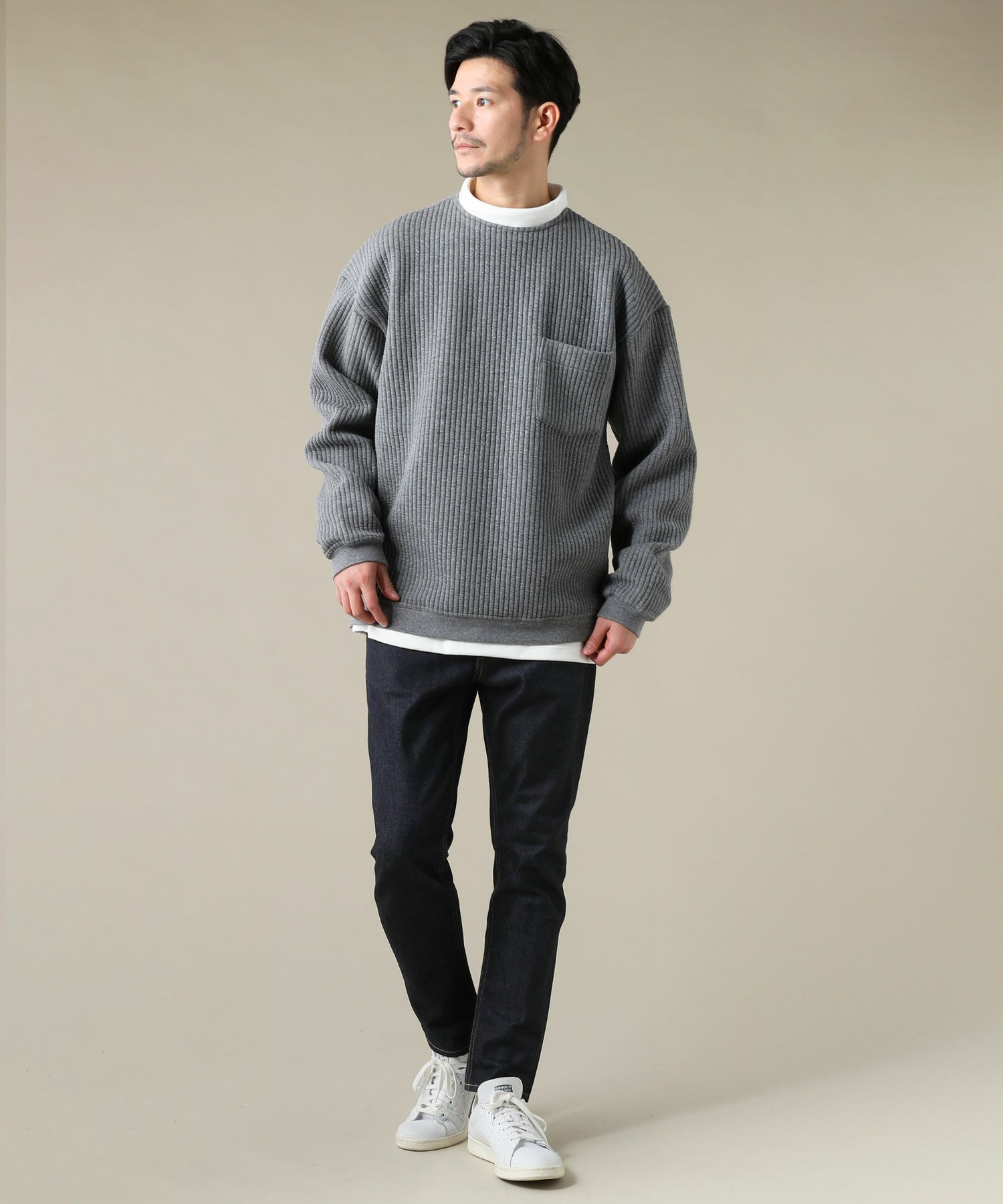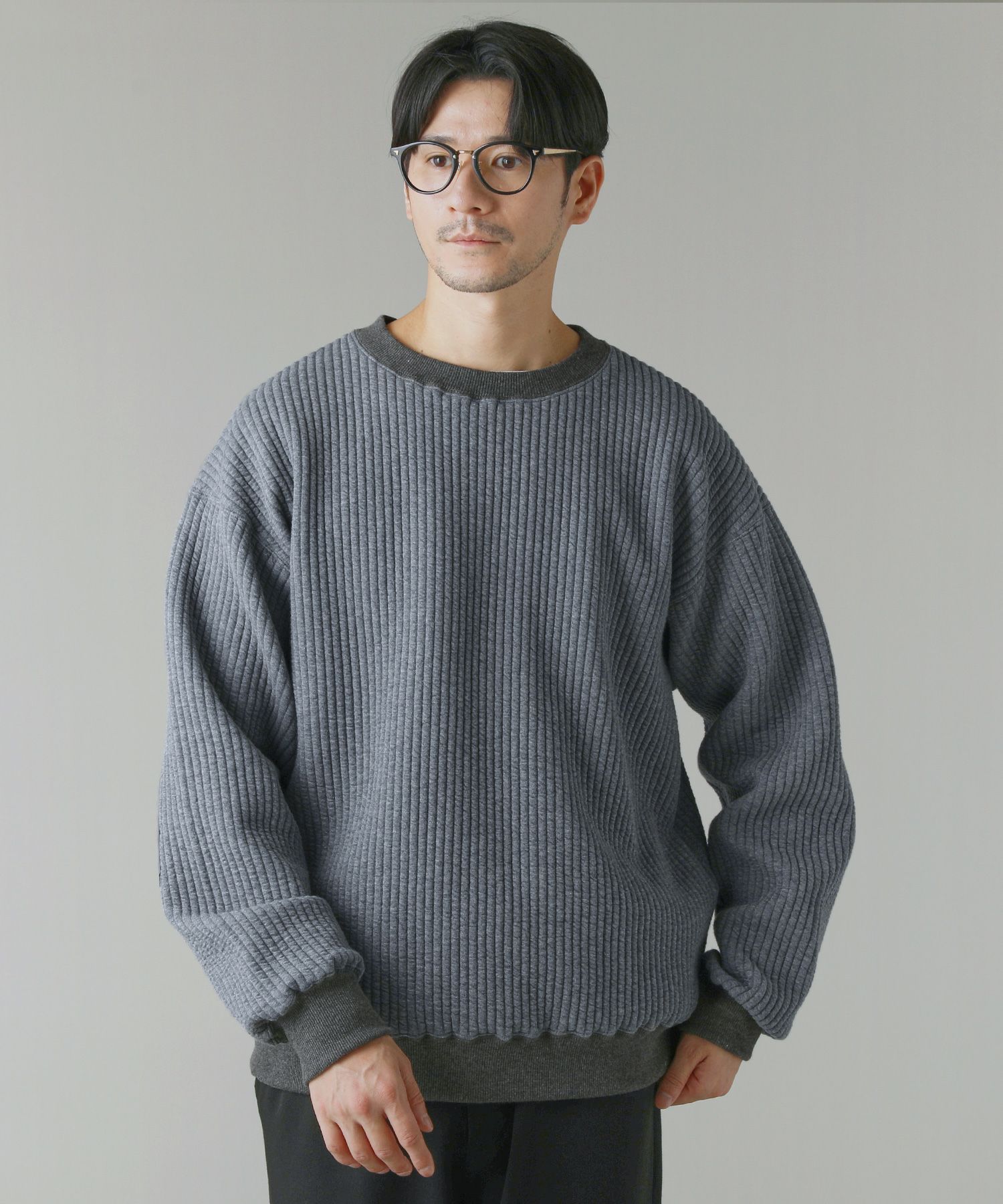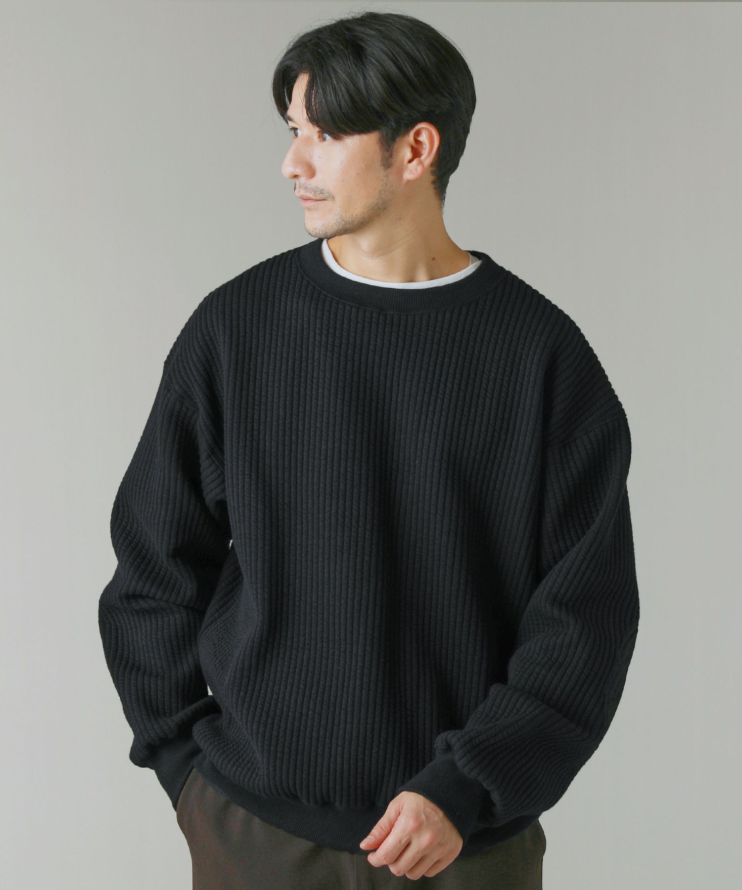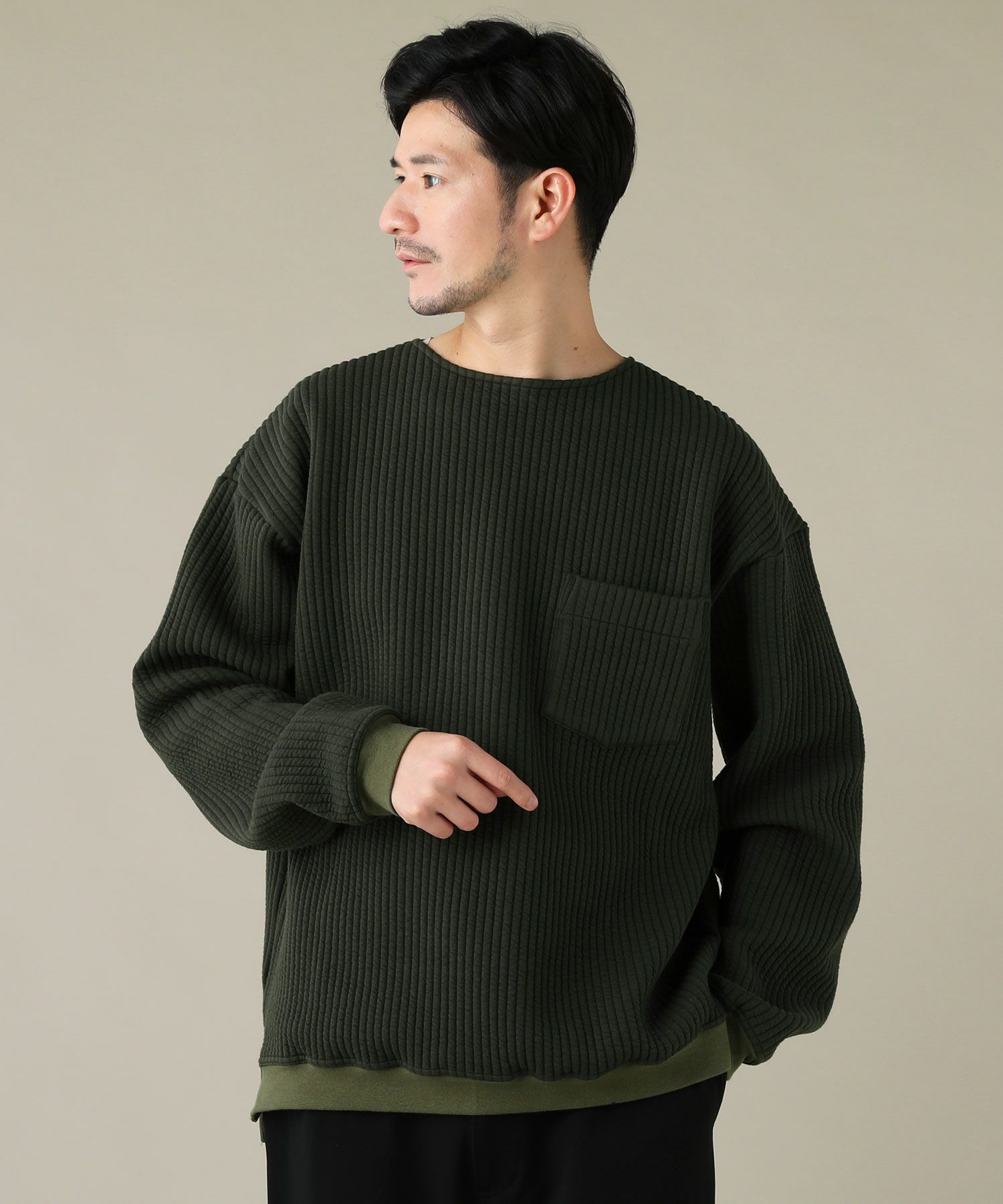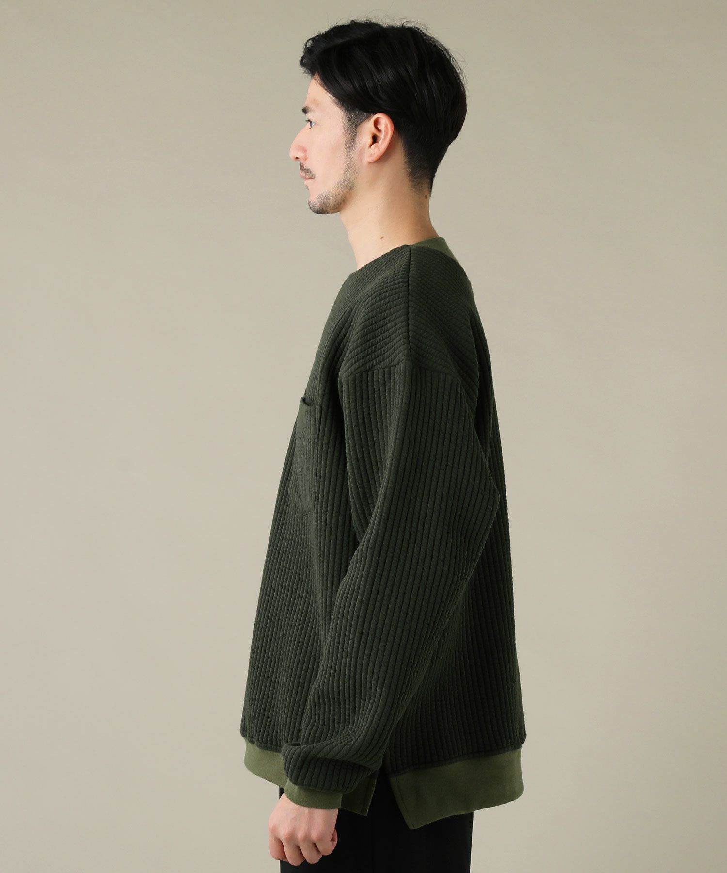 日本製尾州コットンキルトエルボーパッチクルーネック長袖スウェット 12,100円(税込) |