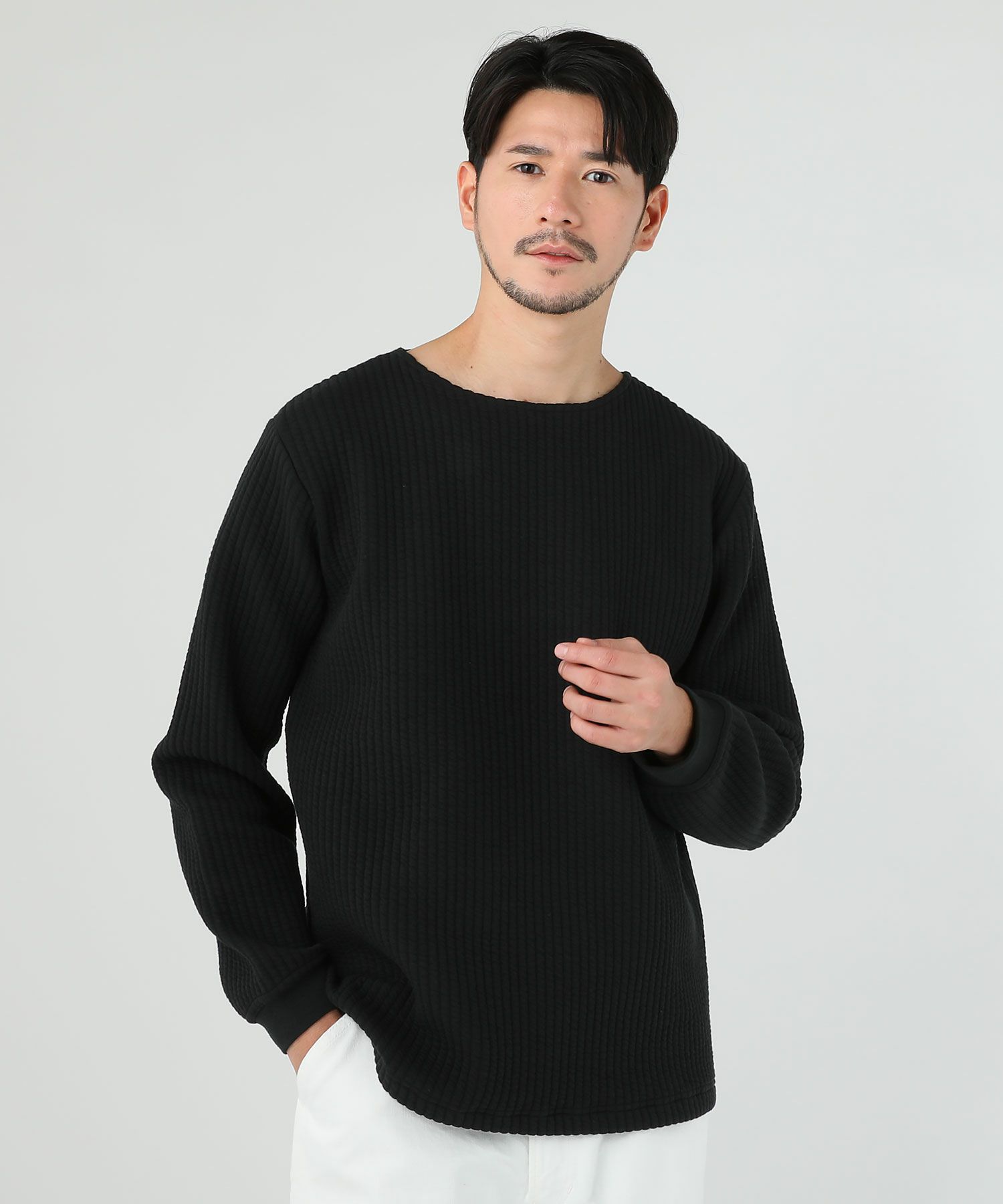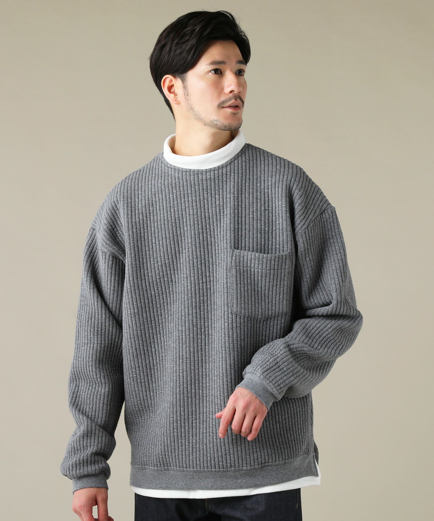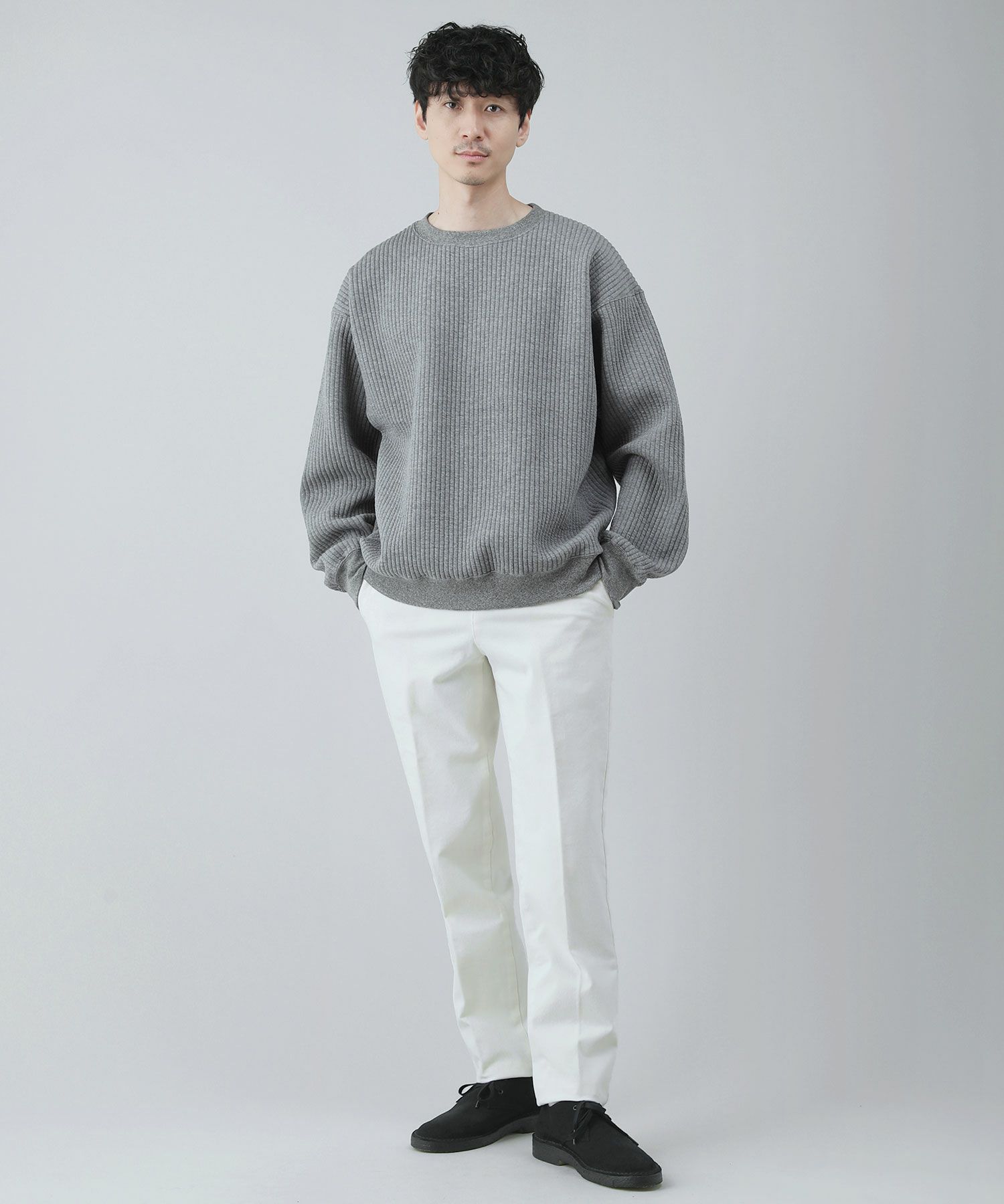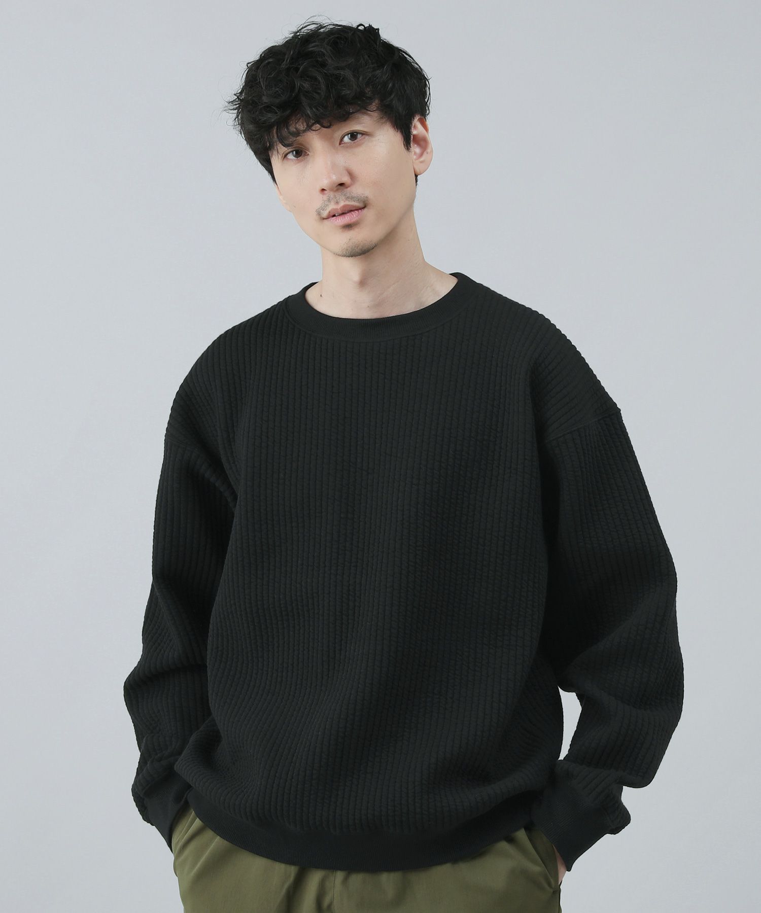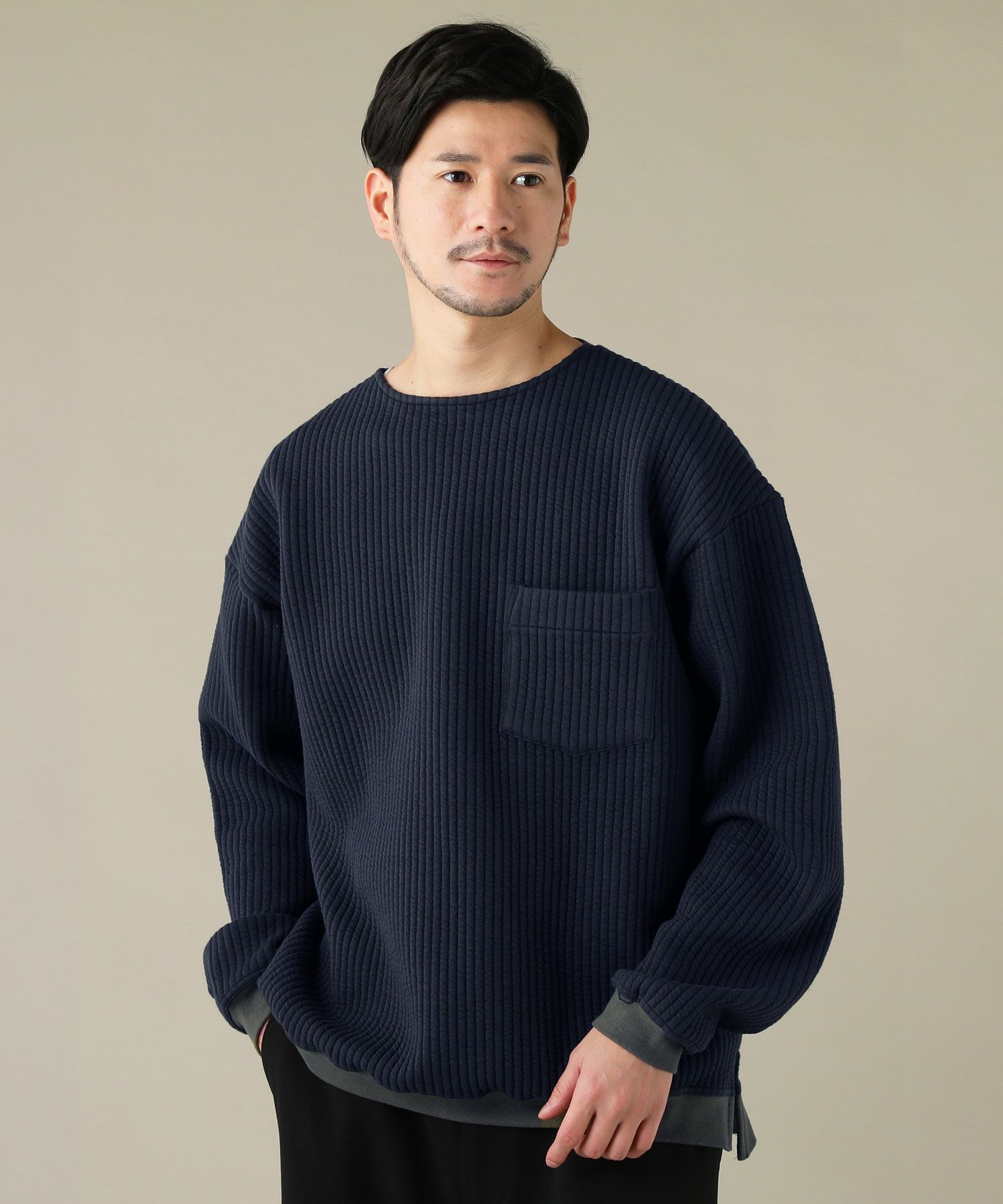 日本製尾州コットンキルトエルボーパッチクルーネック長袖スウェット 12,100円(税込) |