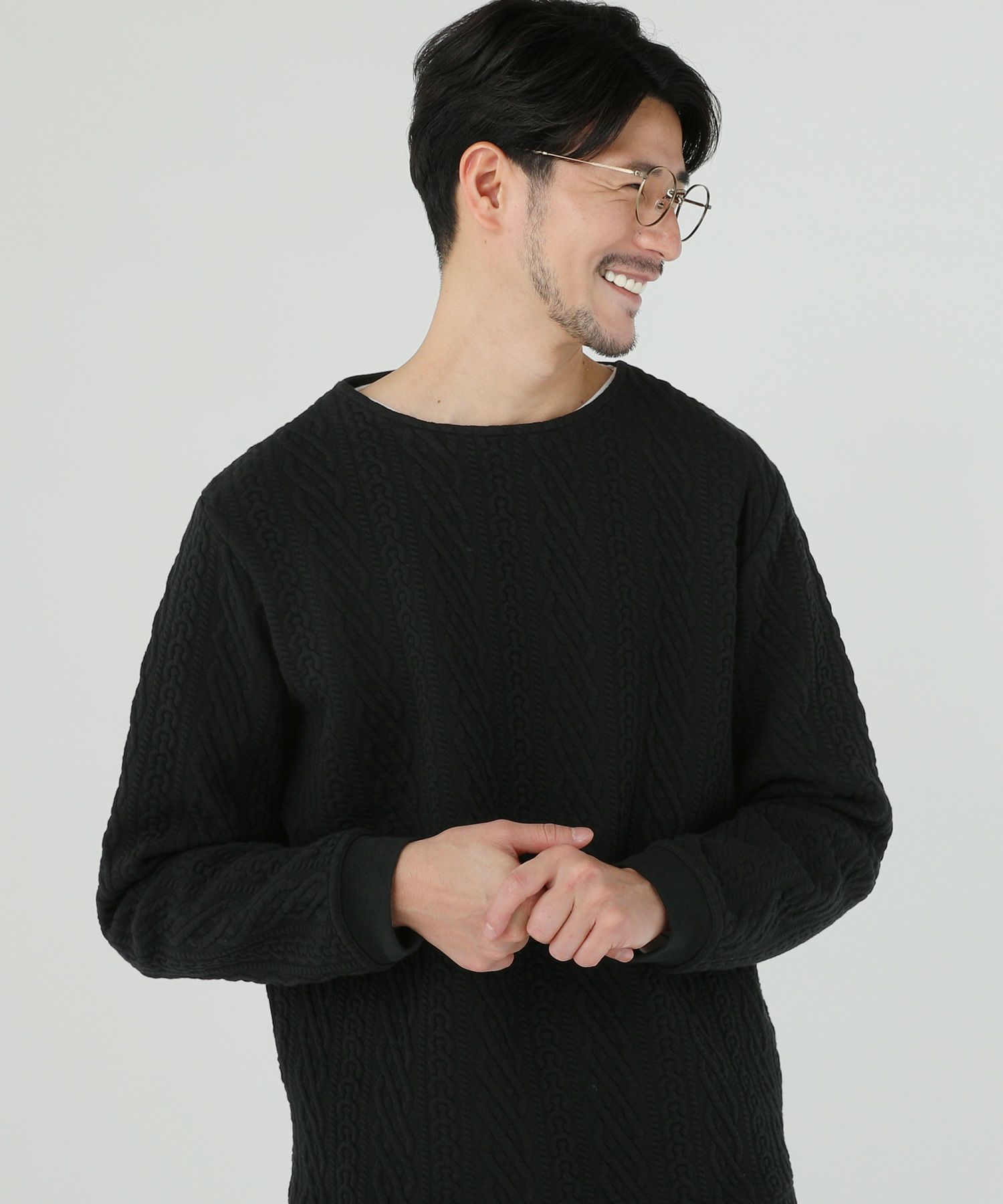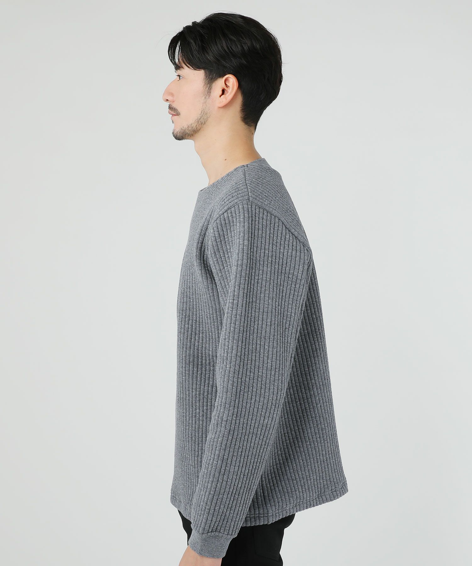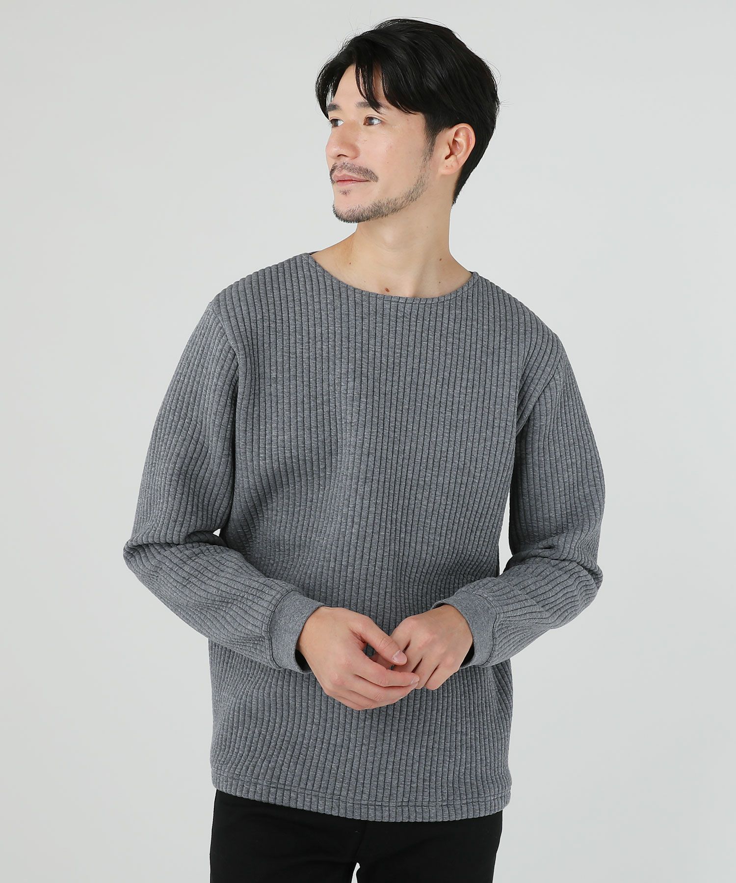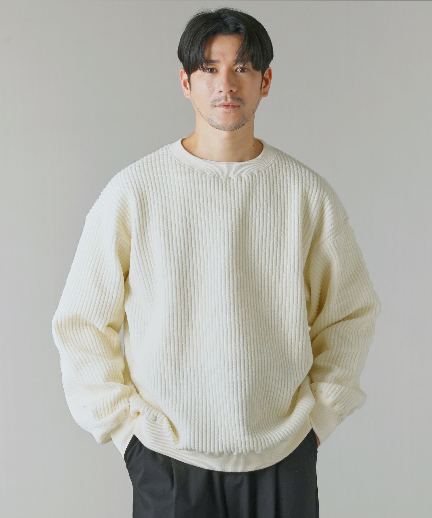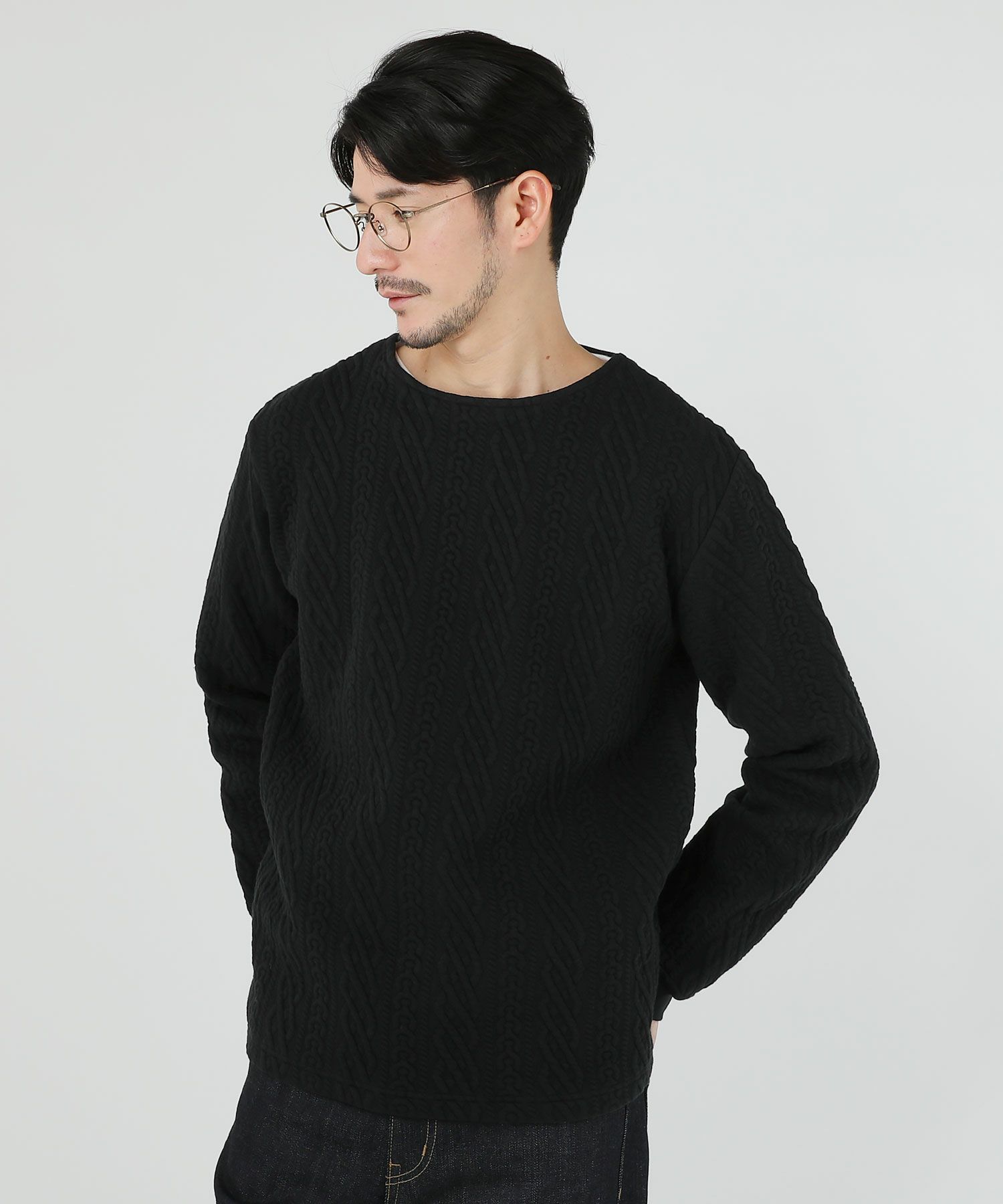 日本製尾州コットンキルトエルボーパッチクルーネック長袖スウェット 12,100円(税込) |
