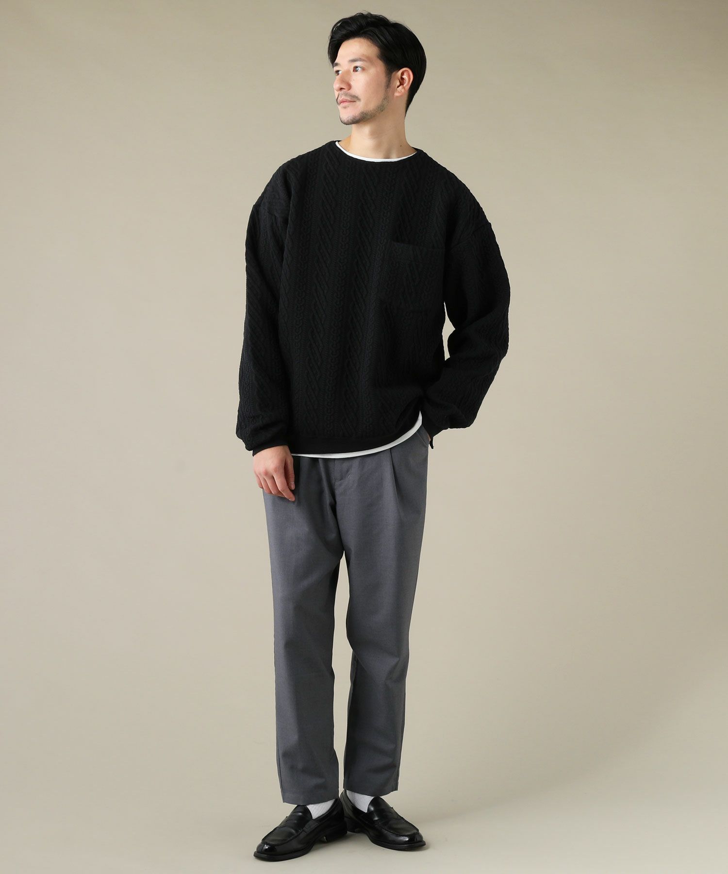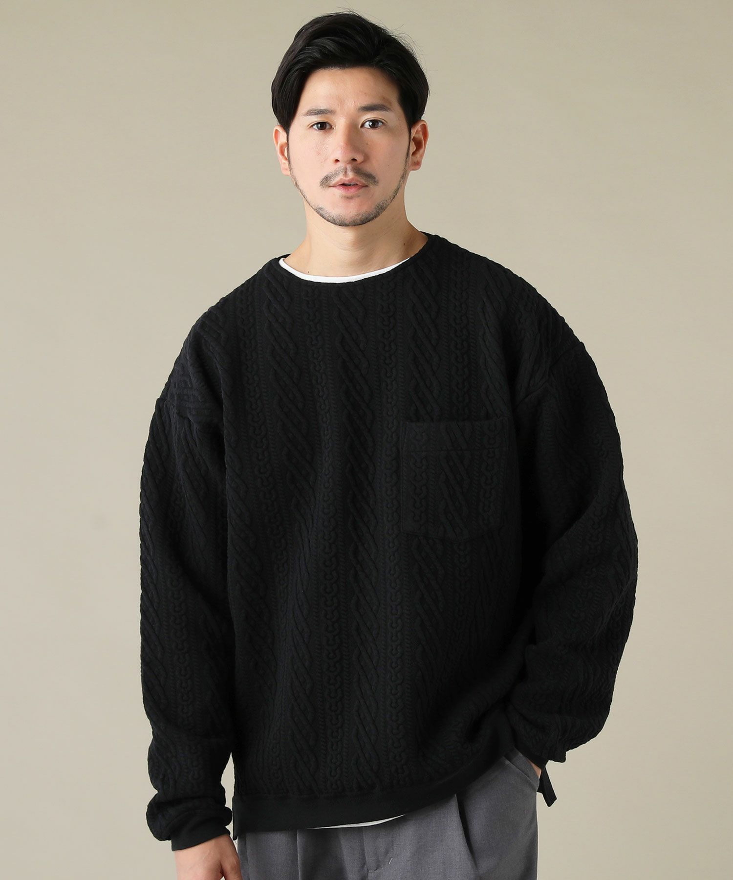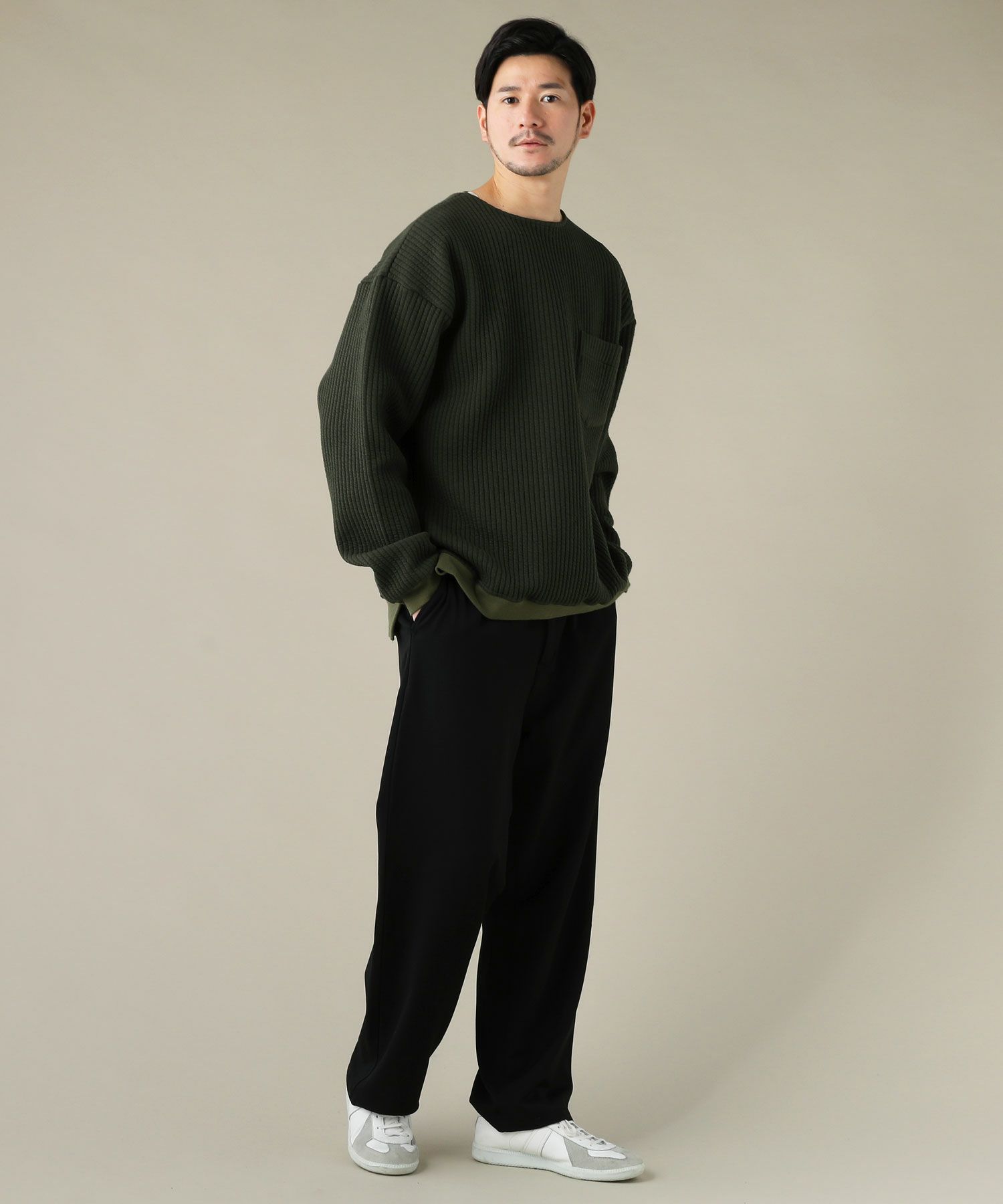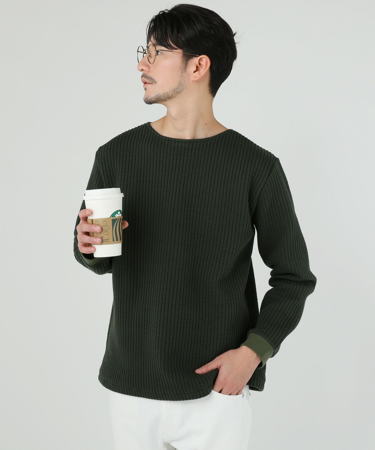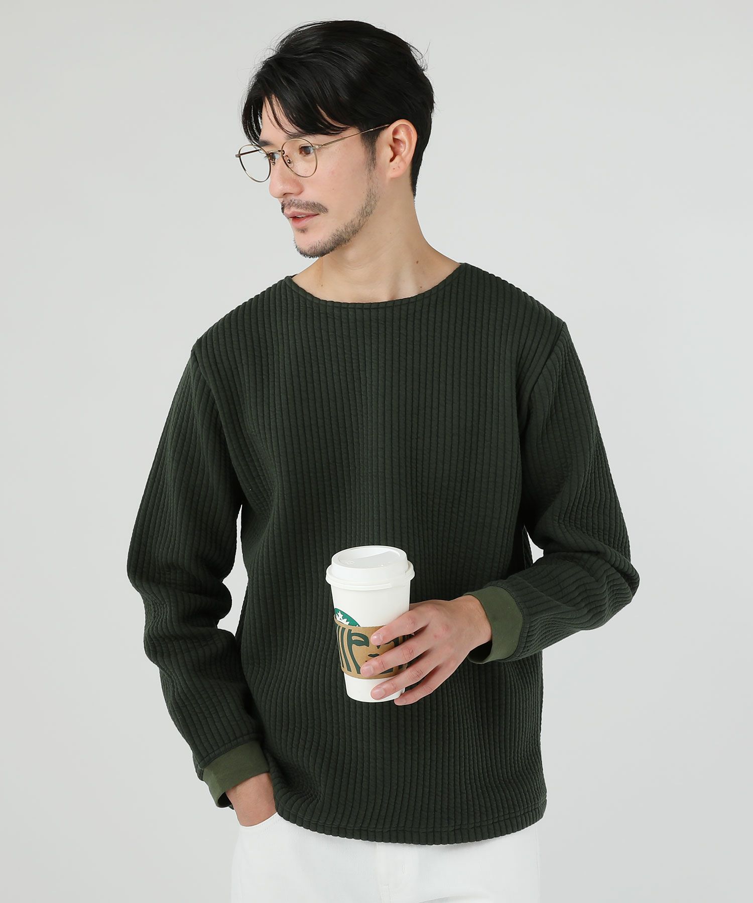 日本製尾州コットンキルトエルボーパッチクルーネック長袖スウェット 12,100円(税込) |