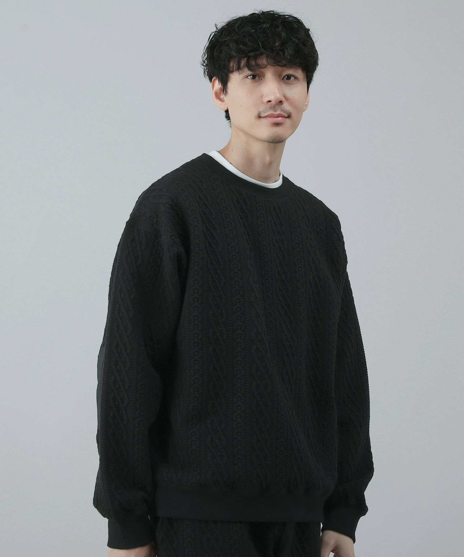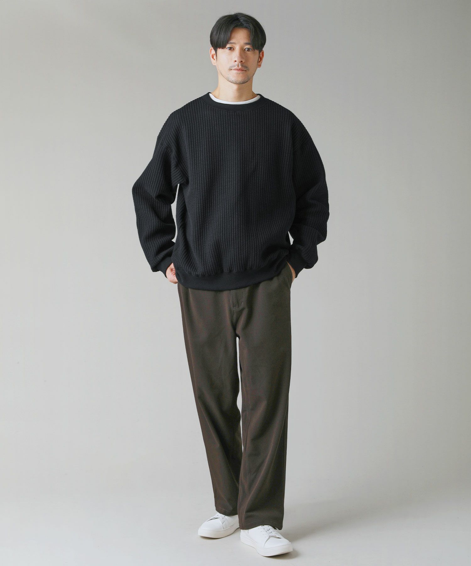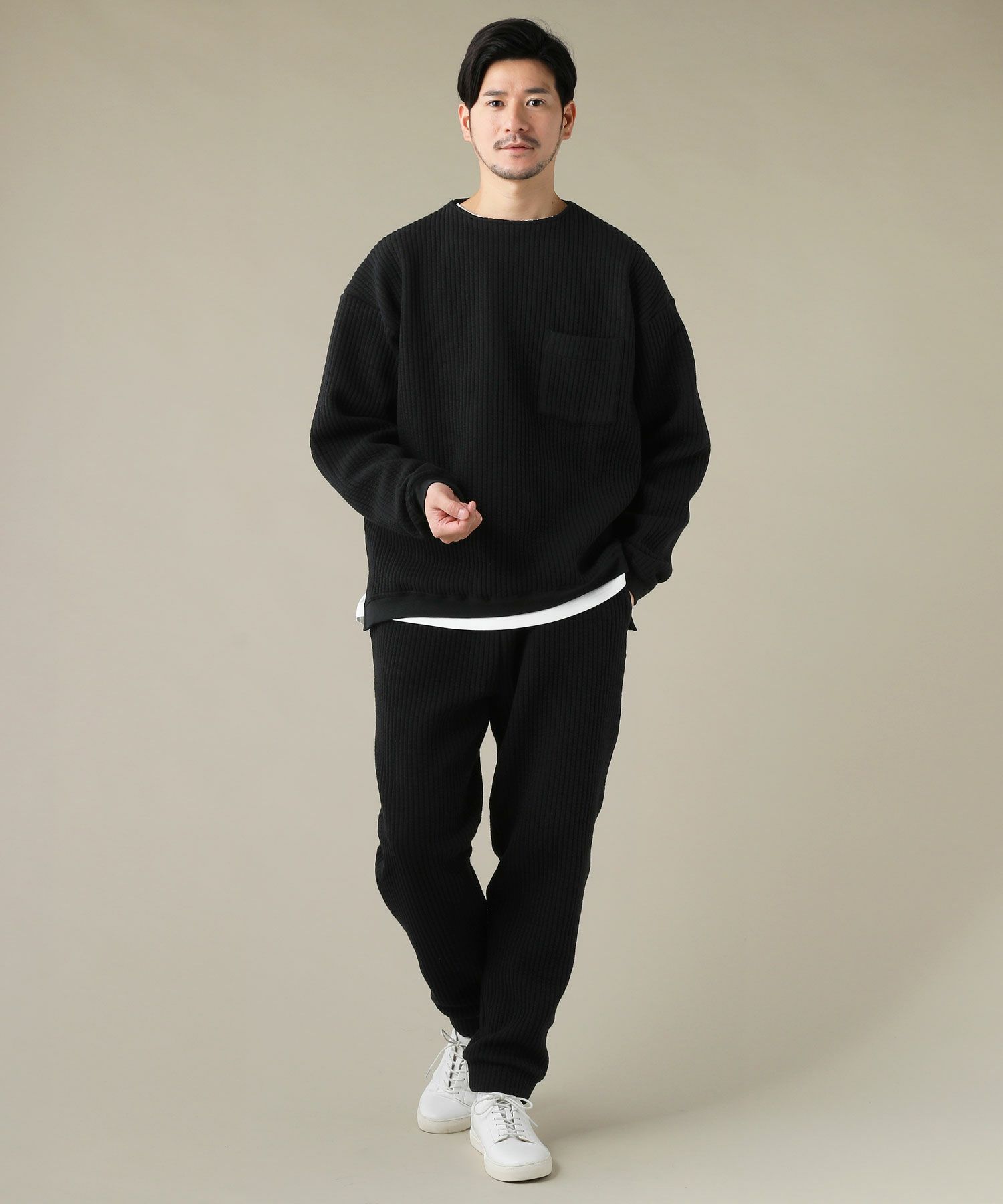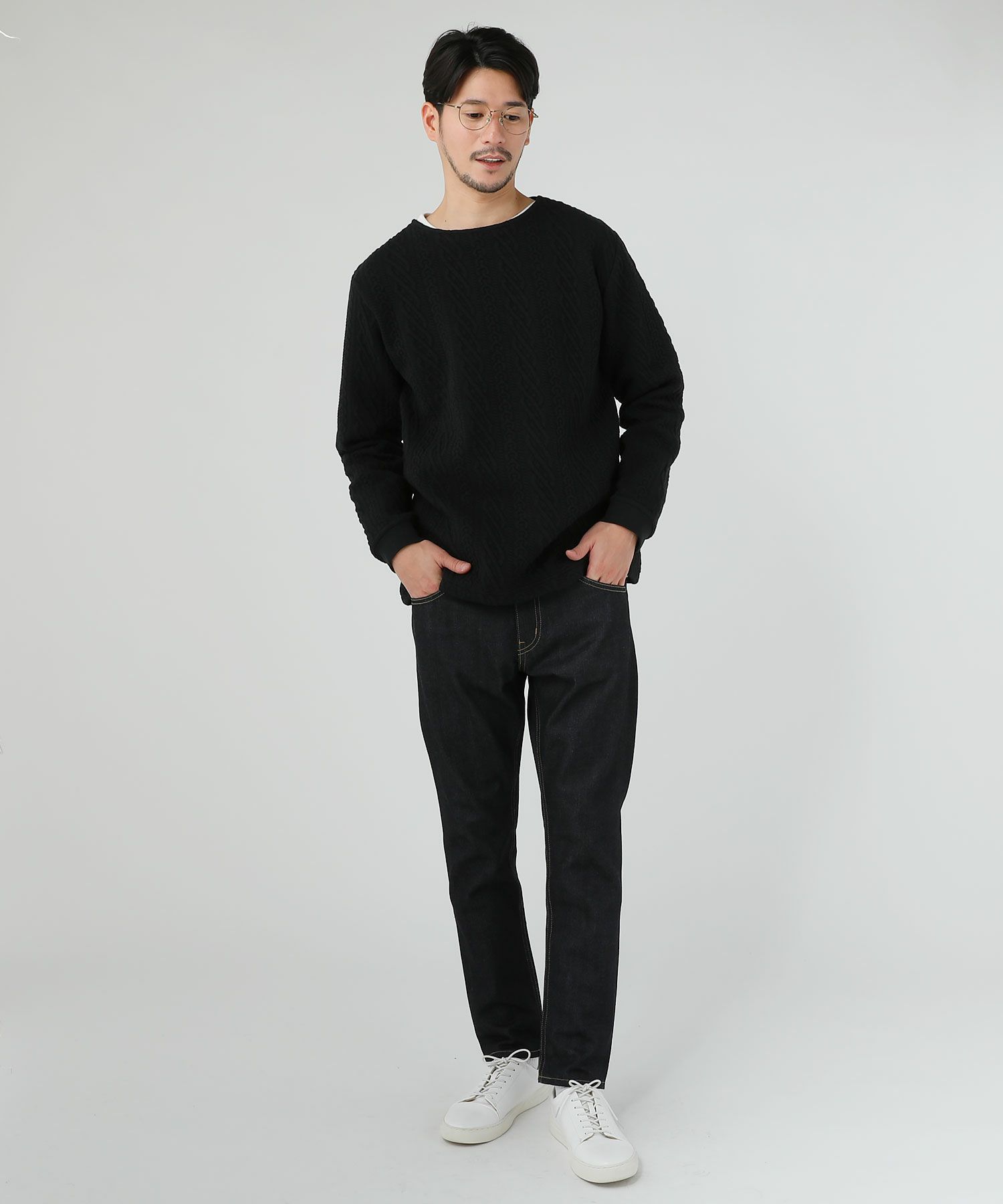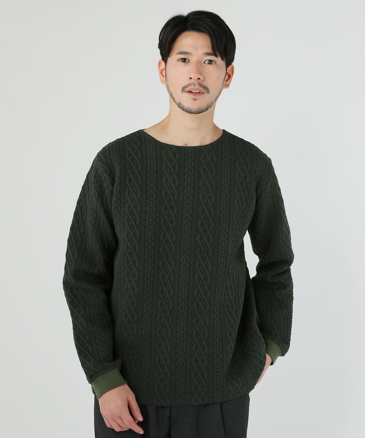 日本製尾州コットンキルトエルボーパッチクルーネック長袖スウェット 12,100円(税込) |