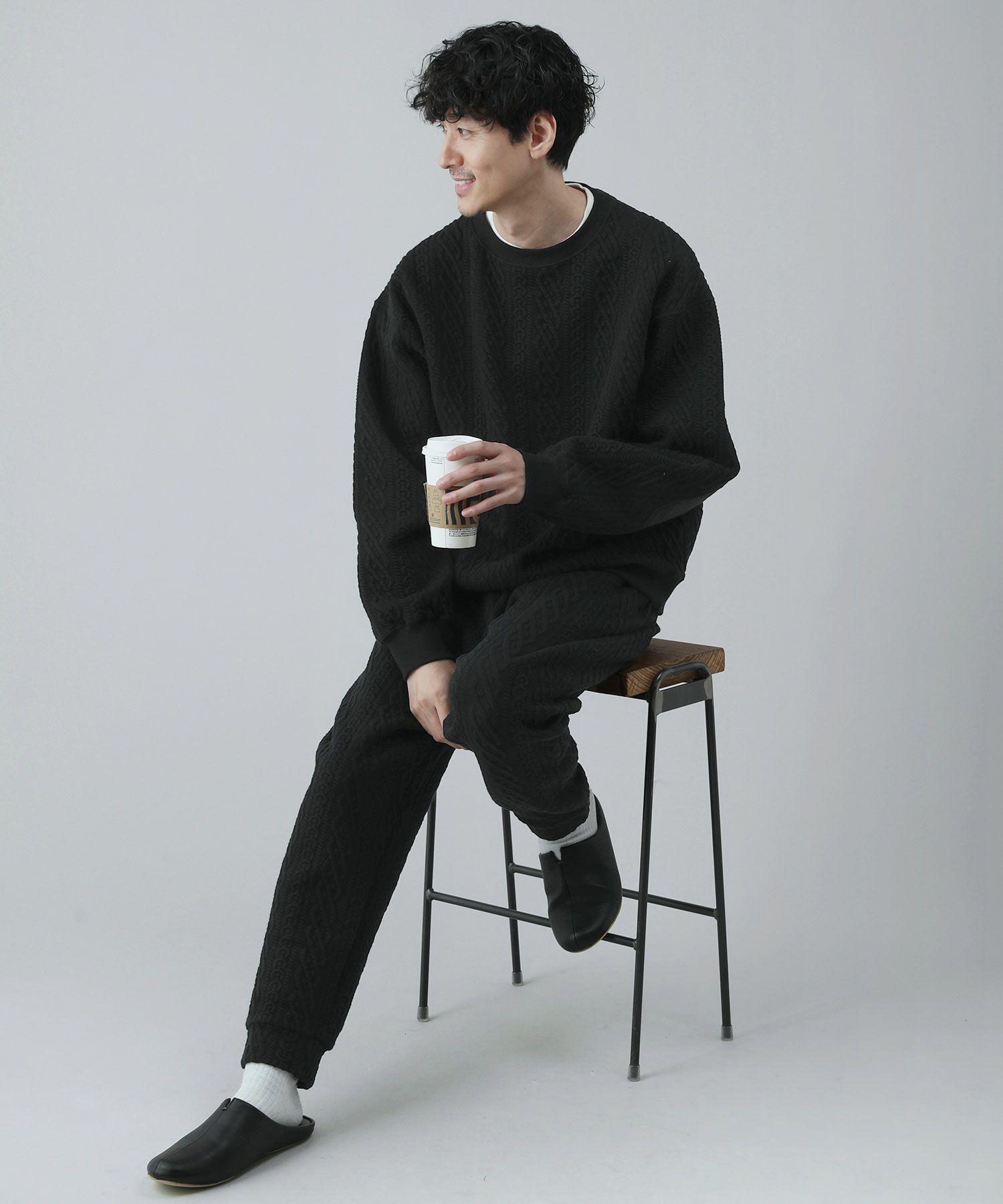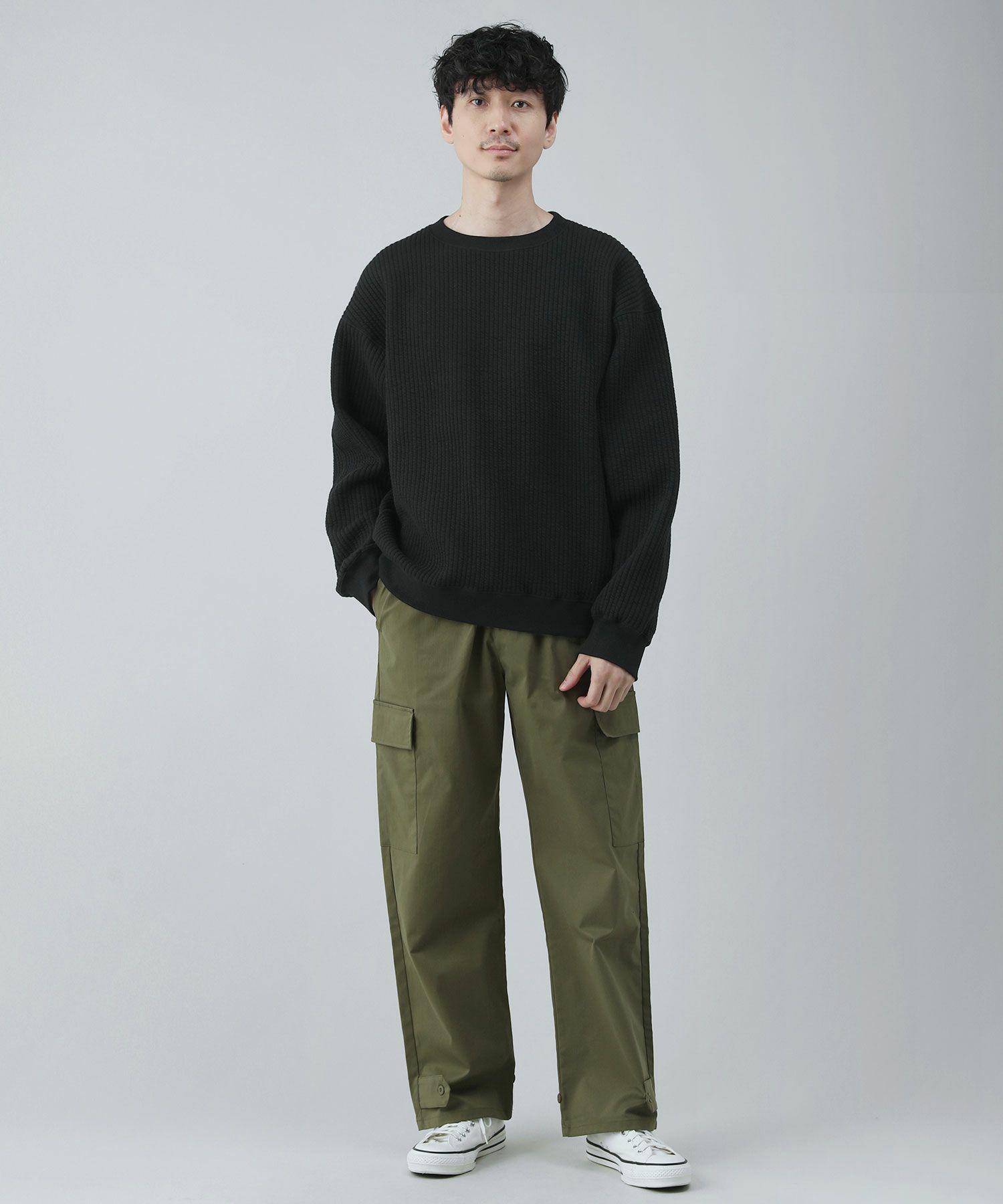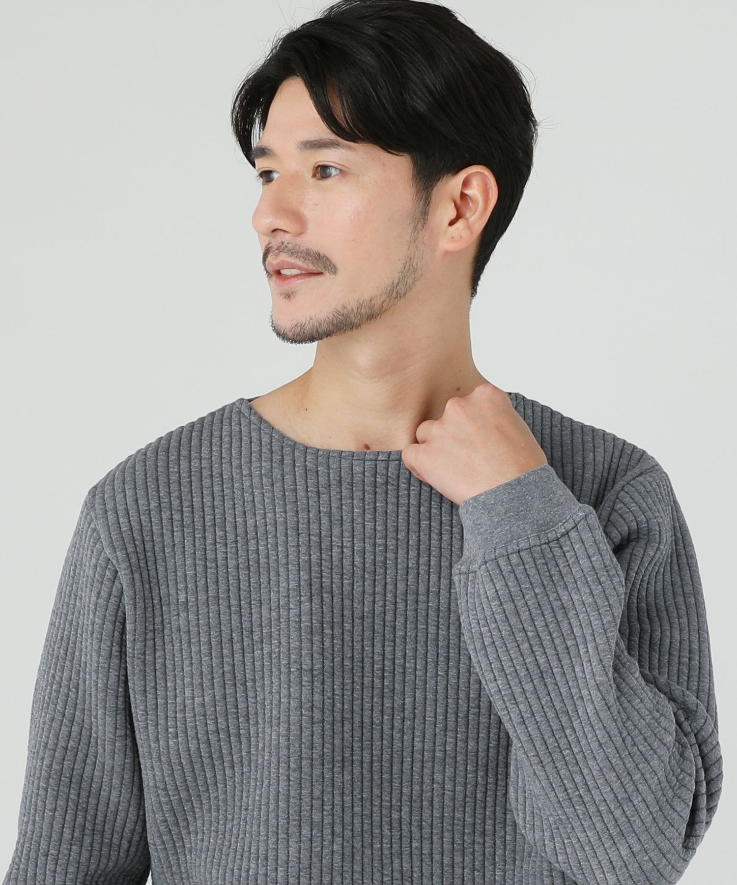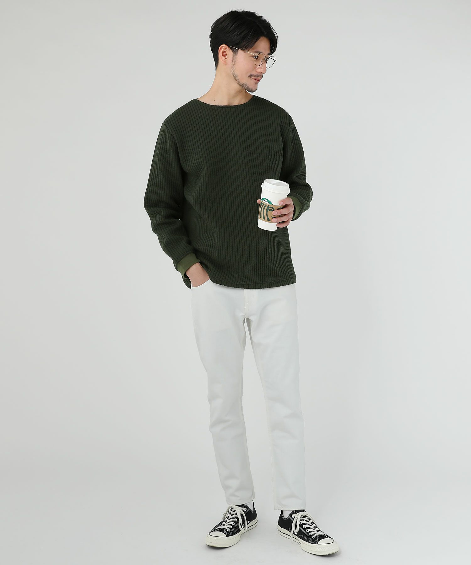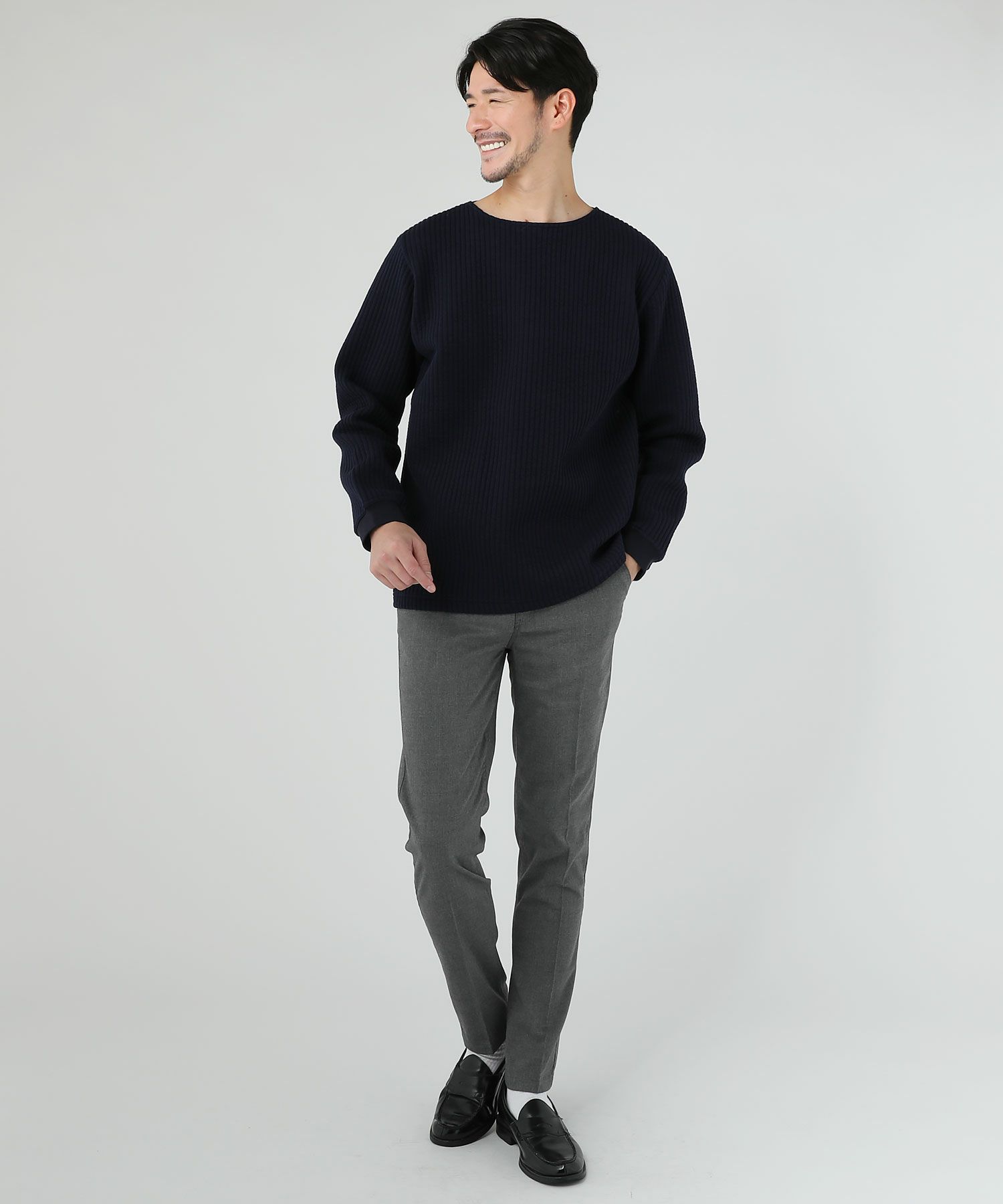 日本製尾州コットンキルトエルボーパッチクルーネック長袖スウェット 12,100円(税込) |