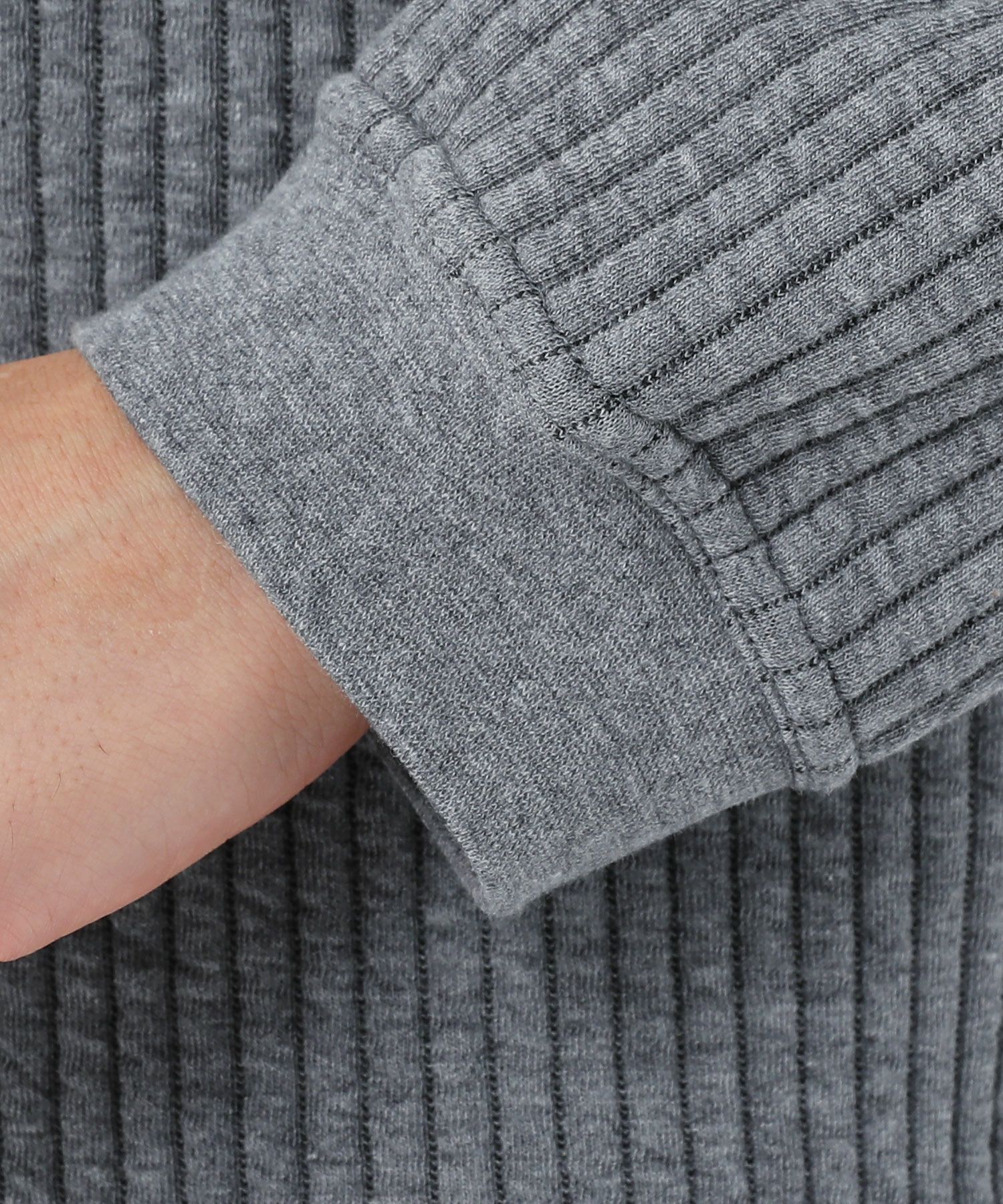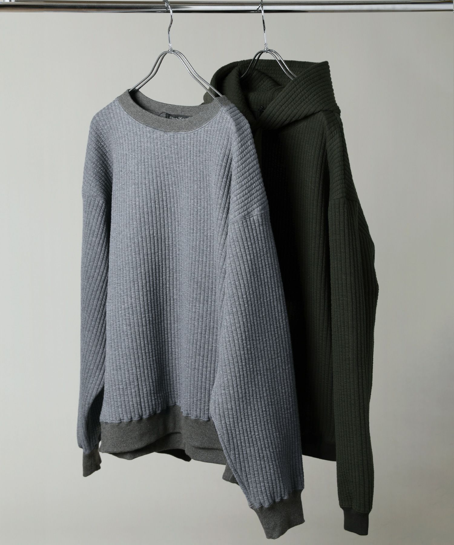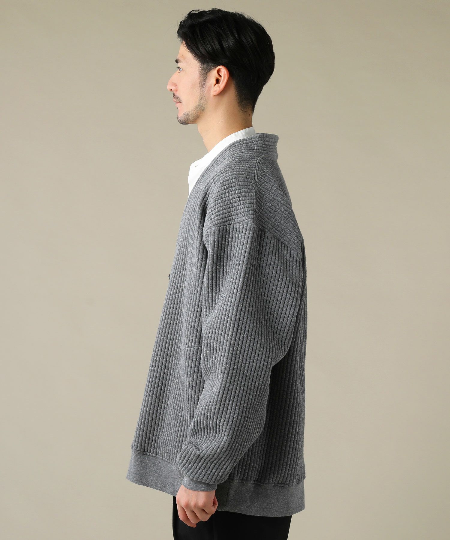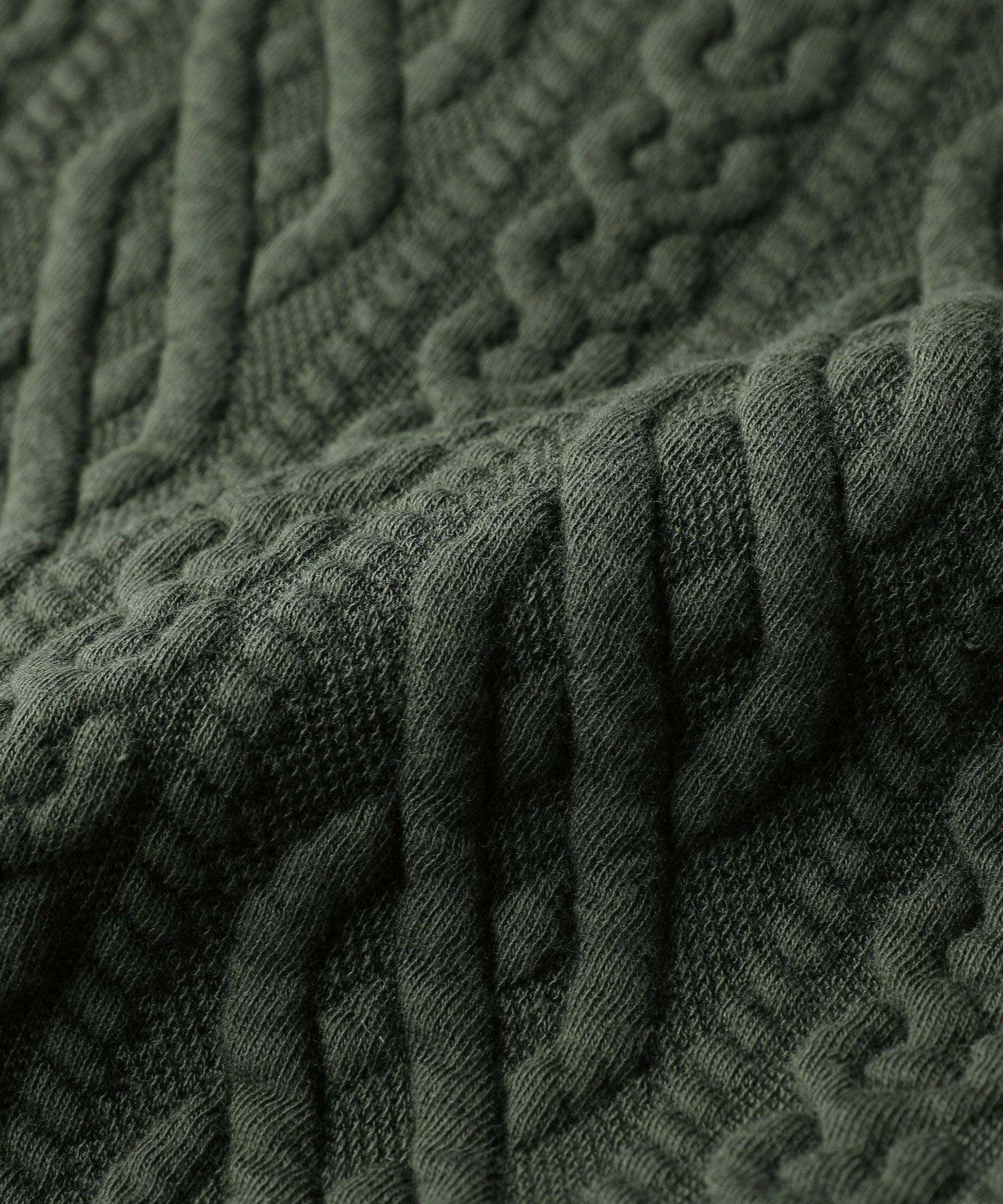 世界的に有名な生地産地である愛知県の『尾州産』のキルト生地です。2枚重ねにした生地の間に中綿を入れて作られた、寒い季節にぴったりの暖かい生地。ふっくらとしたソフトな弾力があり、着心地の良い生地になっています。立体的なストライプ柄のような表情のキルトと、ニットで編まれたような表情のケーブル模様のキルトの2種類展開です。