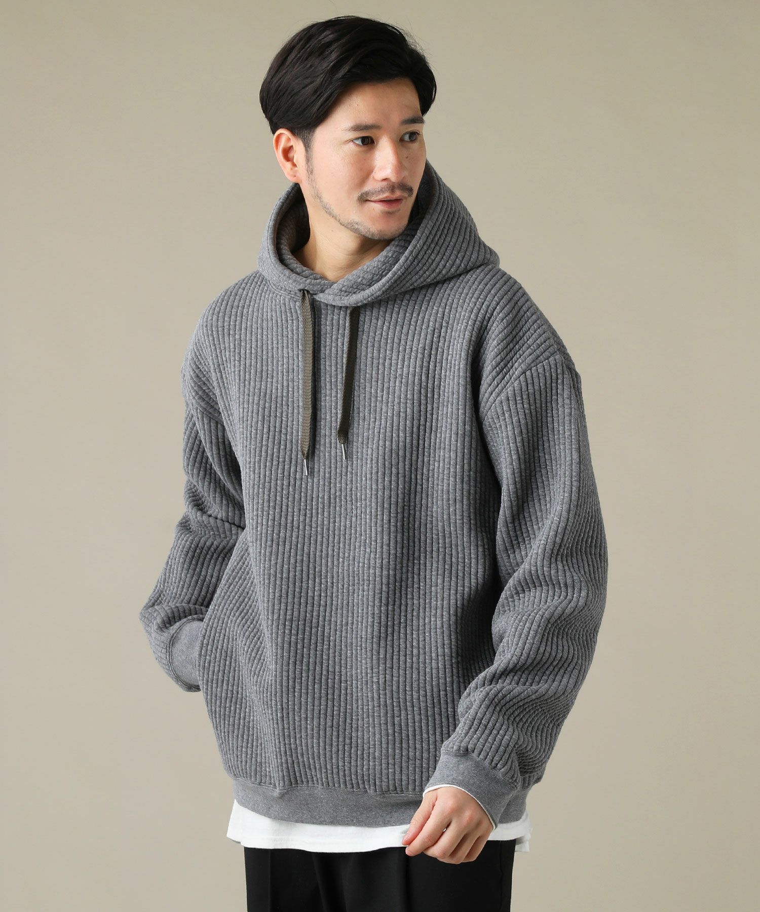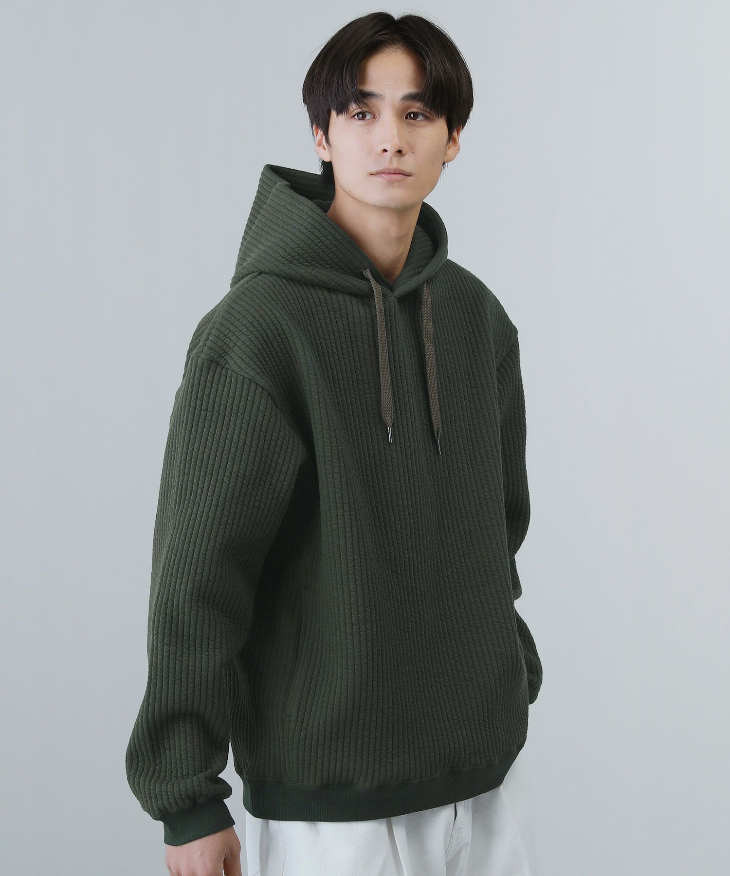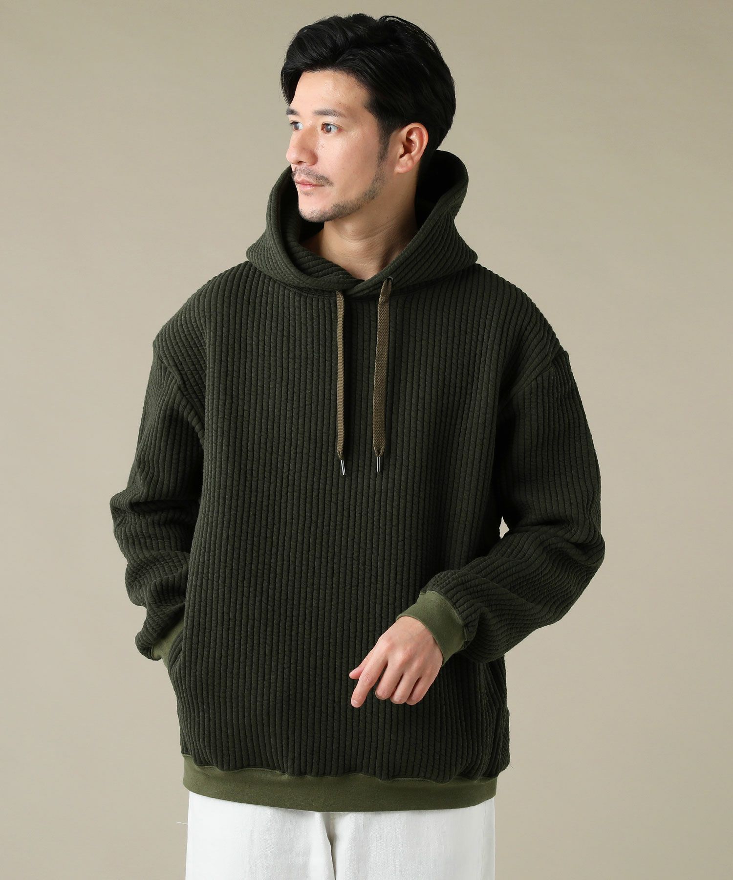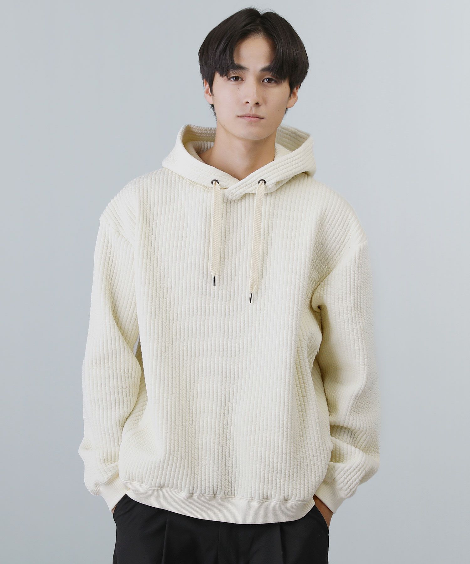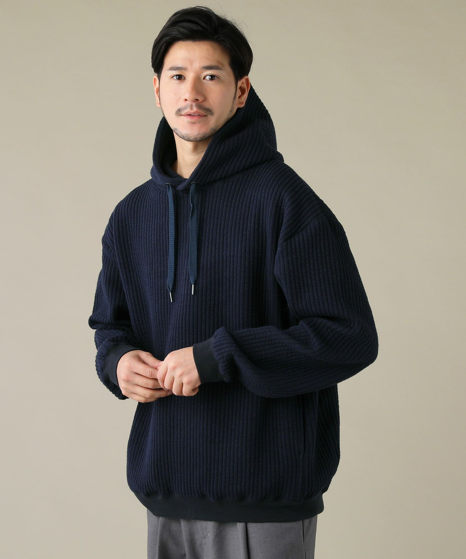 日本製尾州コットンキルト長袖プルオーバーパーカー 14,300円(税込) |