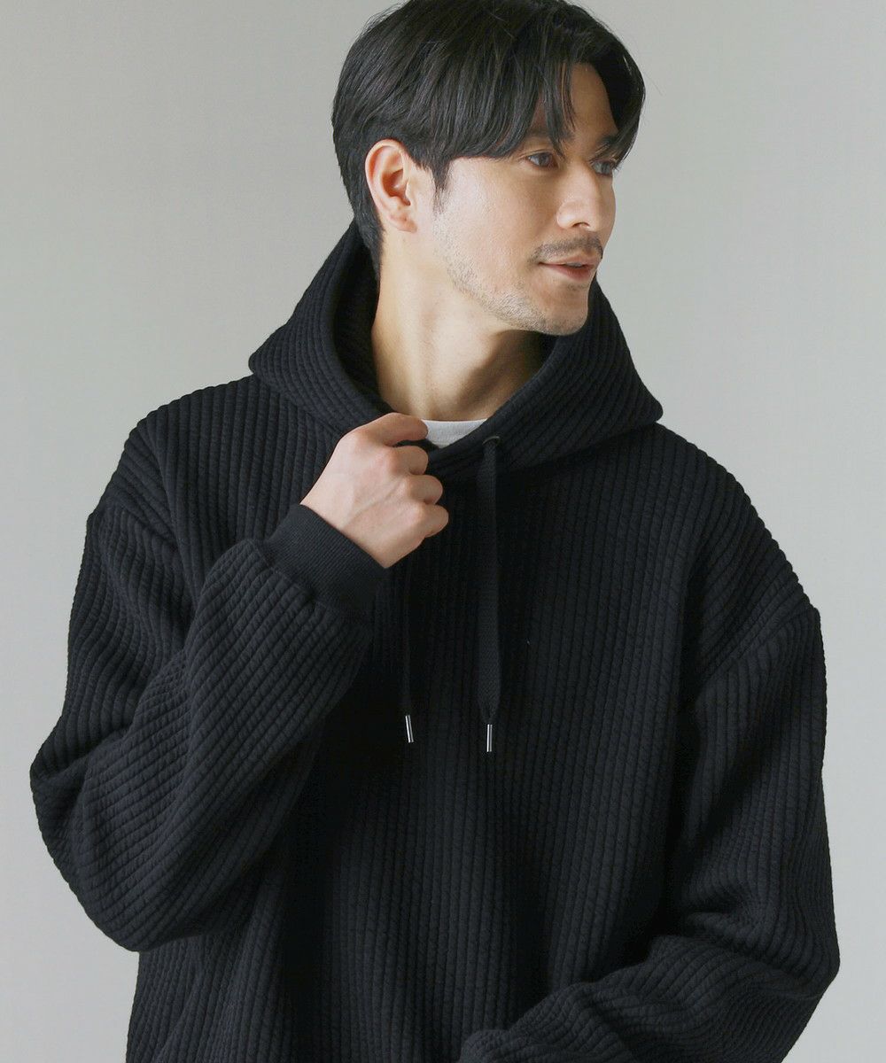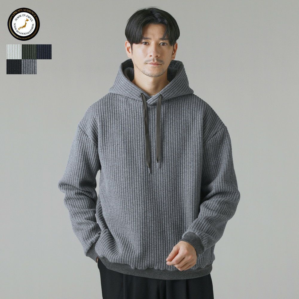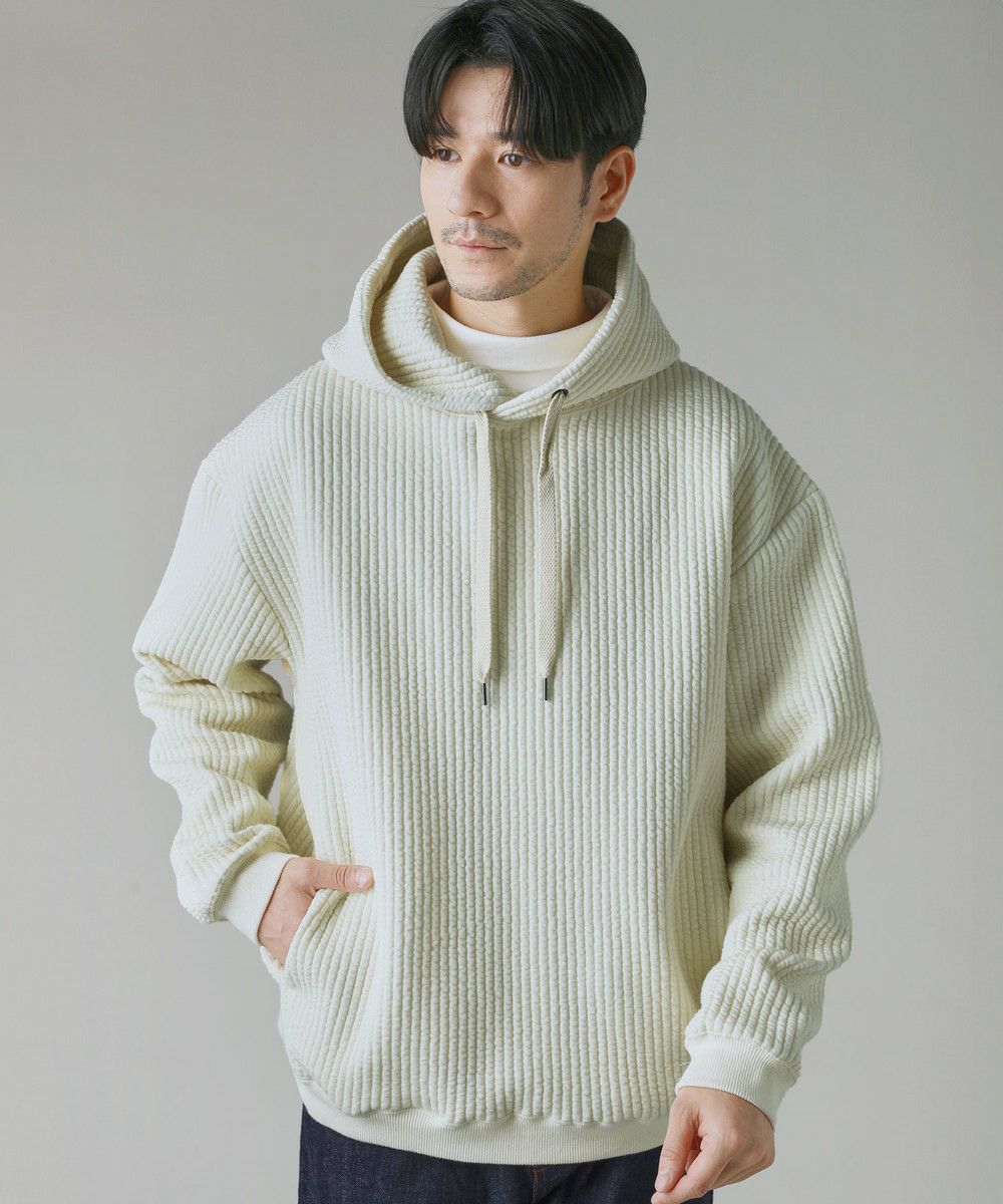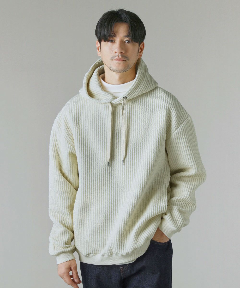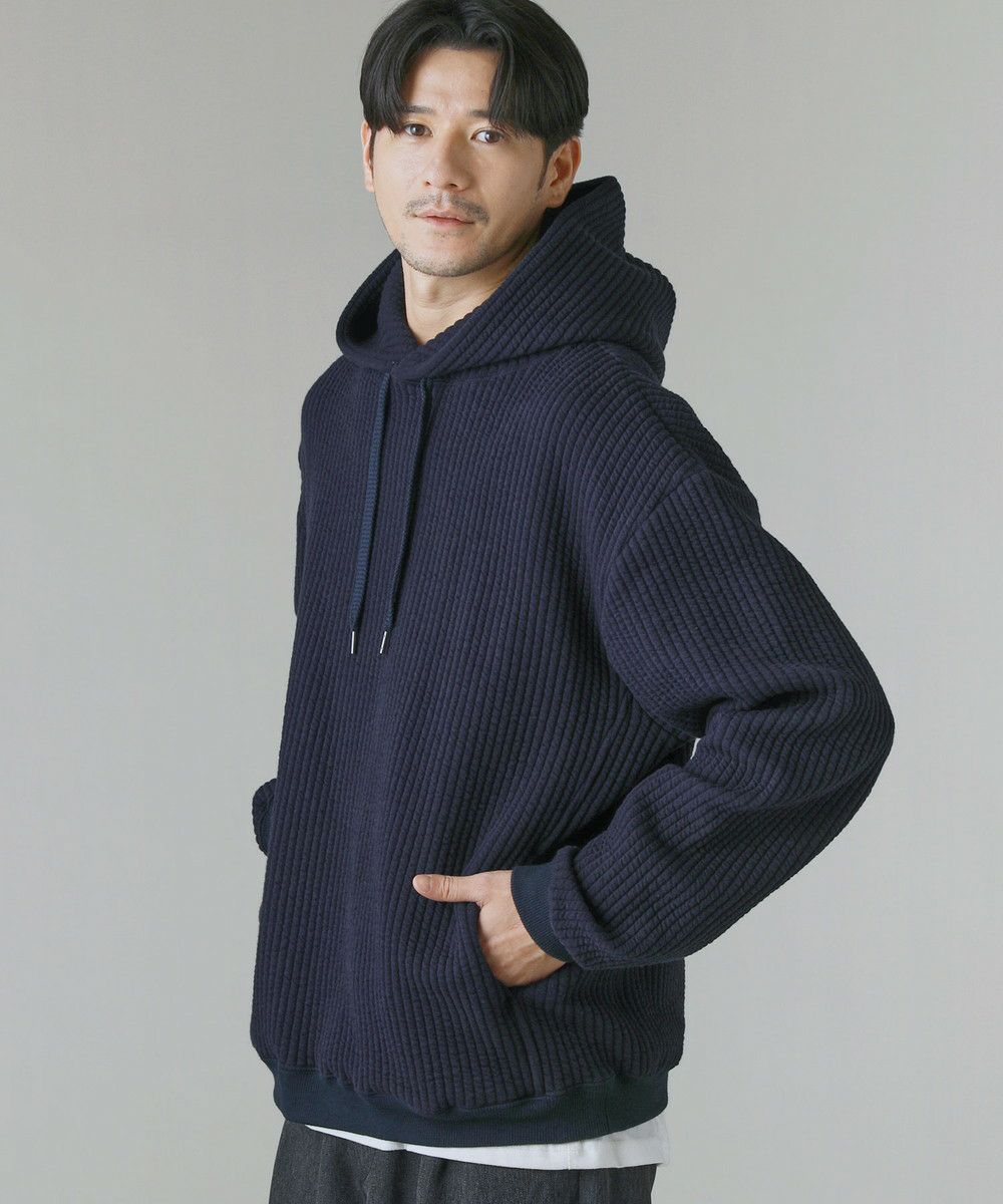 世界的にも有名な生地産地である愛知県、「尾州産」のキルト生地を使用したプルオーバーパーカー。